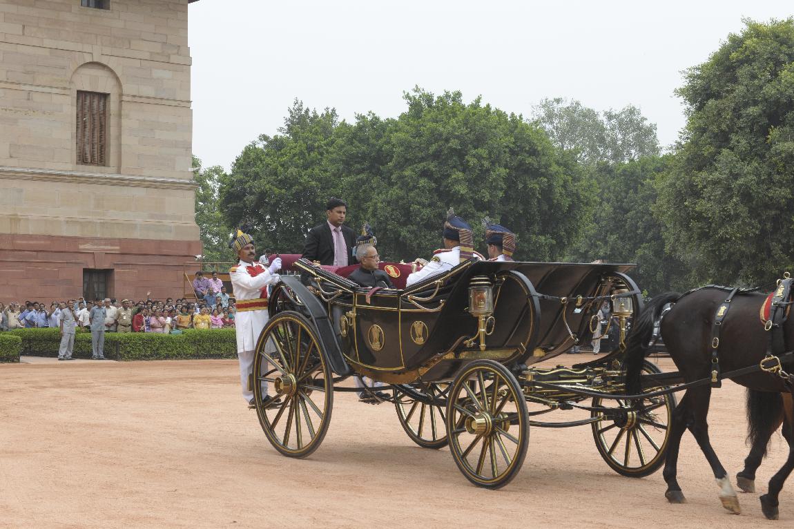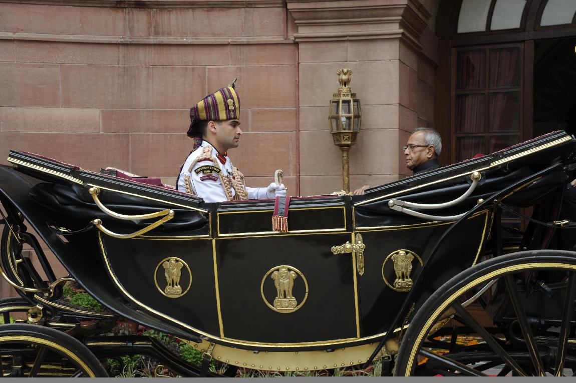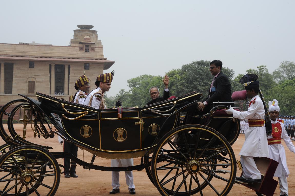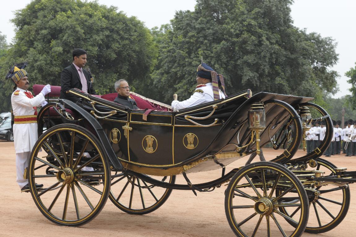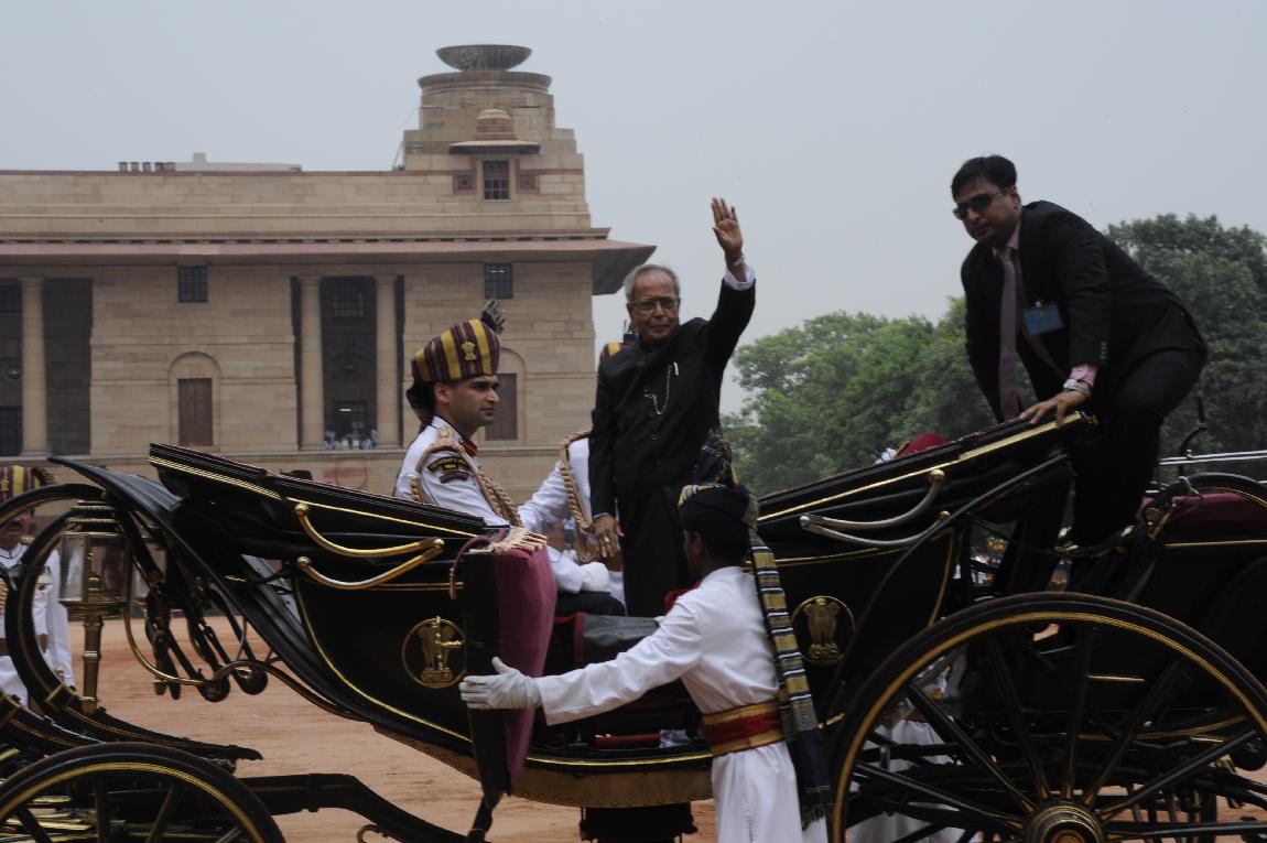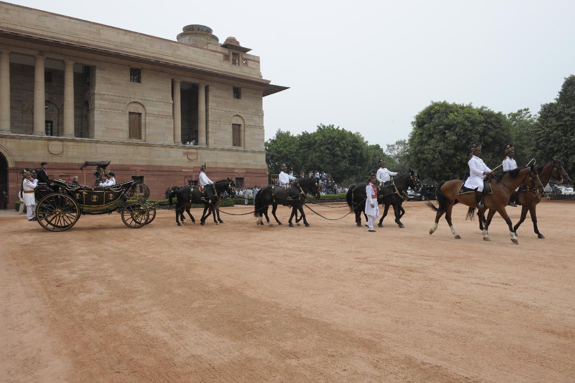 | Caption: | The President of India, Shri Pranab Mukherjee leaving North Court in State Coach for Fore Court on July 25, 2012 |