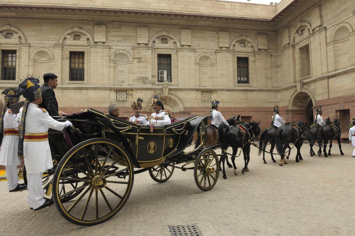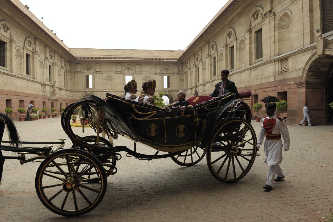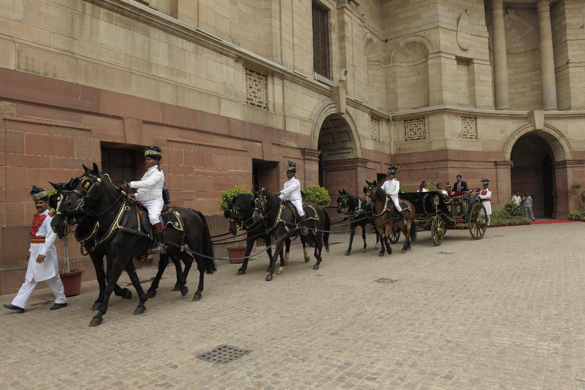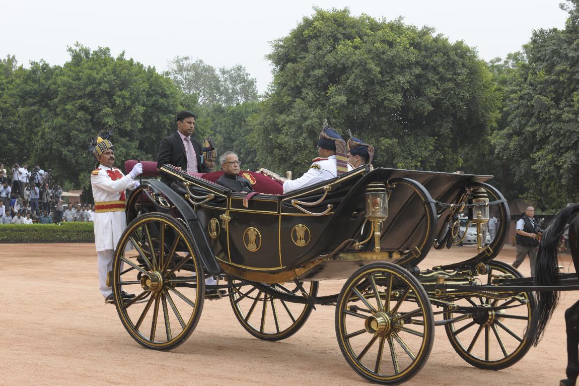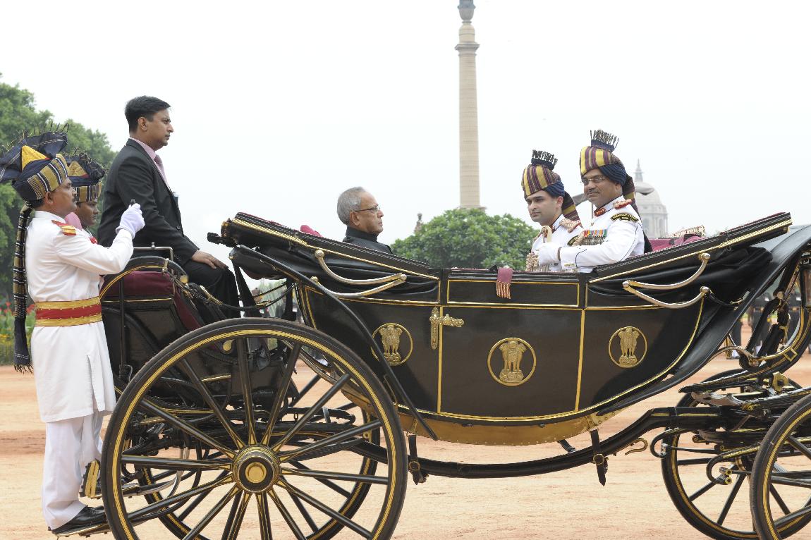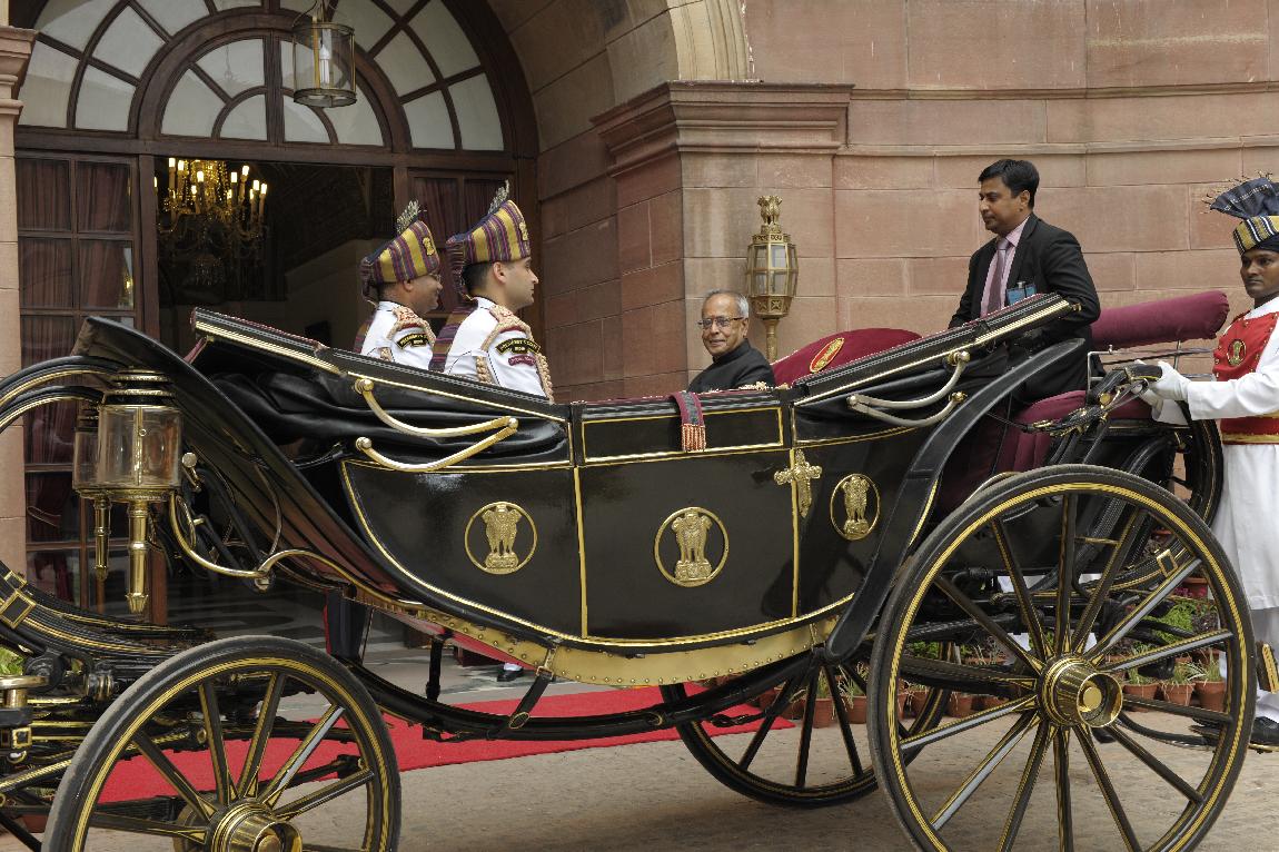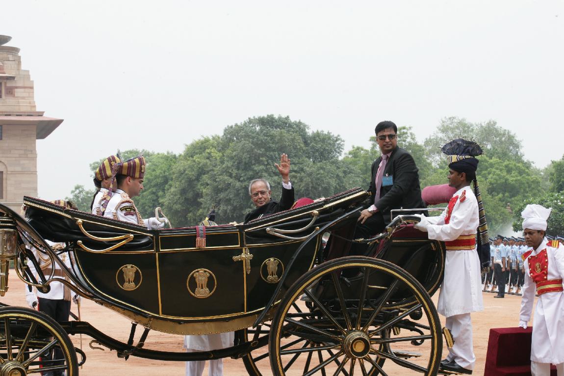 | Caption: | The President of India, Shri Pranab Mukherjee leaving North Court in State Coach for Fore Court on July 25, 2012 |