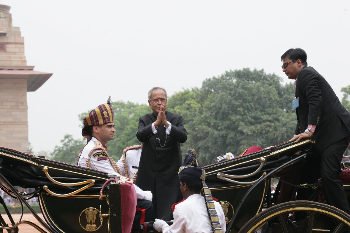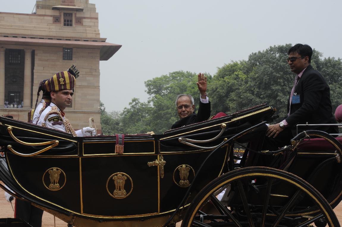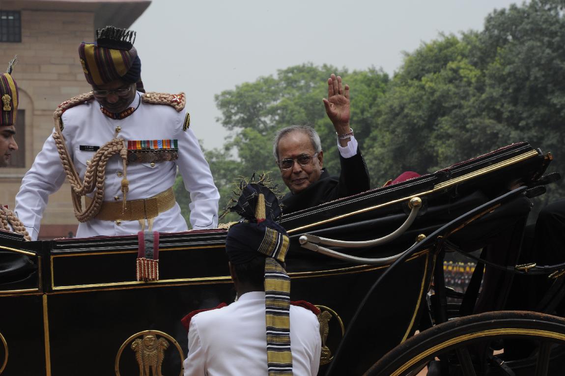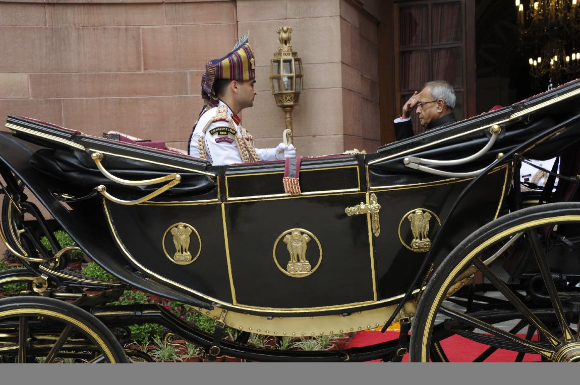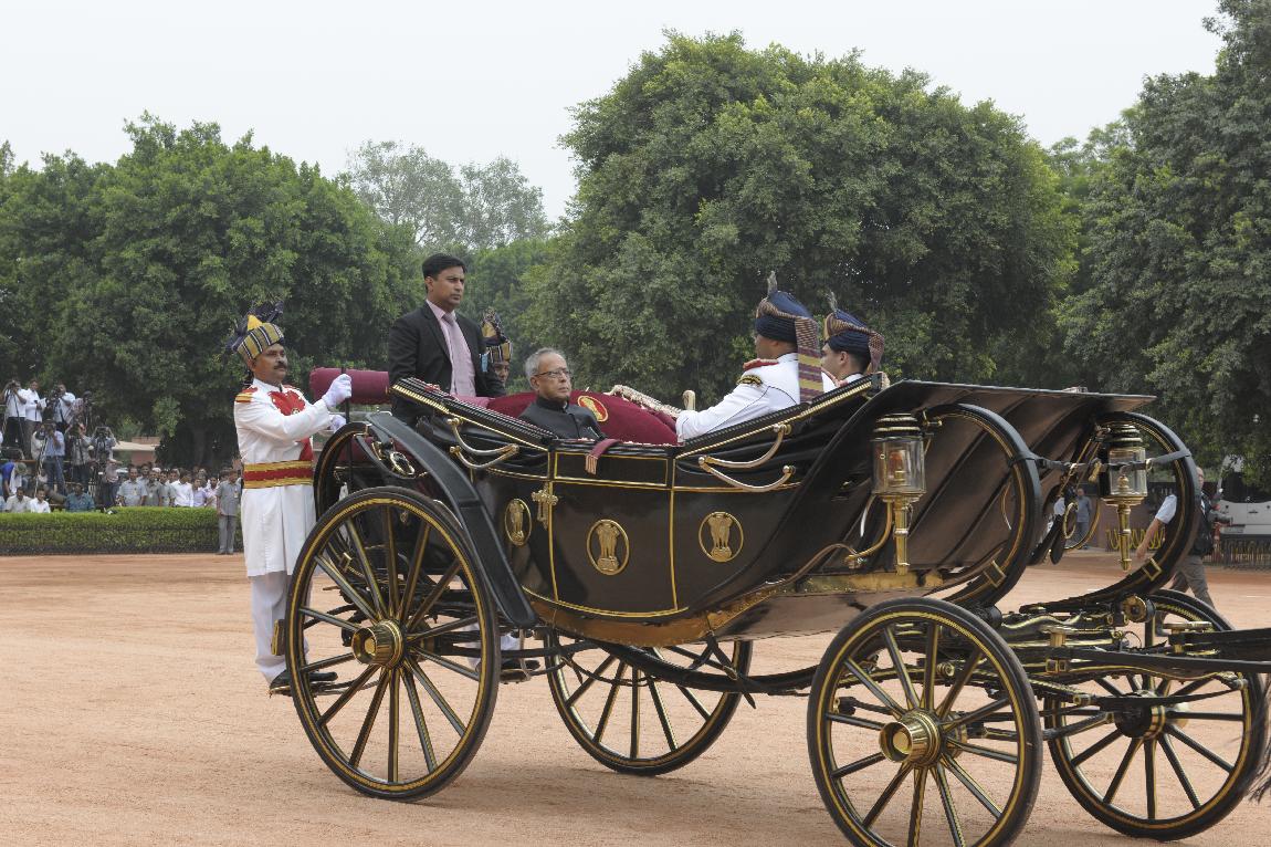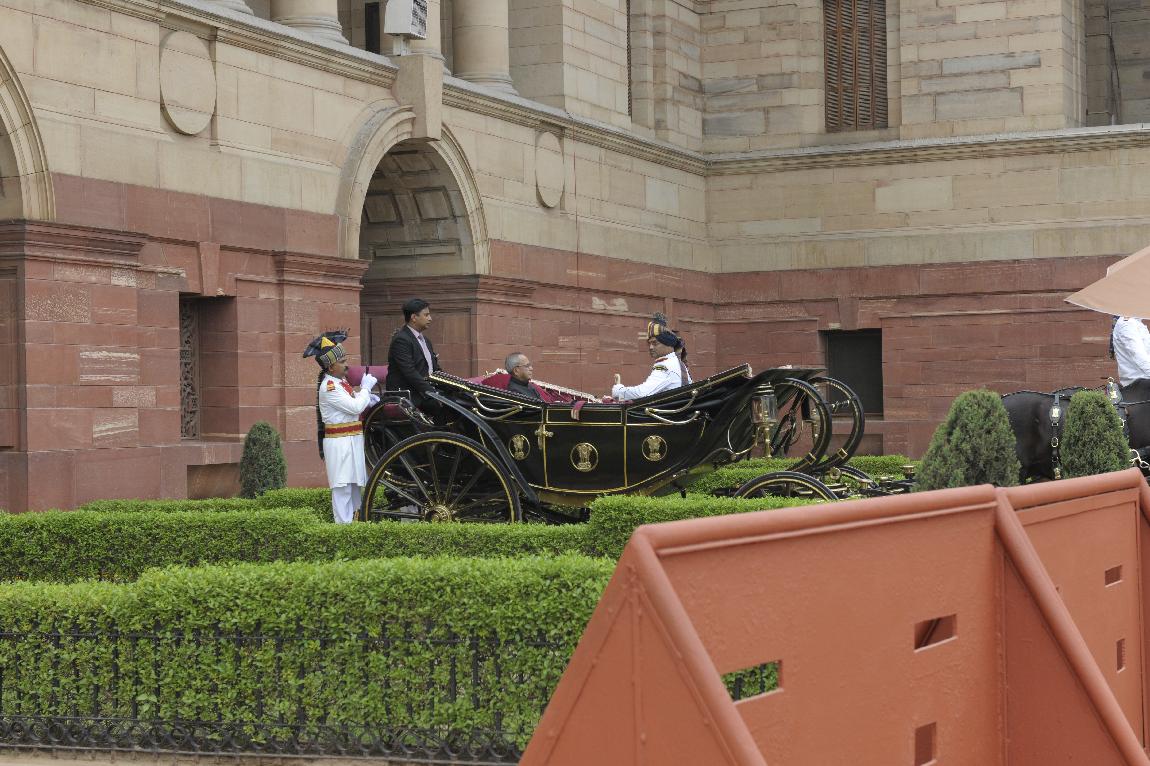 | Caption: | The President of India, Shri Pranab Mukherjee leaving North Court in State Coach for Fore Court on July 25, 2012 |