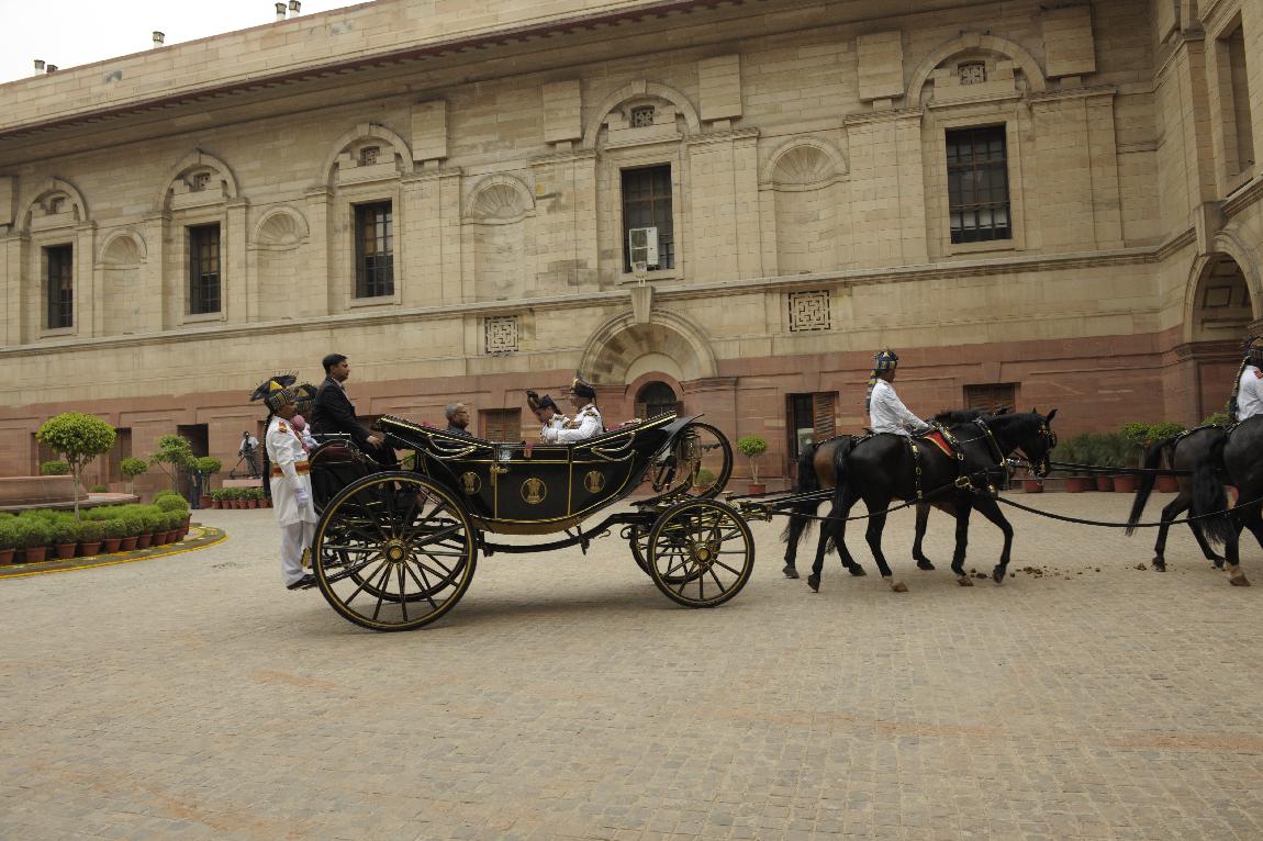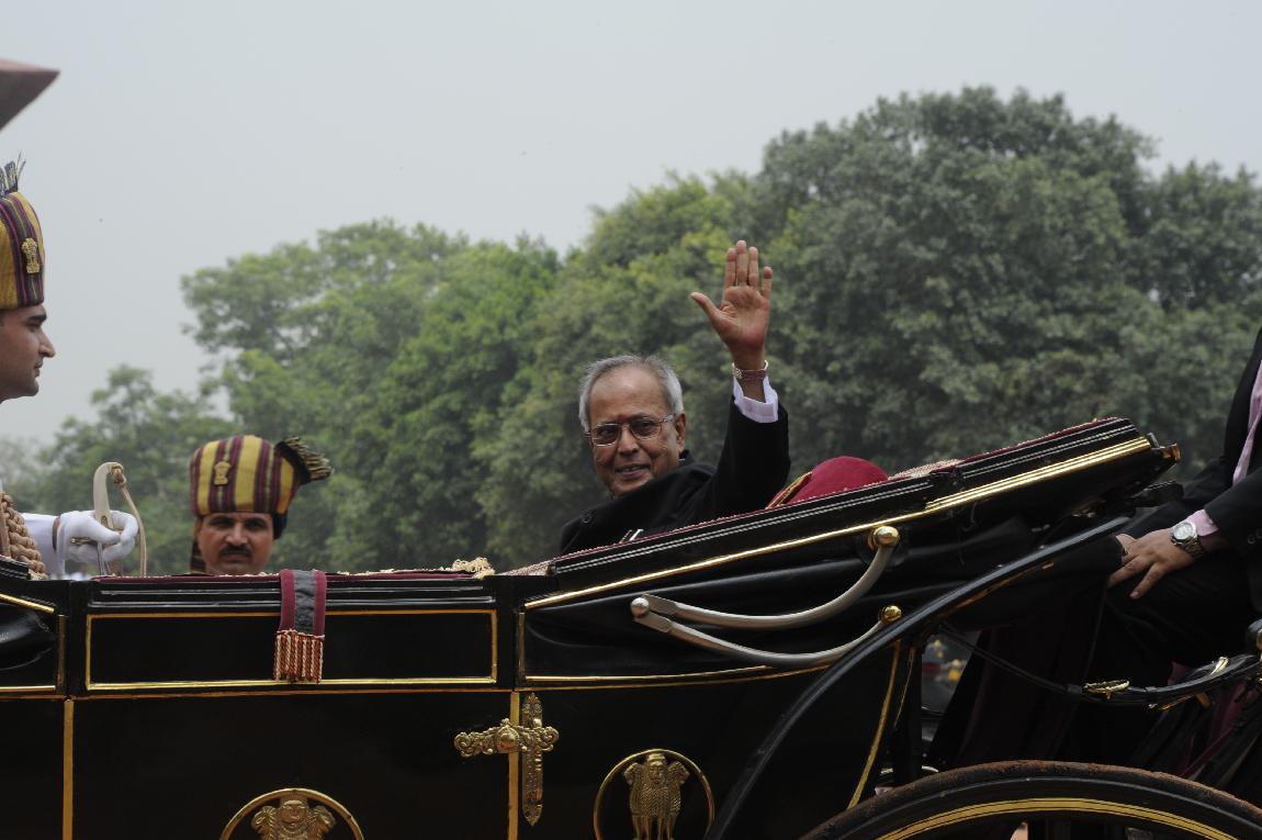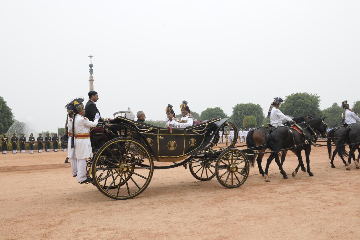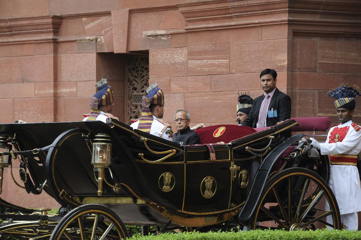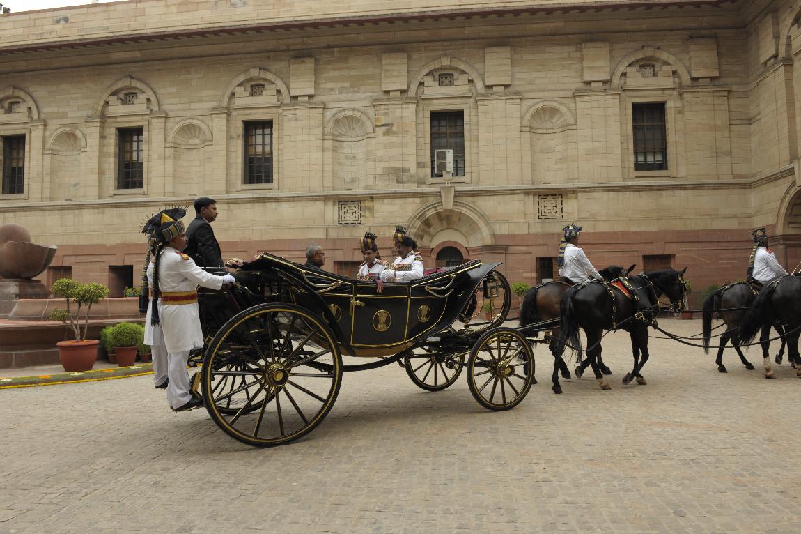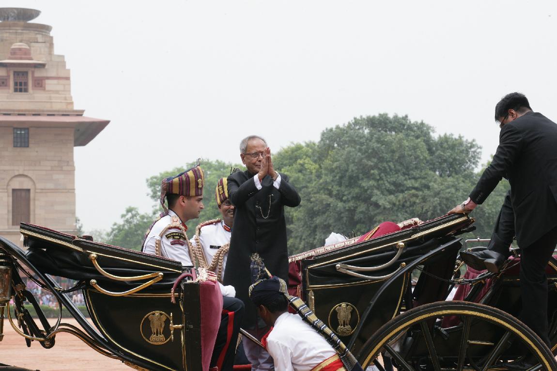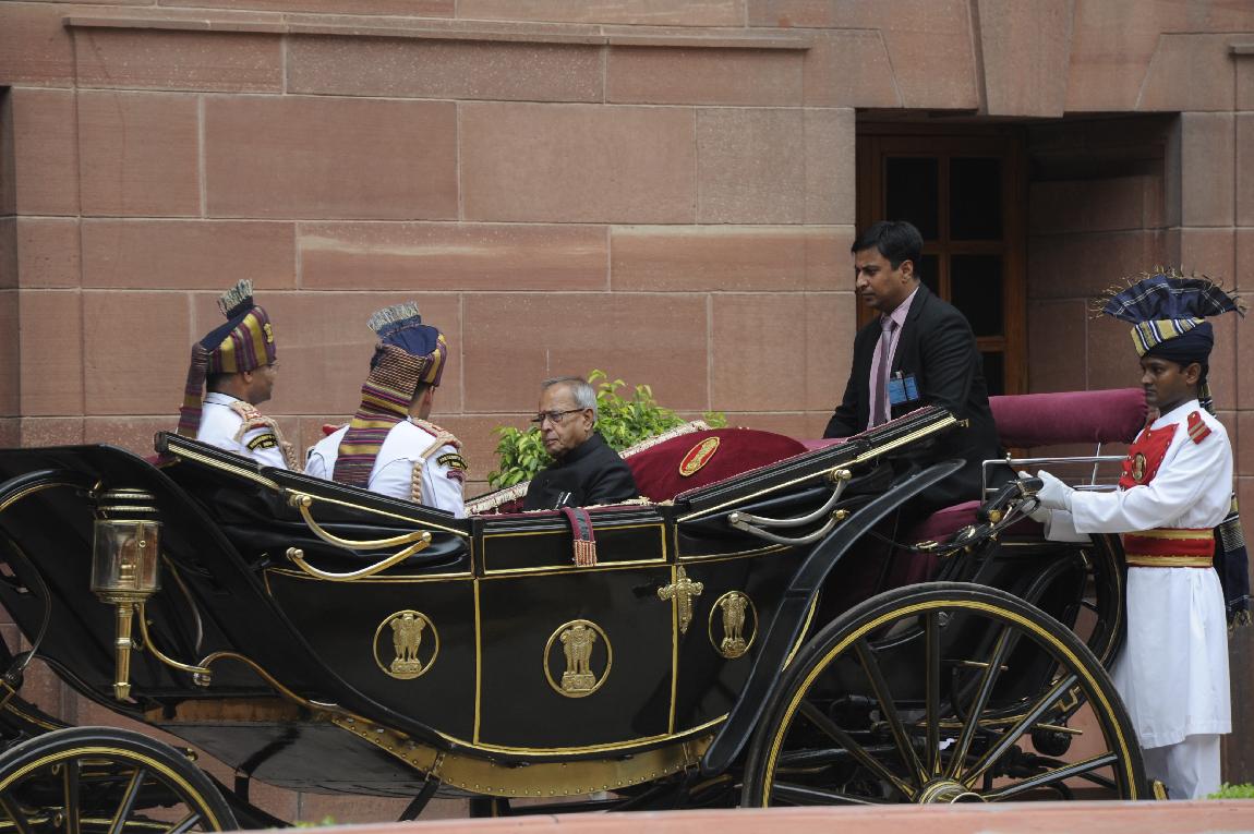 | Caption: | The President of India, Shri Pranab Mukherjee leaving North Court in State Coach for Fore Court on July 25, 2012 |