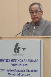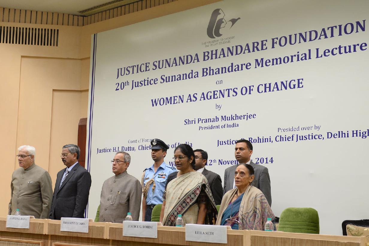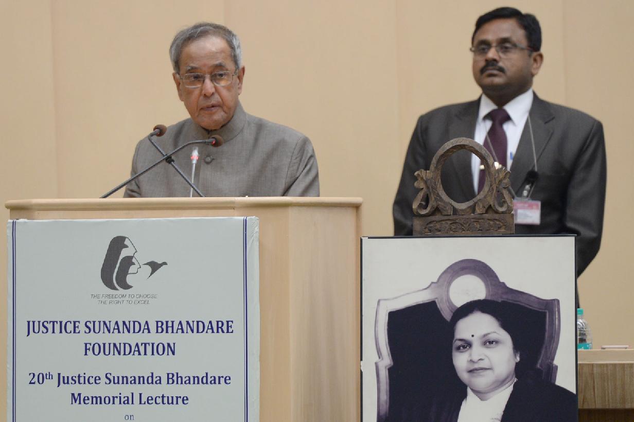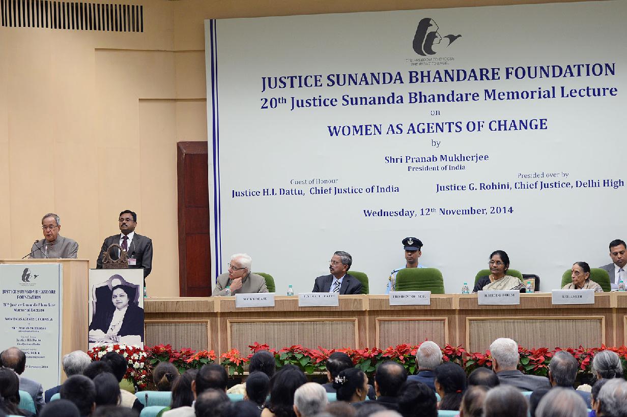 | Caption: | The President of India, Shri Pranab Mukherjee during the Twentieth Justice Sunanda Bhandare Memorial Lecture at Vigyan Bhavan in New Delhi on Nov 12, 2014 |