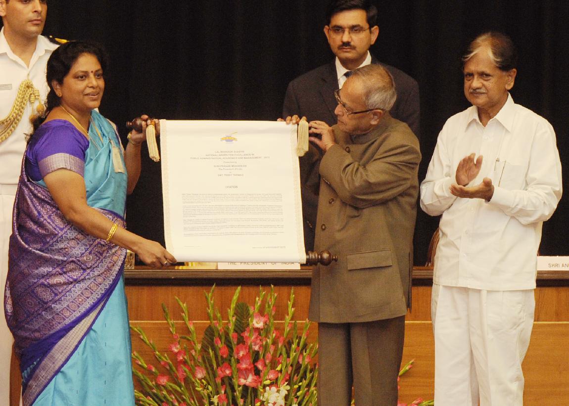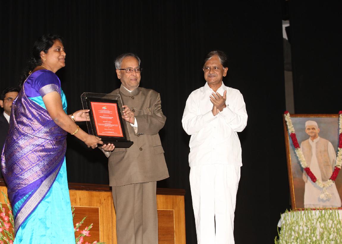 | Caption: | The President of India, Shri Pranab Mukherjee Presenting the Lal Bahadur Shastri National Award for Excellence in Public Administration, Academics and Management at Rashtrapati Bhavan in Delhi on Oct 01, 2012 |