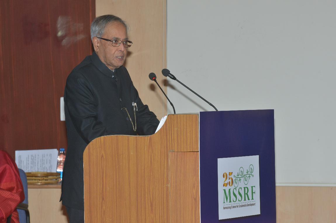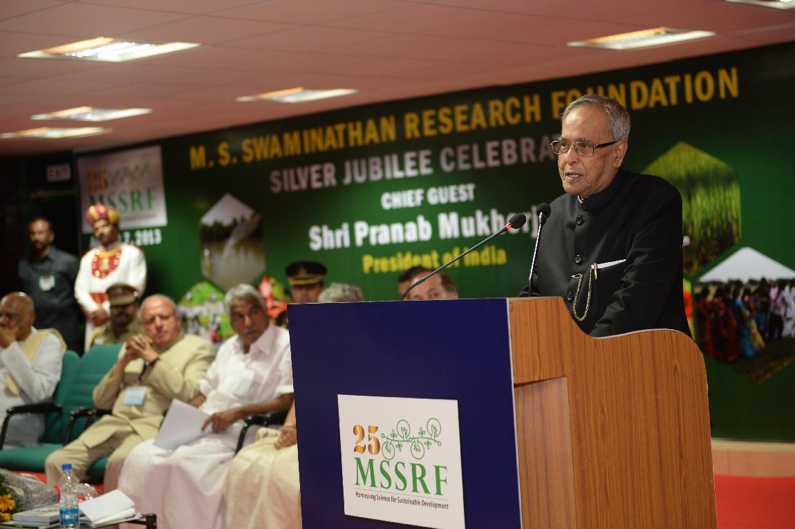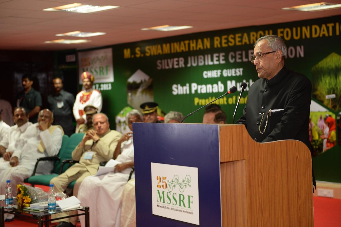 | Caption: | The President of India, Shri Pranab Mukherjee Attending the Silver Jubilee Celebrations of M S Swaminathan Research Foundation at Chennai on Aug 07, 2013 |