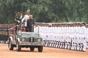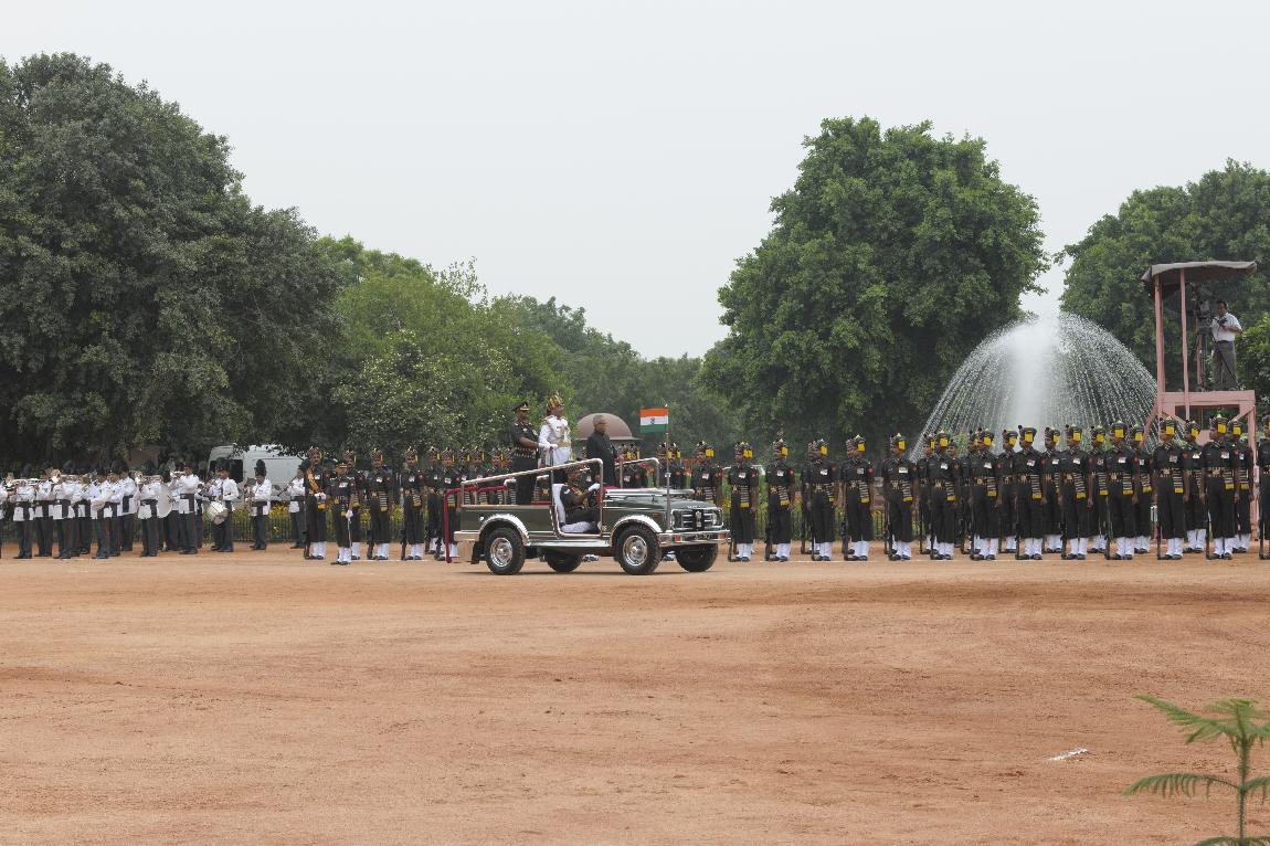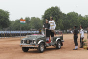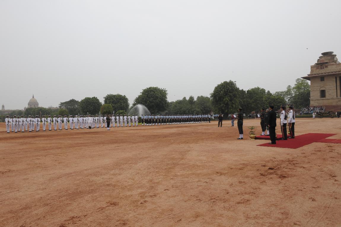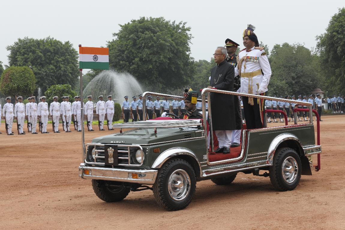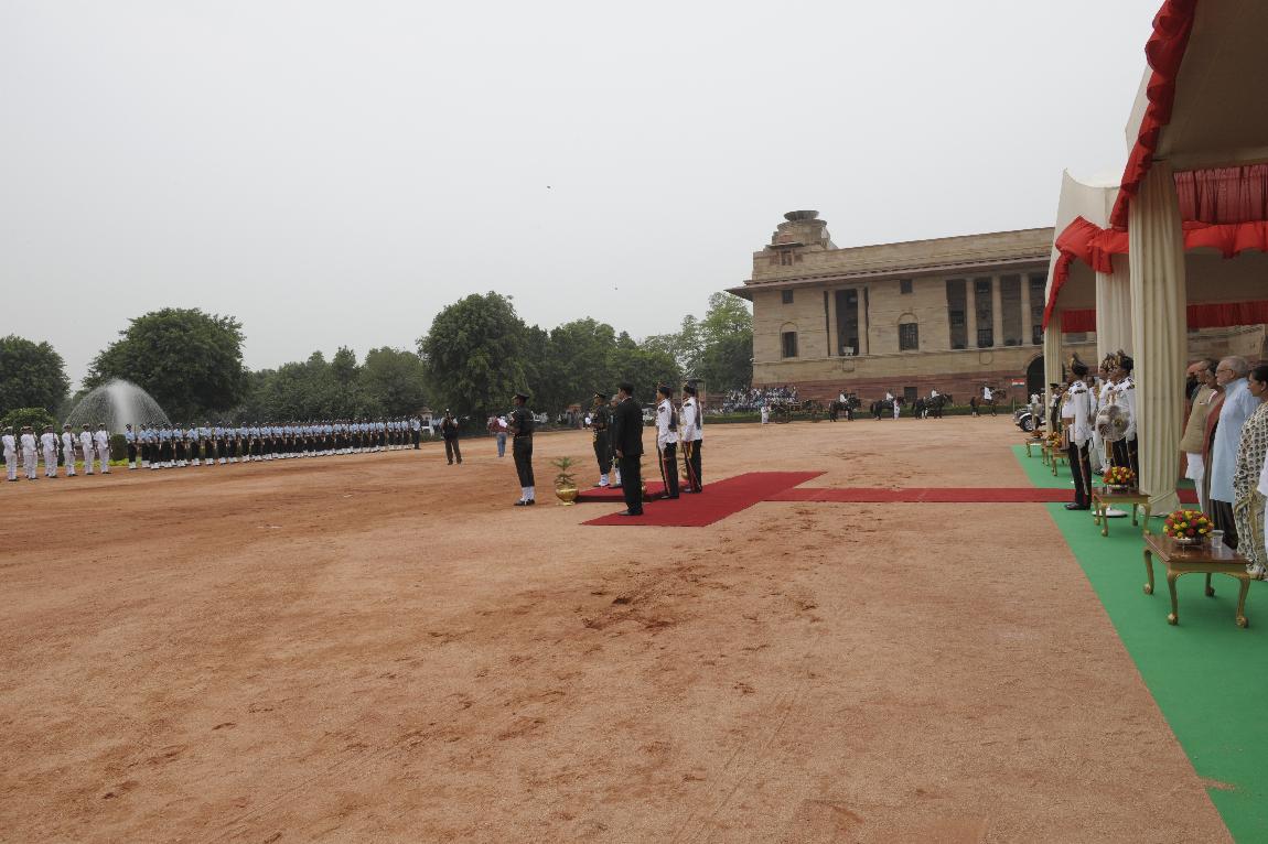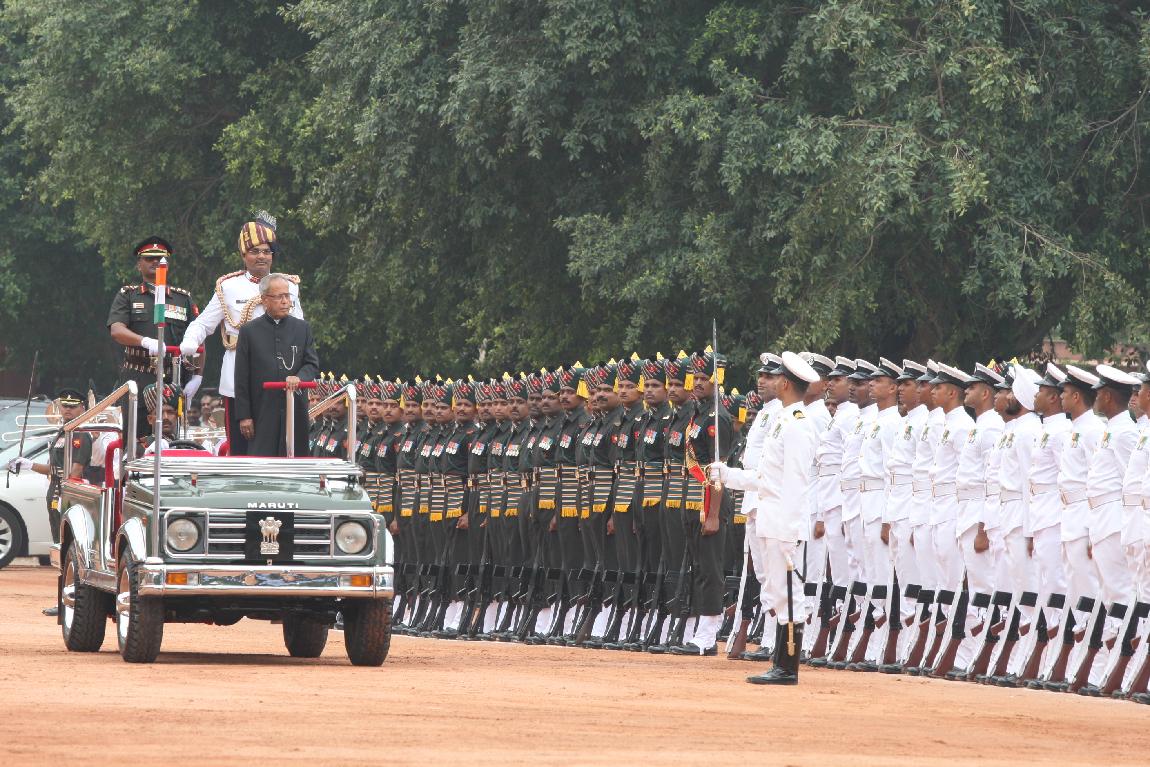 | Caption: | The President of India, Shri Pranab Mukherjee inspecting the Guard of Honour at Fore Court on July 25, 2012 |