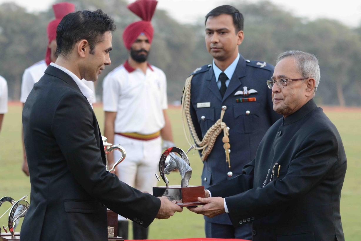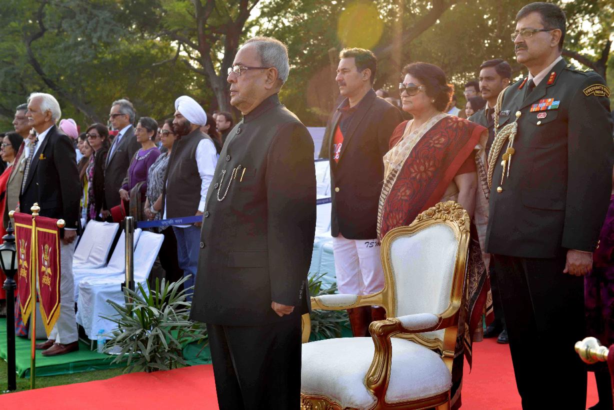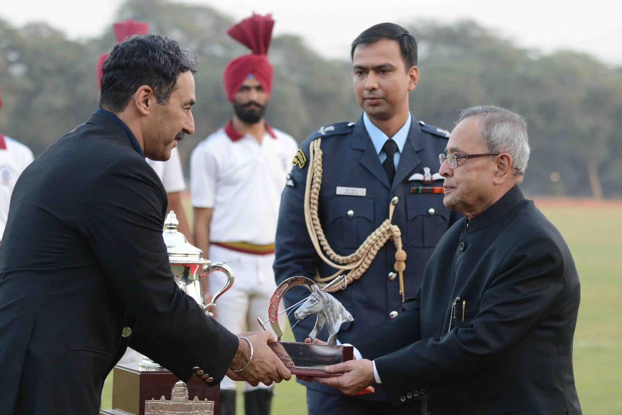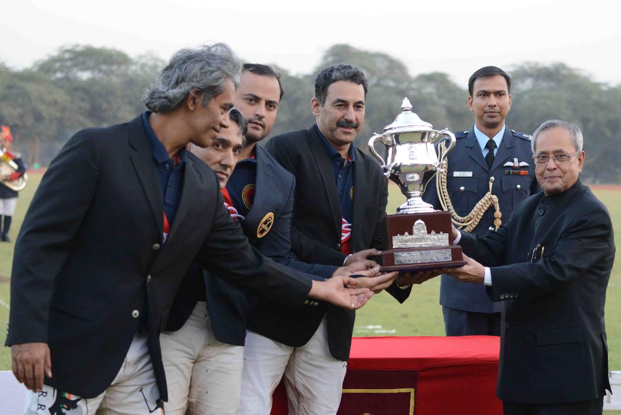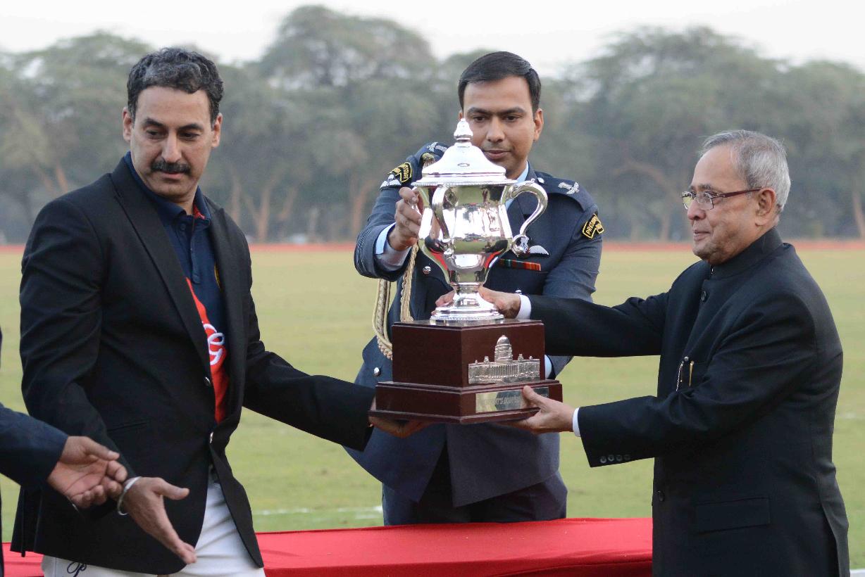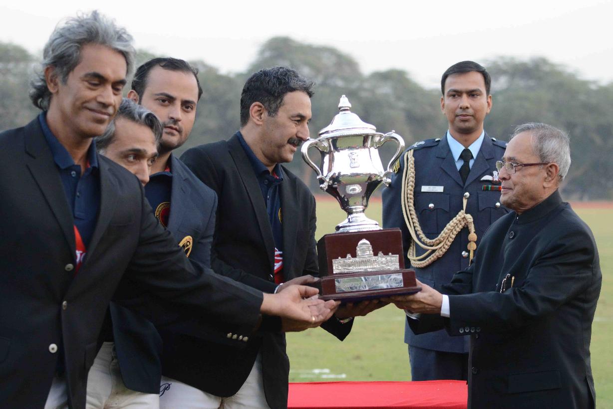 | Caption: | The President of India, Shri Pranab Mukherjee witnessing the President s Polo Cup Exhibition Match at PBG Parade Ground in New Delhi on Dec 06, 2014 |