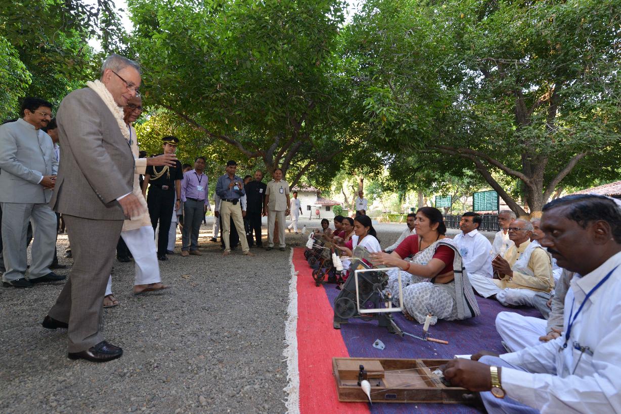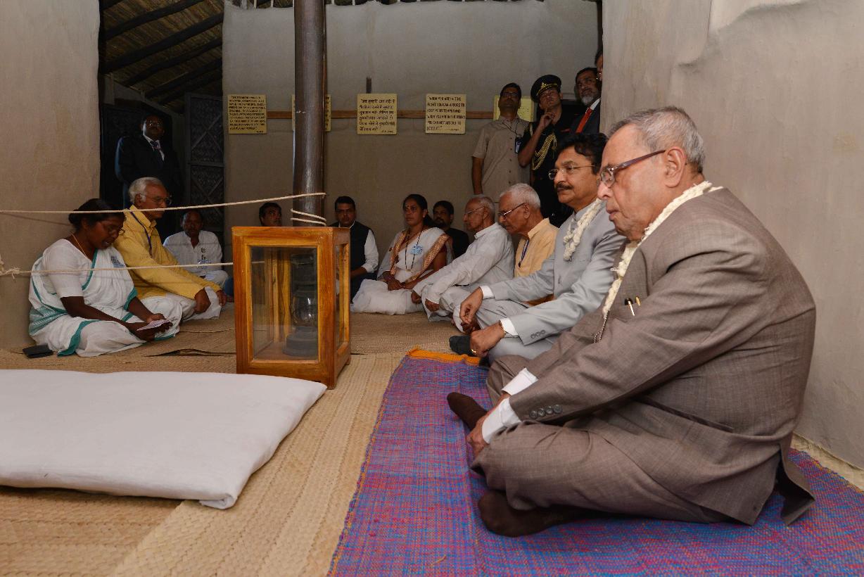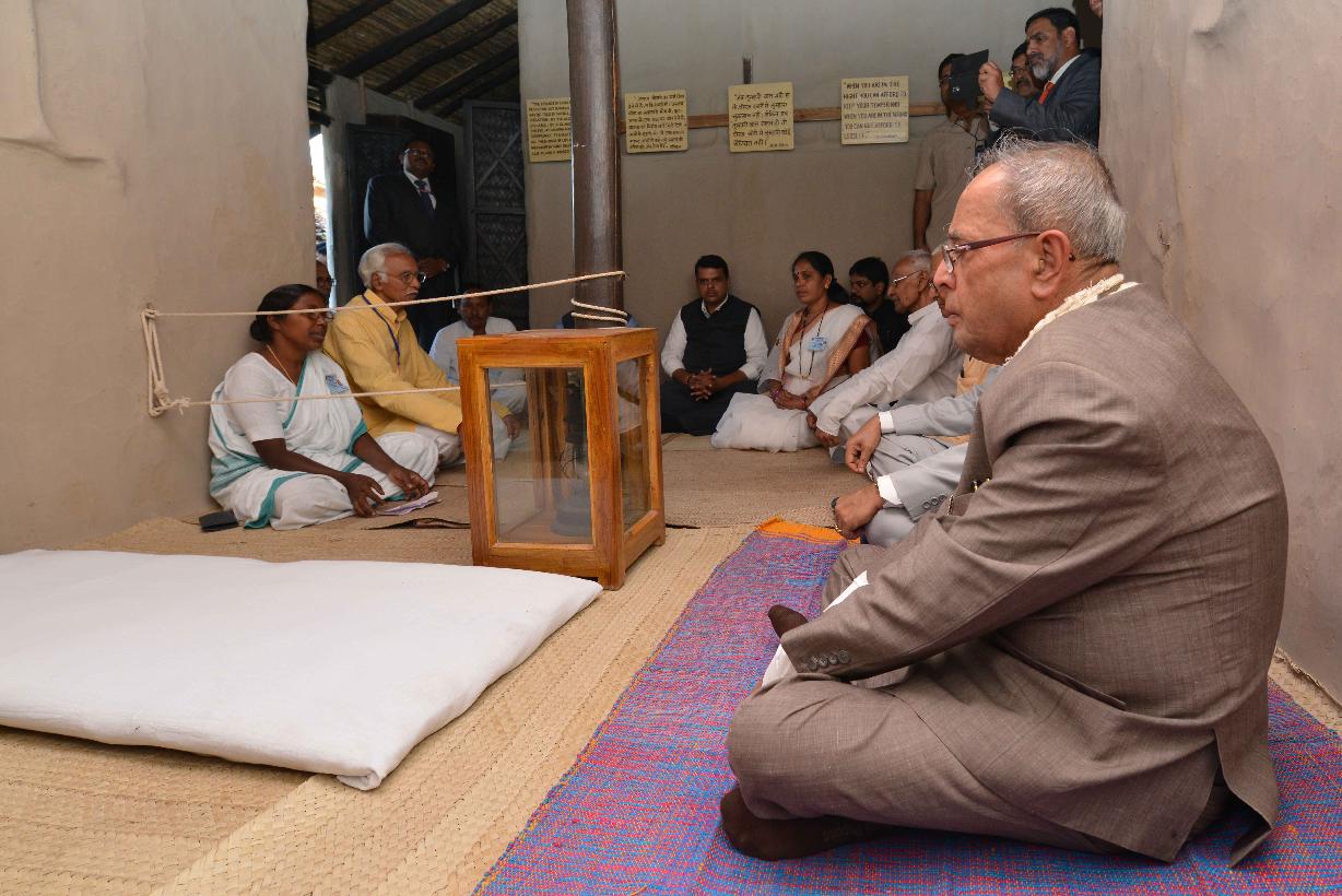 | Caption: | The President of India, Shri Pranab Mukherjee visiting the Sewagram Ashram at Wardha in Maharashtra on Nov 26, 2014 |
