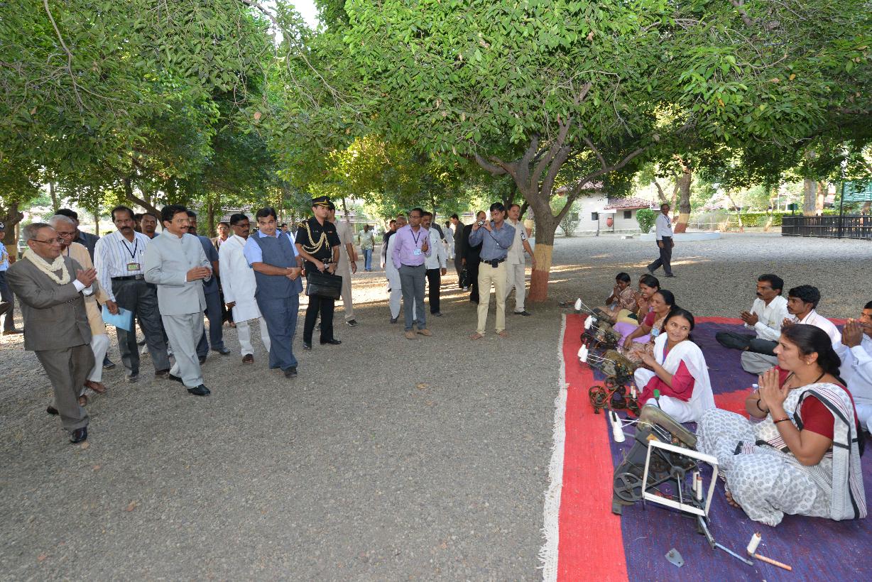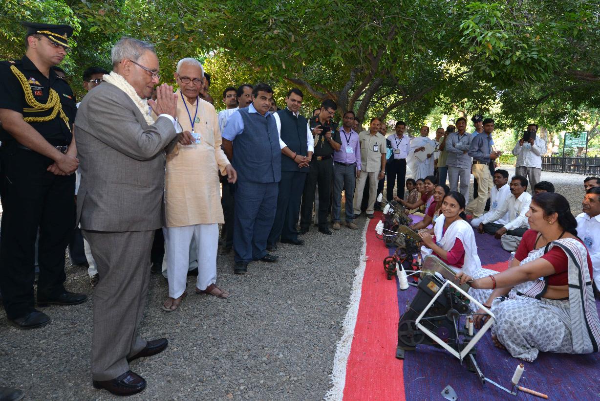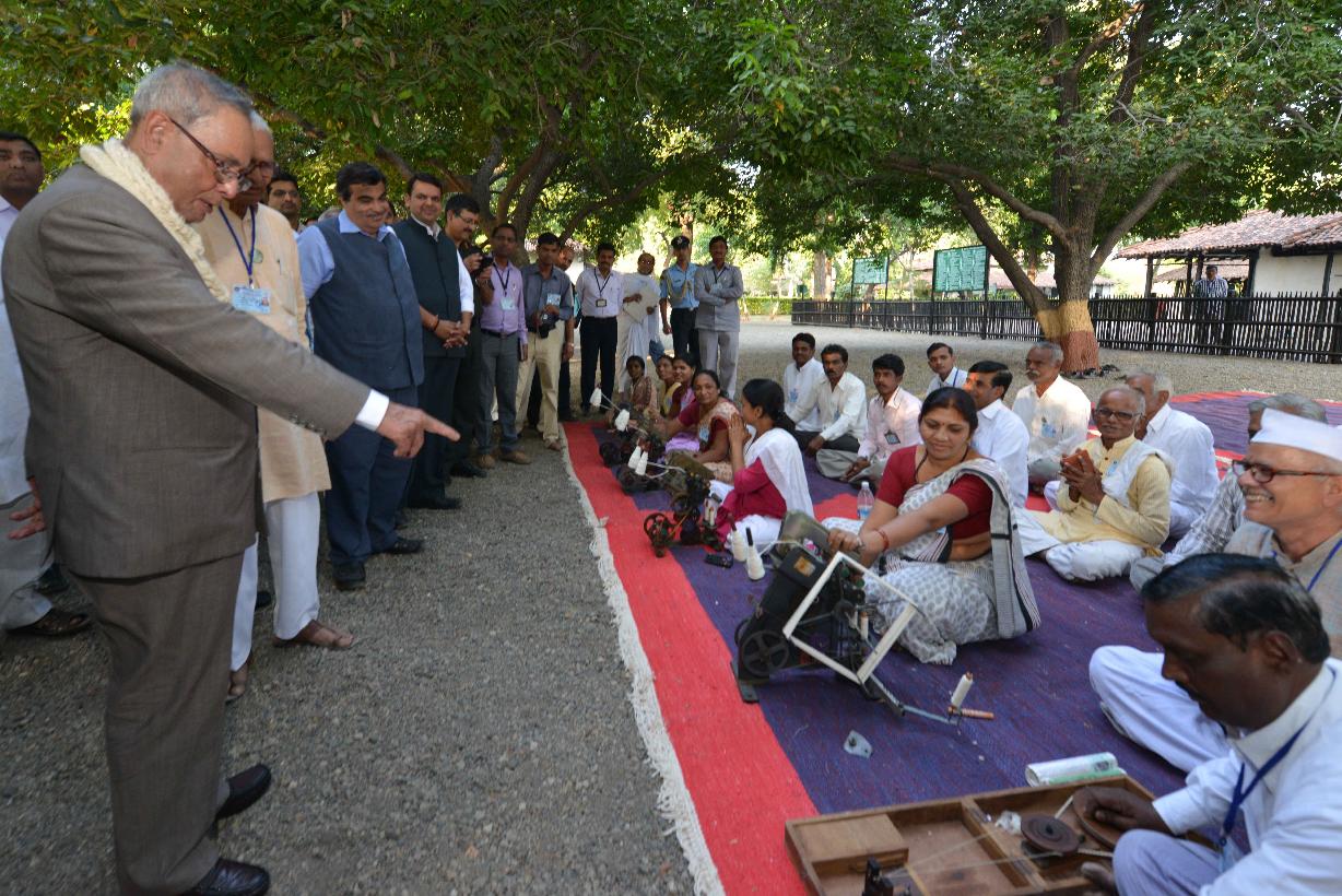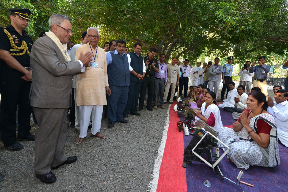 | Caption: | The President of India, Shri Pranab Mukherjee visiting the Sewagram Ashram at Wardha in Maharashtra on Nov 26, 2014 |
