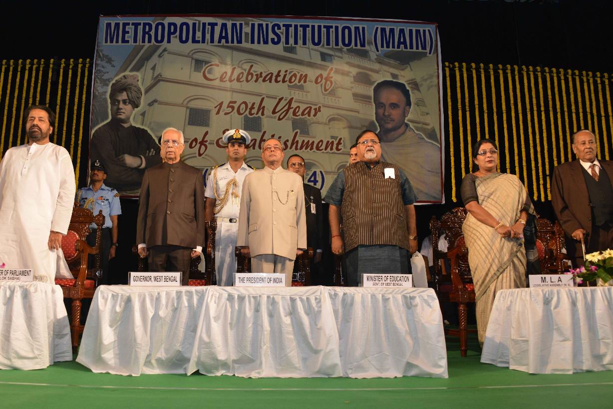 | Caption: | The President of India, Shri Pranab Mukherjee at the Closing Ceremony of the 150th Anniversary of Metropolitan Institution (Main) at Kolkata in West Bengal on Nov 29, 2014 |