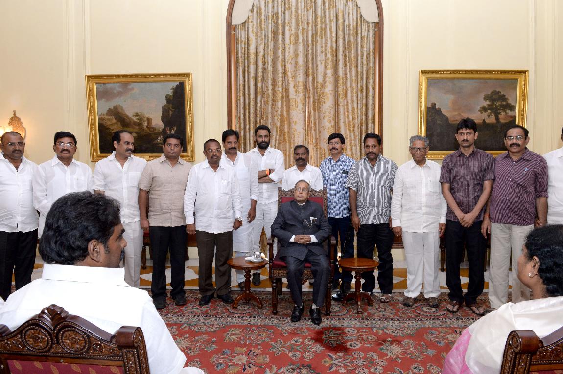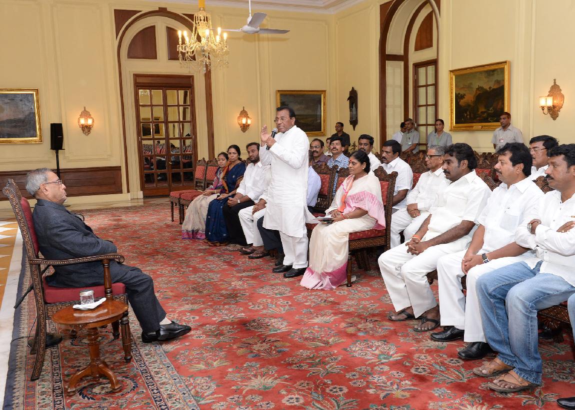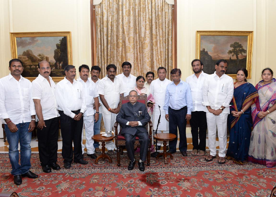 | Caption: | The President of India, Shri Pranab Mukherjee Interacting with 11-member delegation from YSR Congress Party led by Shri Mekapati Rajamohan Reddy, MP(LS) at Rashtrapati Bhavan in New Delhi on Aug 27, 2013 |