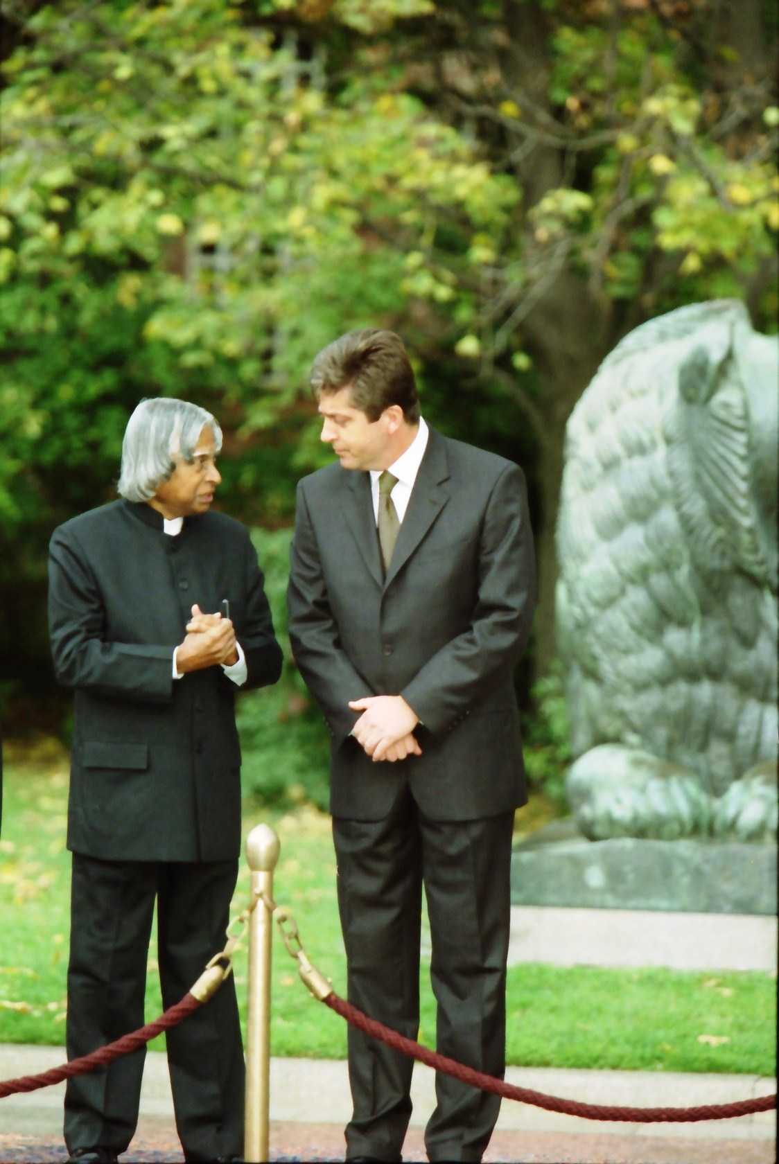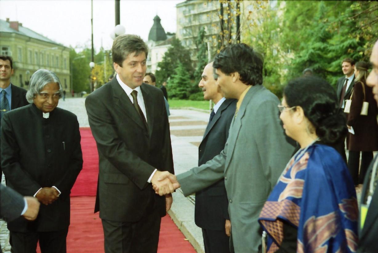 | Caption: | The President of India, Dr A P J Abdul Kalam at the Dinner Hosted by the President of Bulgaria at Nevsky Square Sofia in Bulgaria on Oct 23, 2003 |
