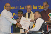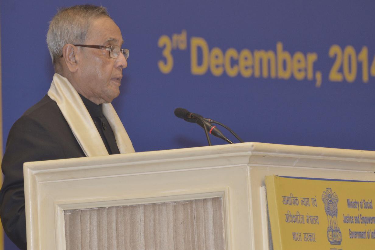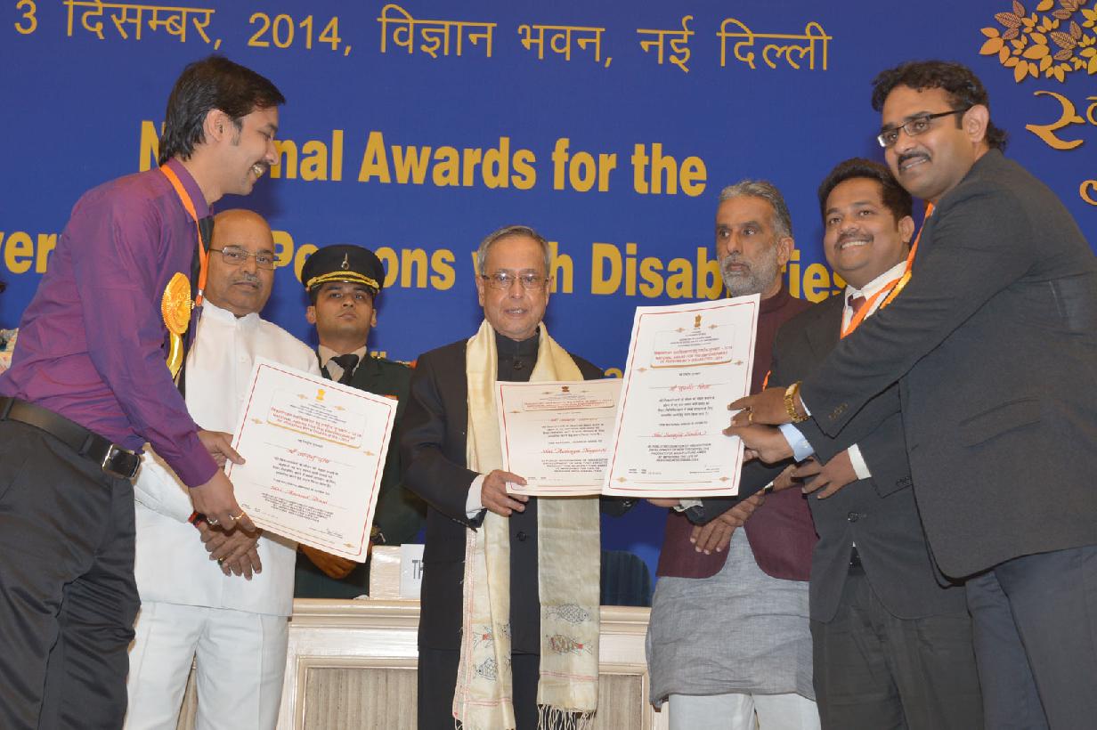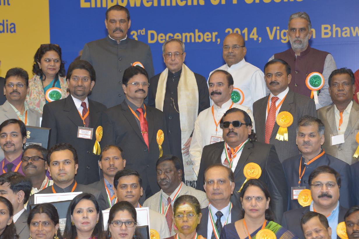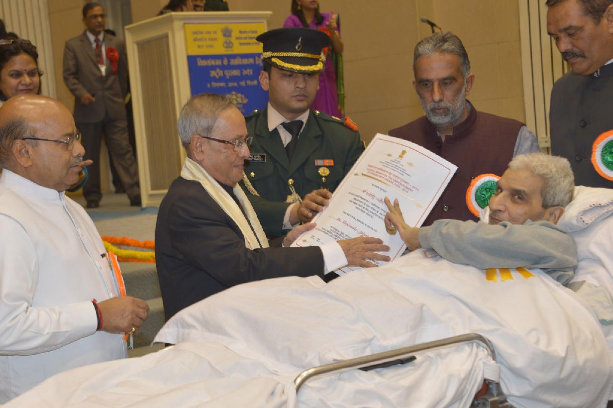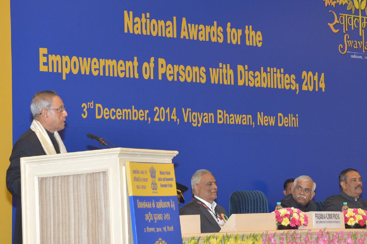 | Caption: | The President of India, Shri Pranab Mukherjee presenting the National Awards for the Empowerment of Persons with Disabilities at Vigyan Bhavan in New Delhi on Dec 03, 2014 |