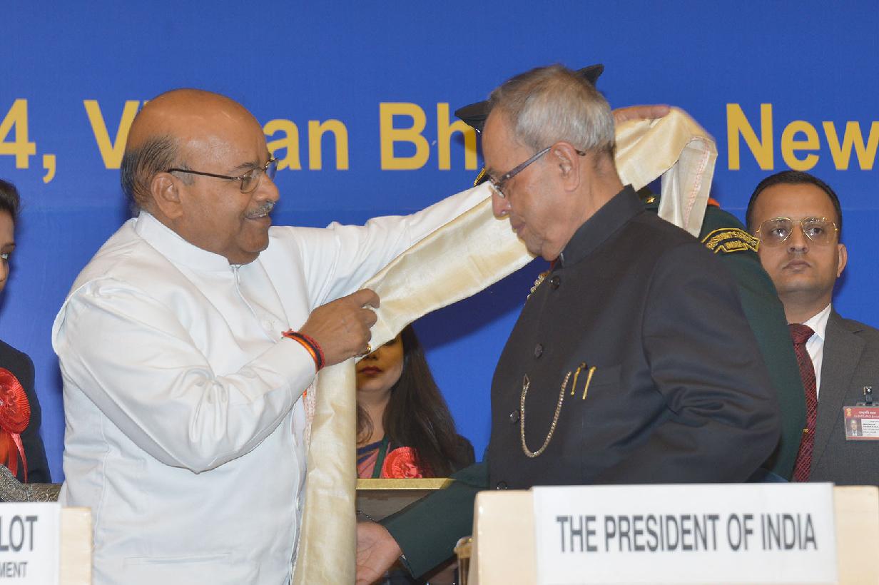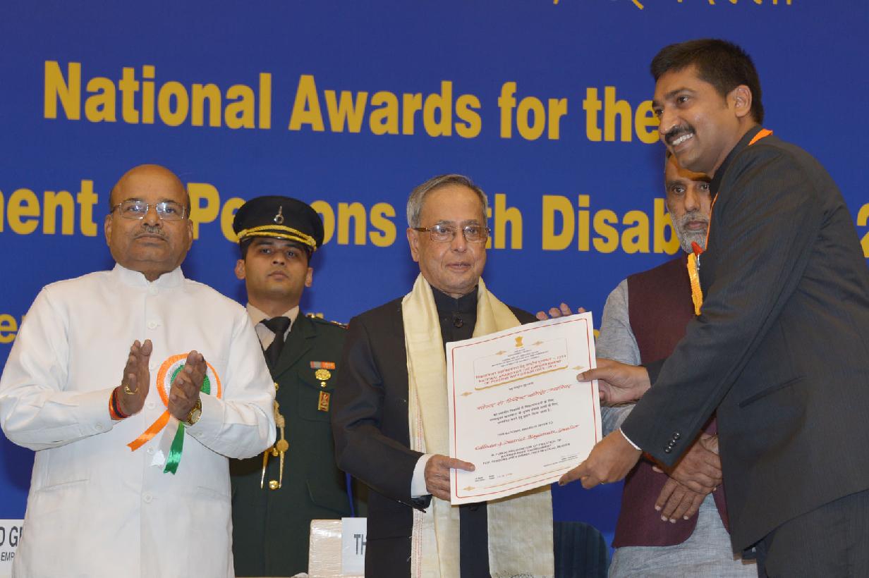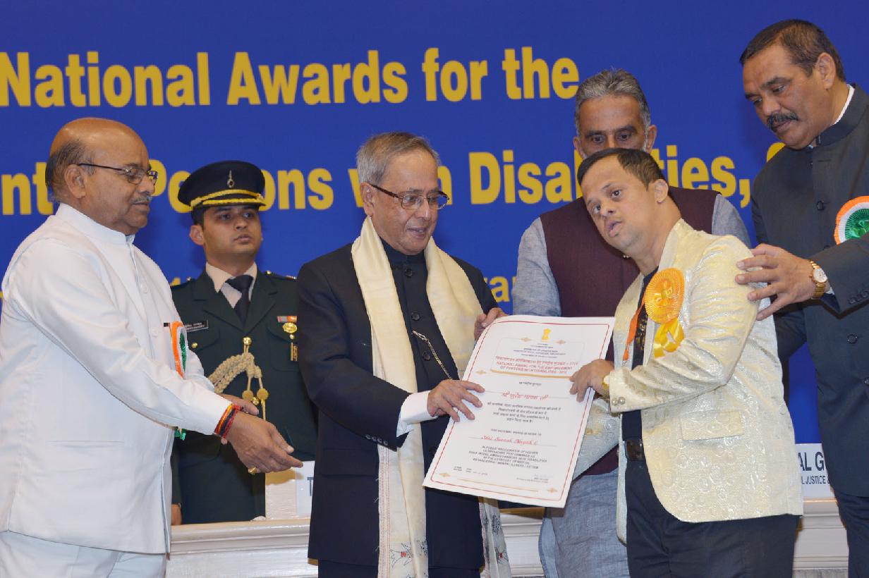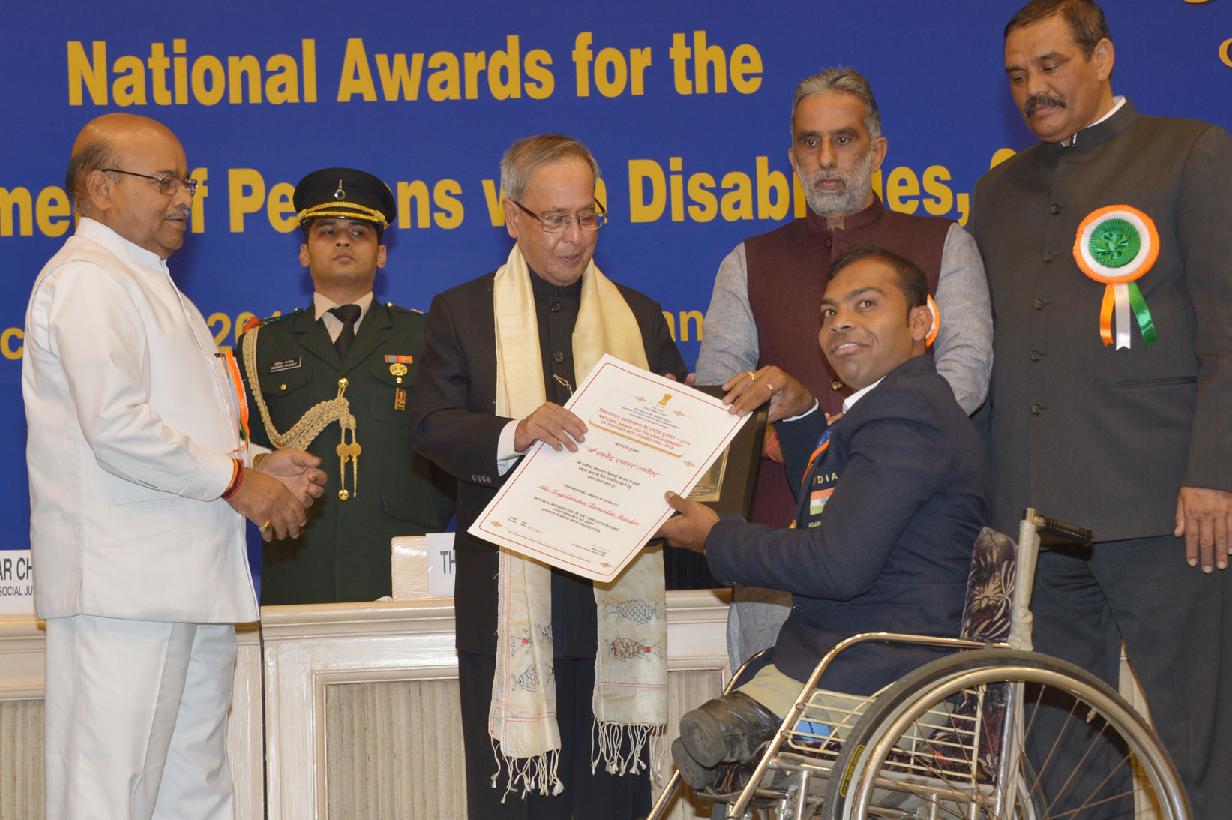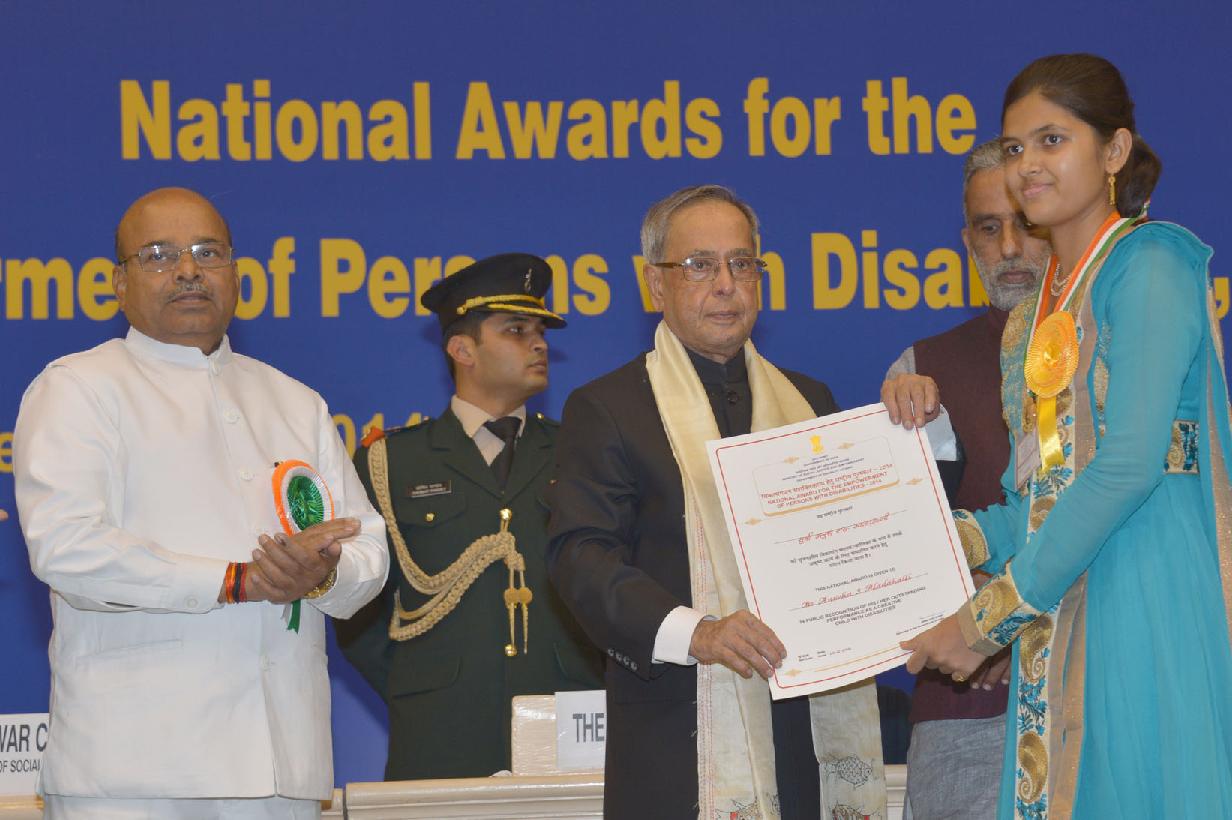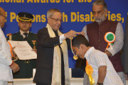 | Caption: | The President of India, Shri Pranab Mukherjee presenting the National Awards for the Empowerment of Persons with Disabilities at Vigyan Bhavan in New Delhi on Dec 03, 2014 |