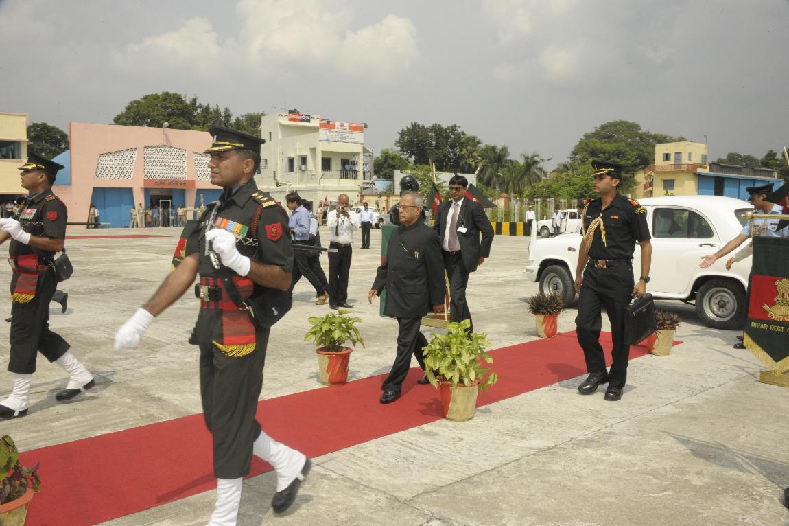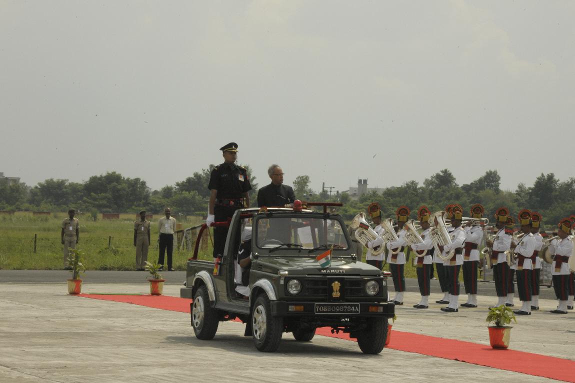 | Caption: | The President of India, Shri Pranab Mukherjee Inspecting Guard of Honour at Patna Airport on October 03, 2012 |