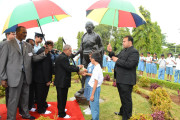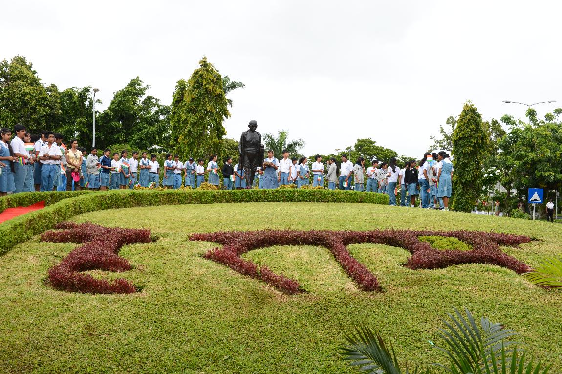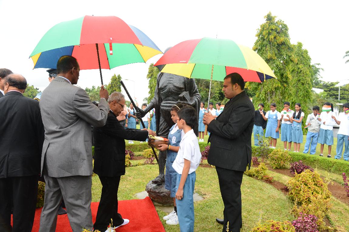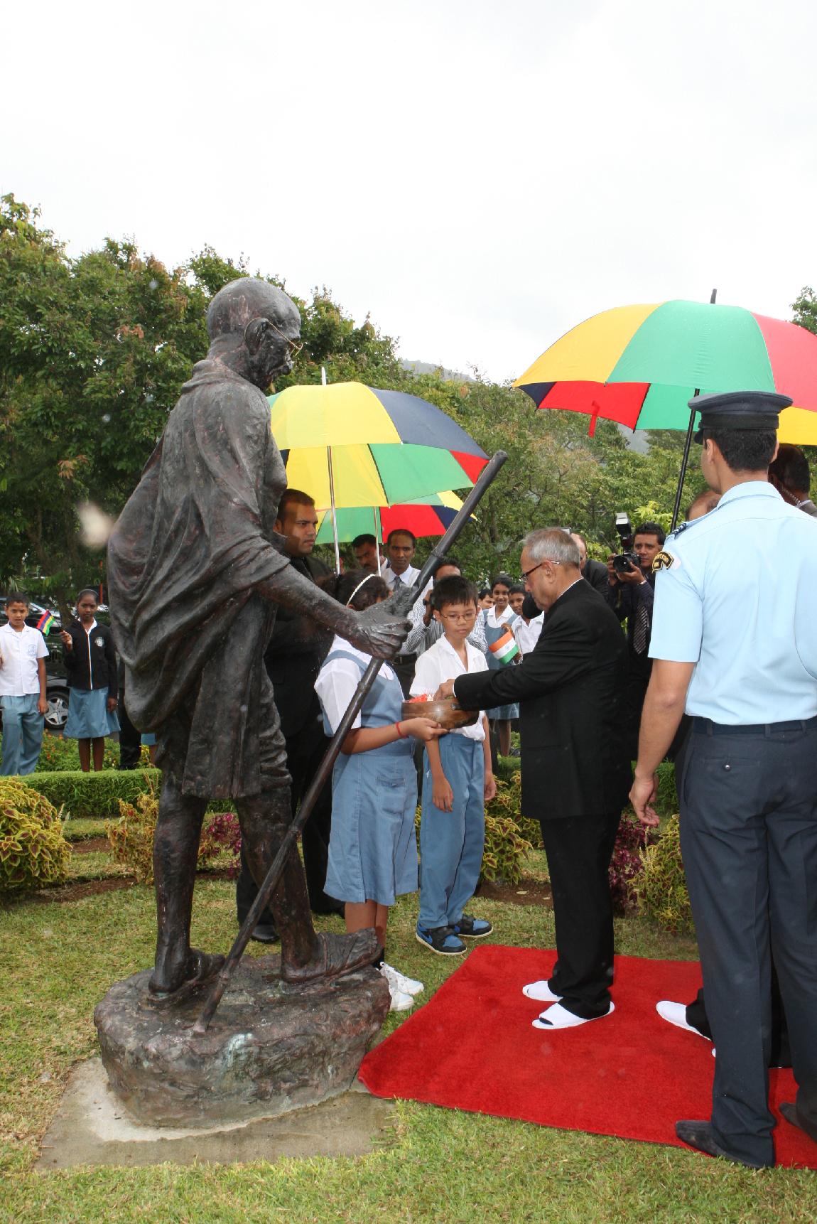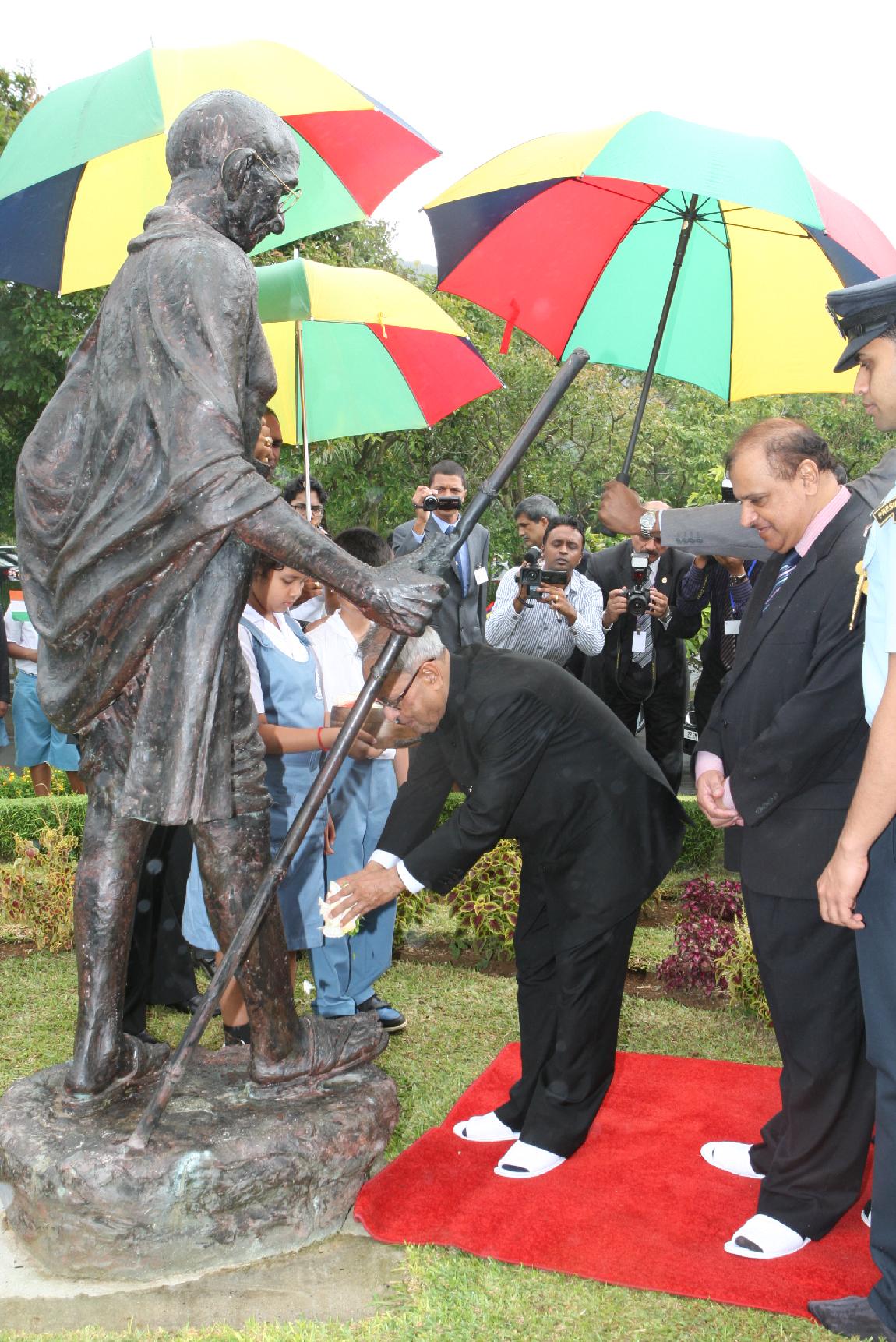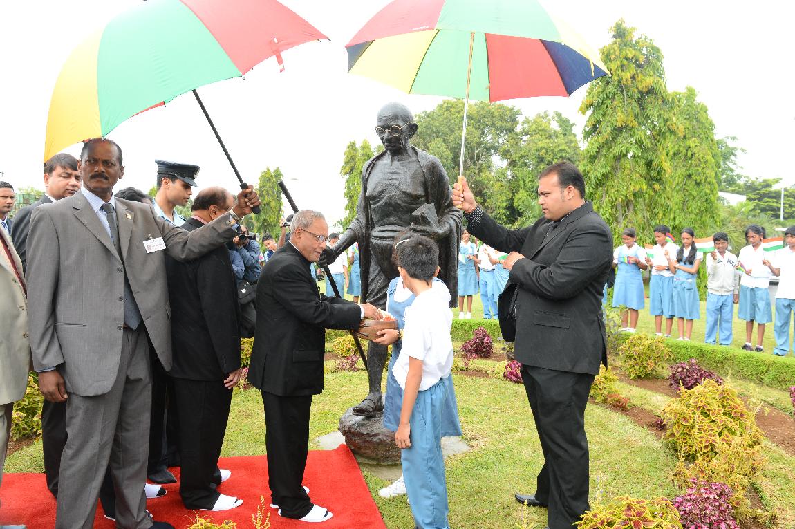 | Caption: | The President of India, Shri Pranab Mukherjee Flowral Tributes on Statue of Mahatma Gandhi on 13 March 2013 |