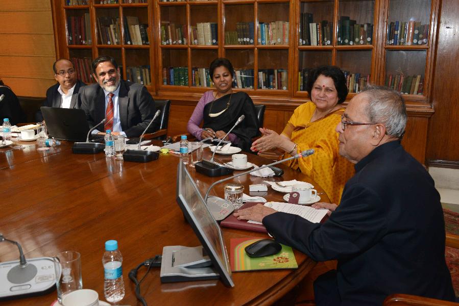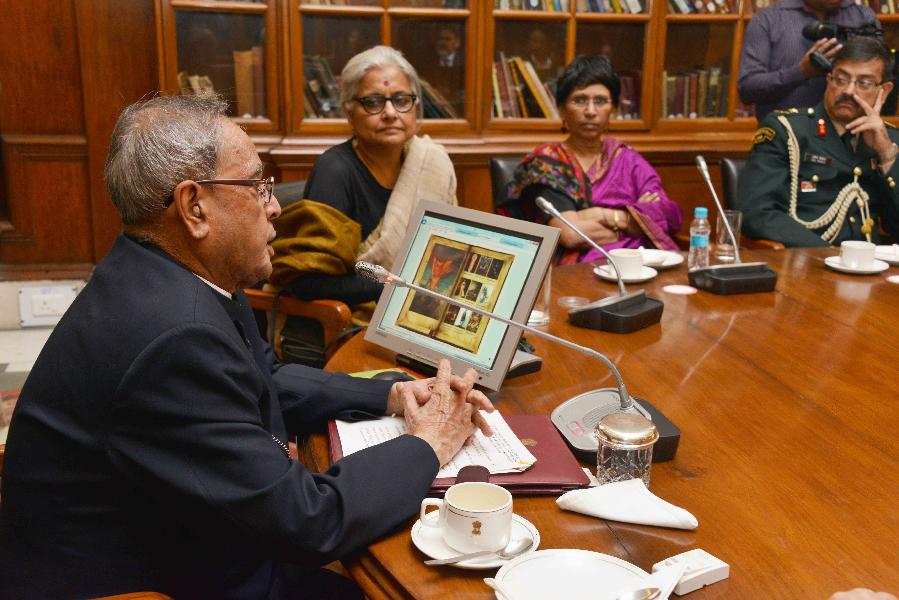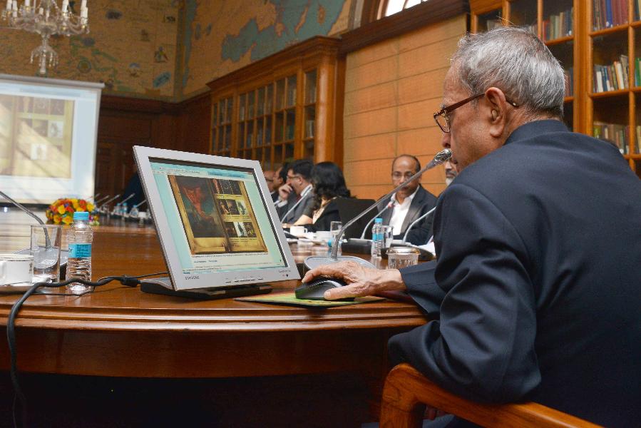 | Caption: | The President of India, Shri Pranab Mukherjee launching an Electronic Art Catalogue A Heritage of Rashtrapati Bhavan: A Selection at Rashtrapati Bhavan in New Delhi on Dec 11, 2014 |