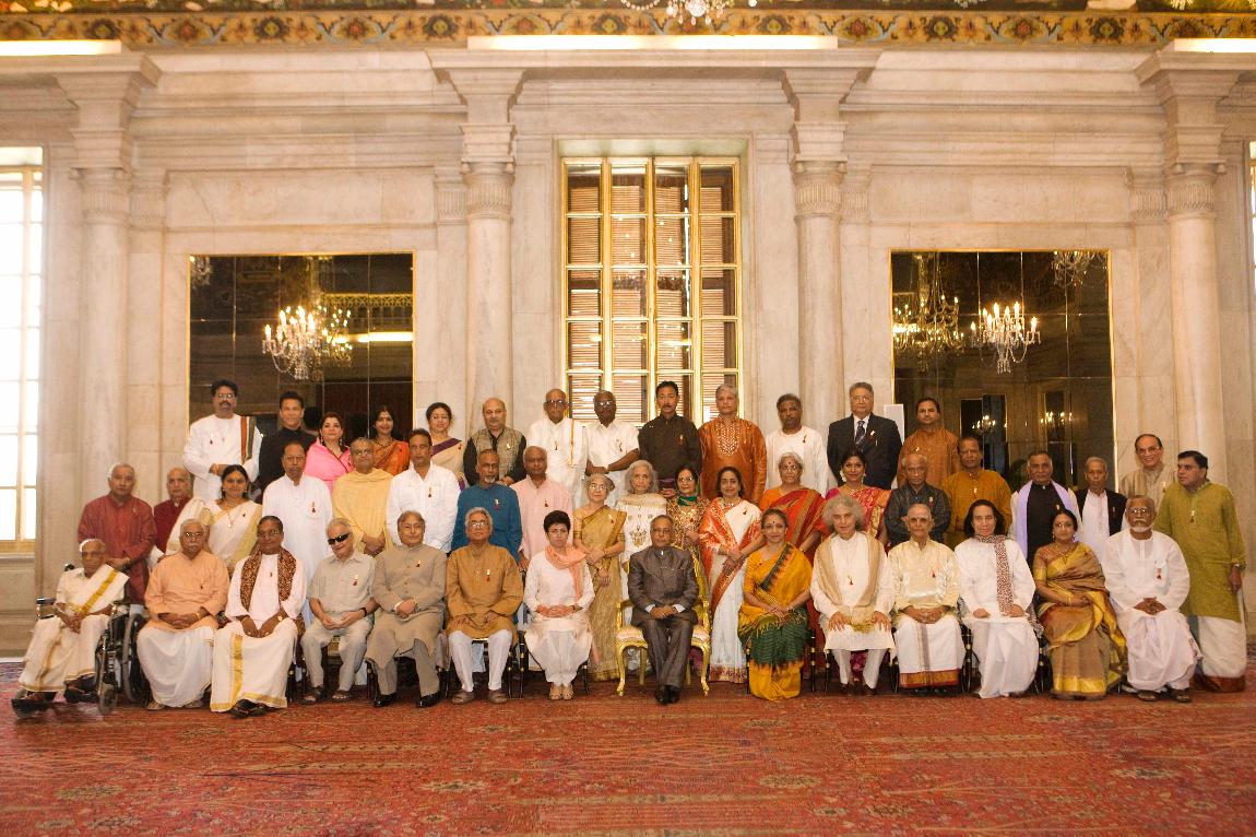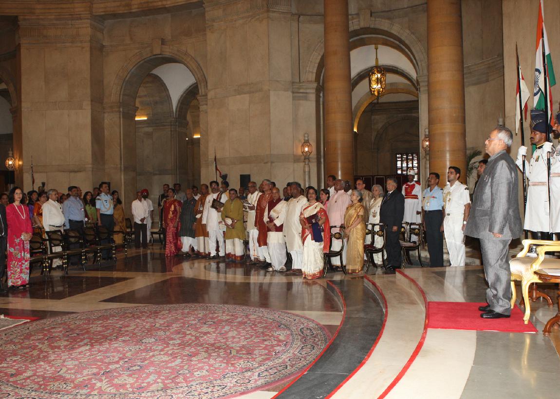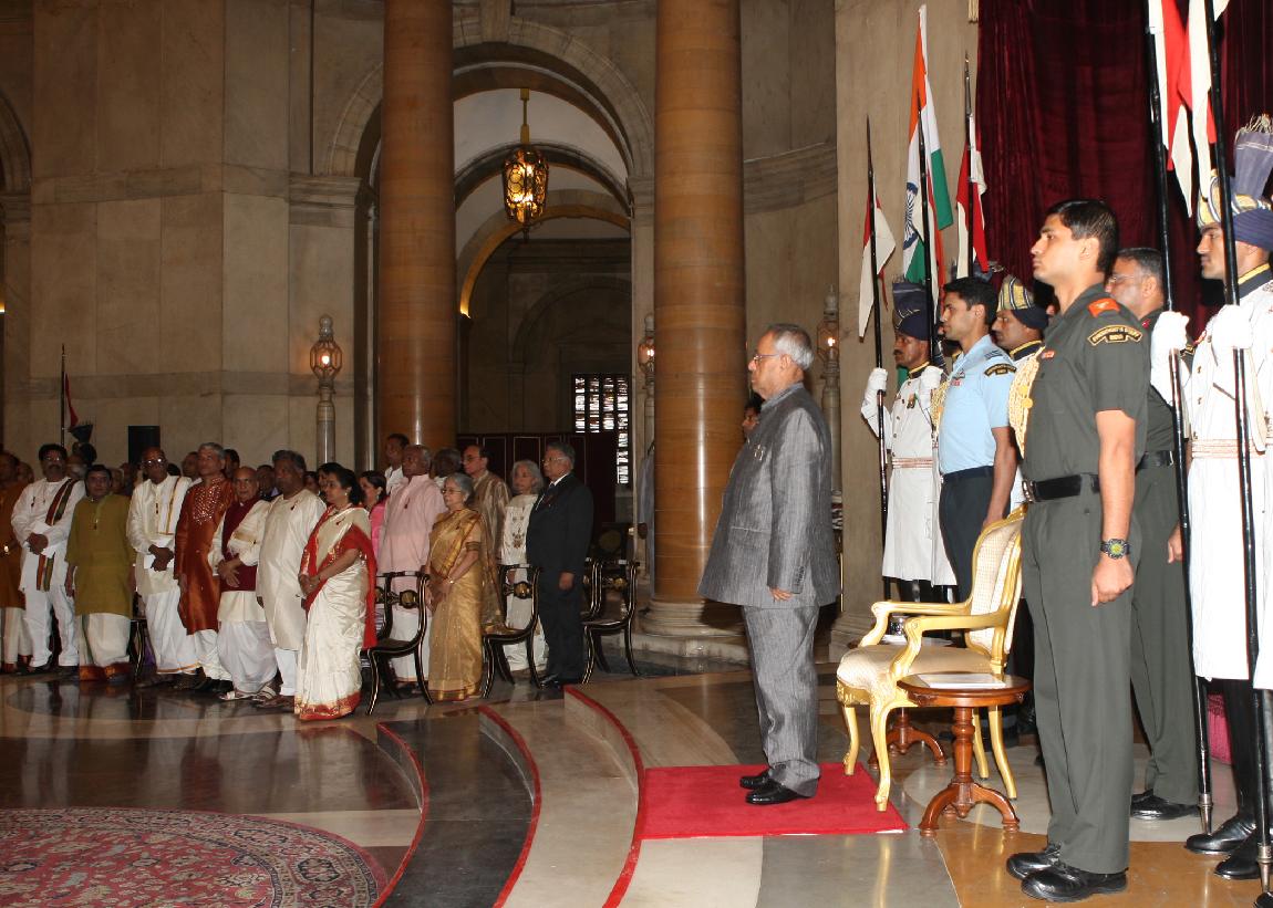 | Caption: | The President of India, Shri Pranab Mukherjee Presenting the Sangeet Natak Akademi Fellowships (Akademi Ratna) and Akademi Awards at Rashtrapati Bhavan in Delhi on Oct 09, 2012 |