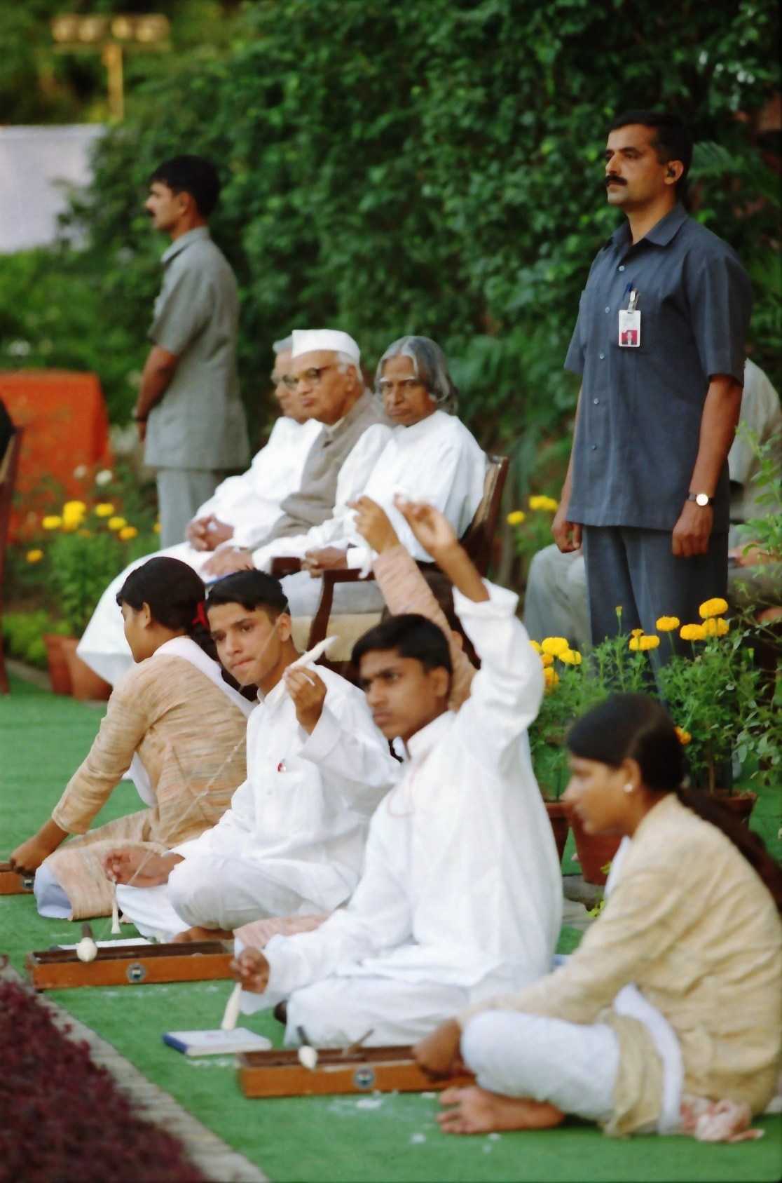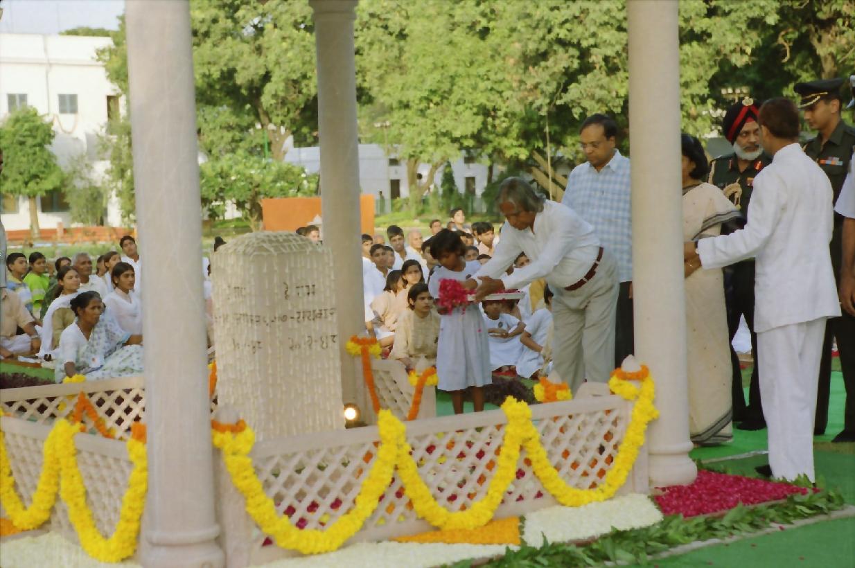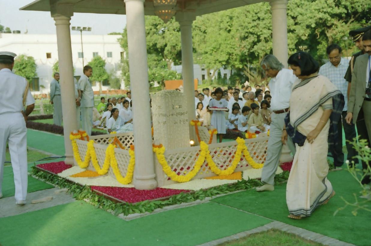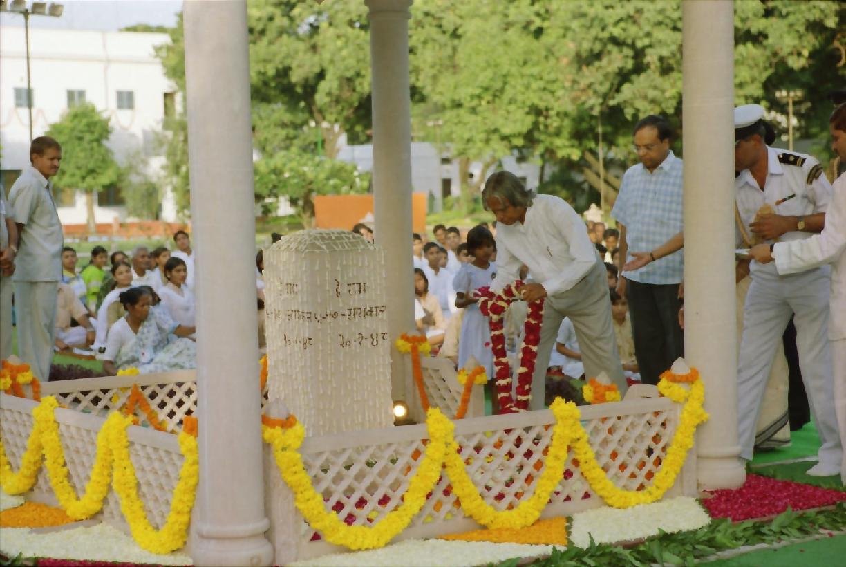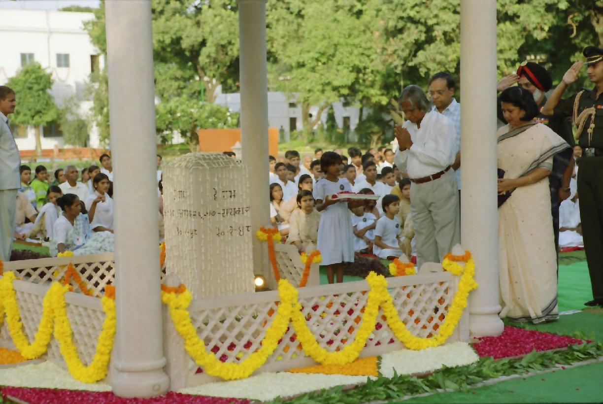 | Caption: | The President of India, Dr A P J Abdul Kalam paying homage to Mahatma Gandhi on the occasion of his 134th Birth Anniversary at Rajghat in New Delhi on Oct 02, 2003 |