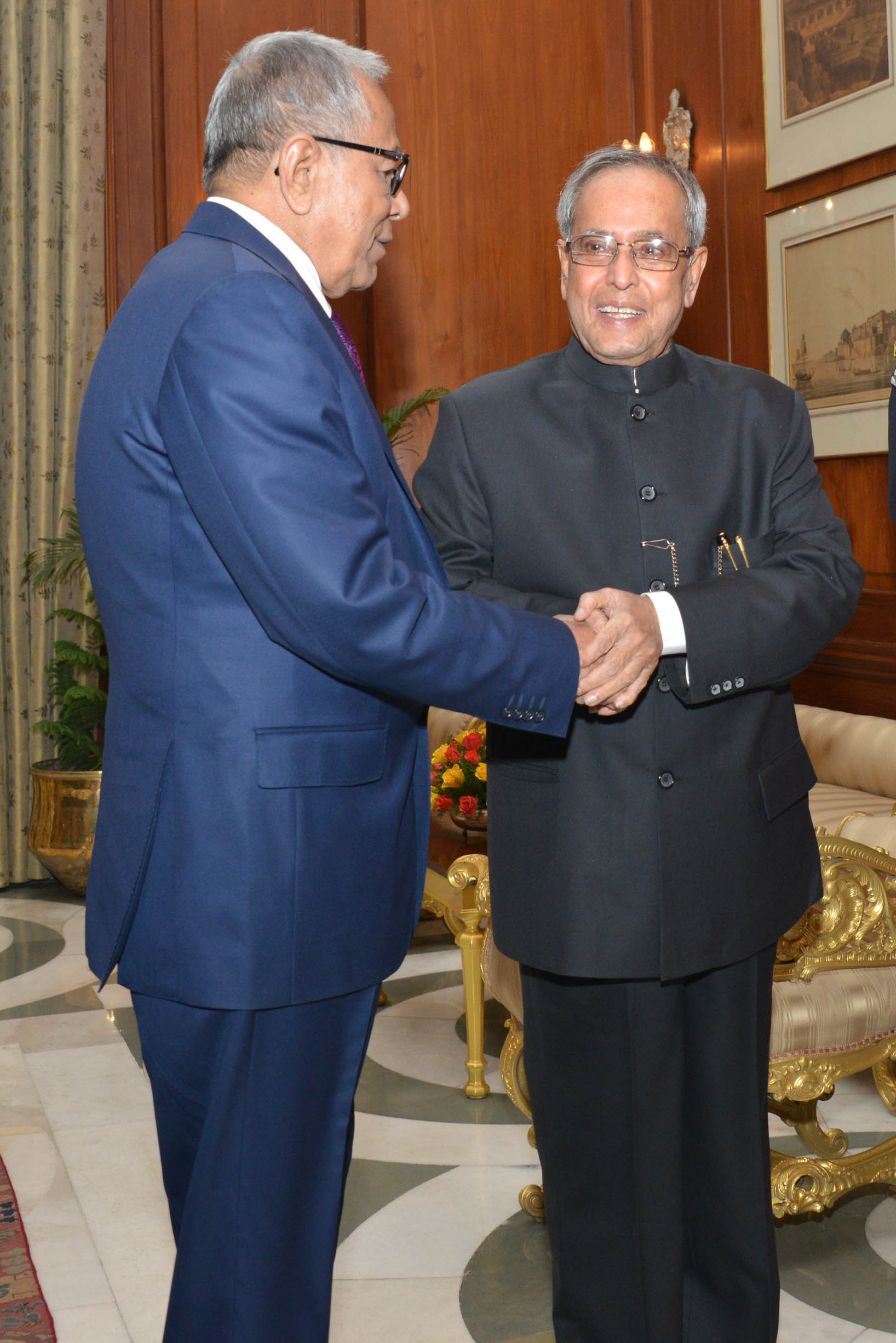 | Caption: | The President of the People's Republic of Bangladesh, HE Mr Abdul Hamid calling on the President of India, Shri Pranab Mukherjee at the North Drawing Room of Rashtrapati Bhavan in New Delhi on Dec 19, 2014 |