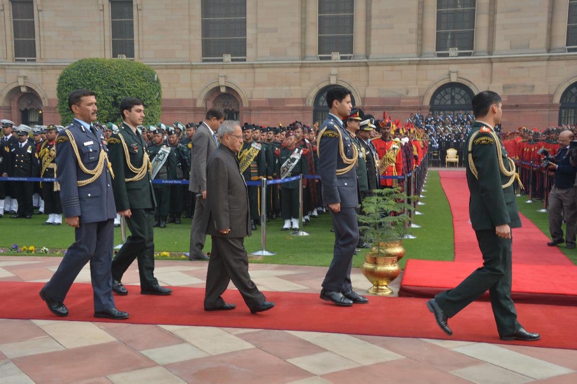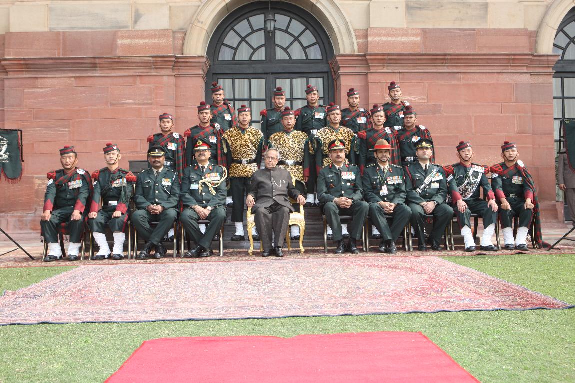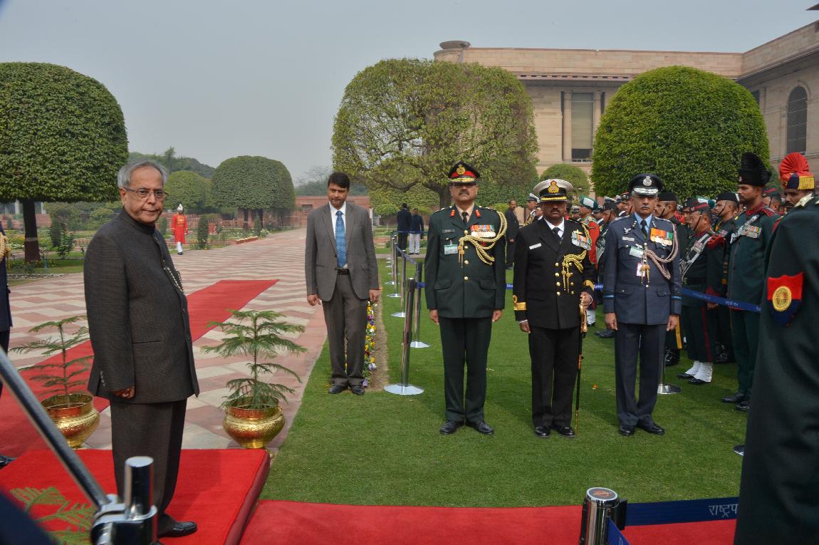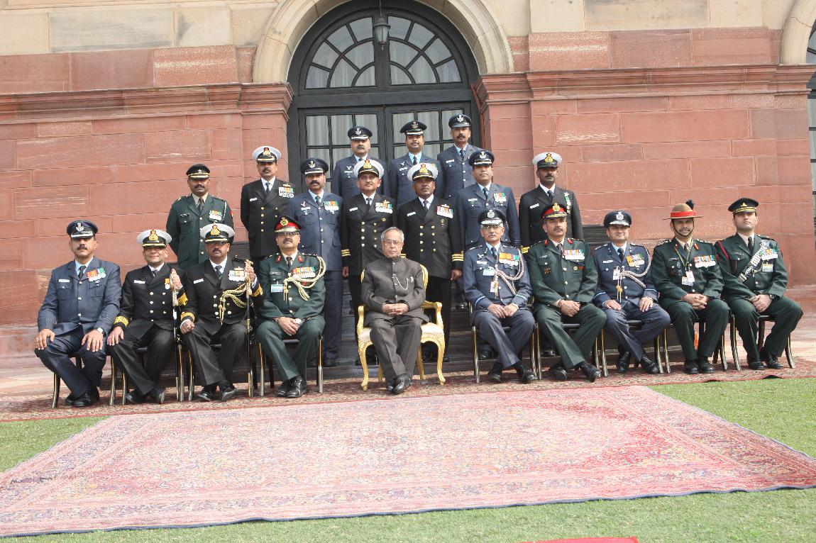 | Caption: | The President of India, Shri Pranab Mukherjee Meet 800 Personnel of the Tri Service Band Contingents (Participants of the Beating Retreat Ceremony ) Outriders of the Three Services on 30 Jan 2013 |