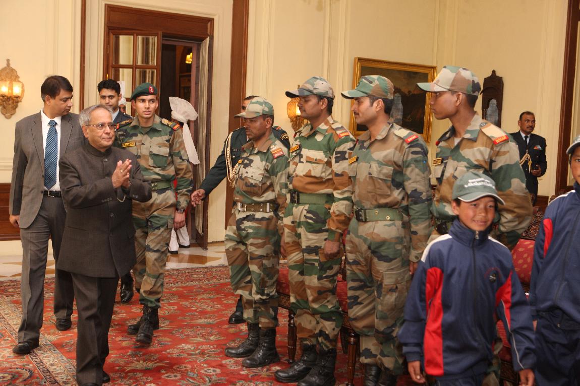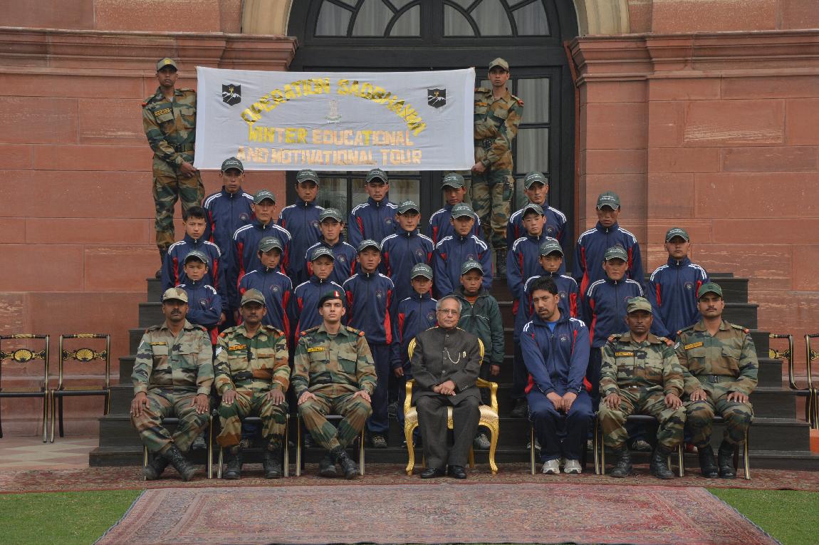 | Caption: | The President of India, Shri Pranab Mukherjee Meet Students from Nyoma Tehsil Eastern Ladakh Operation Sadbhavana on 30 Jan 2013 |