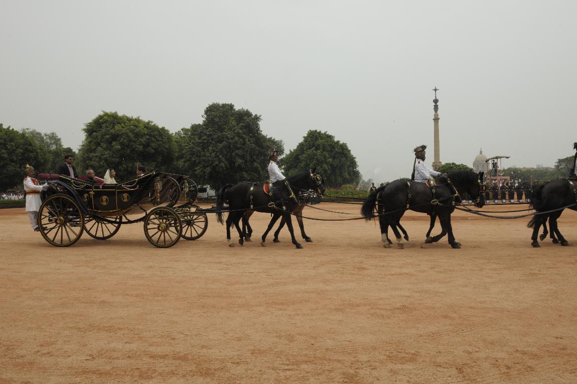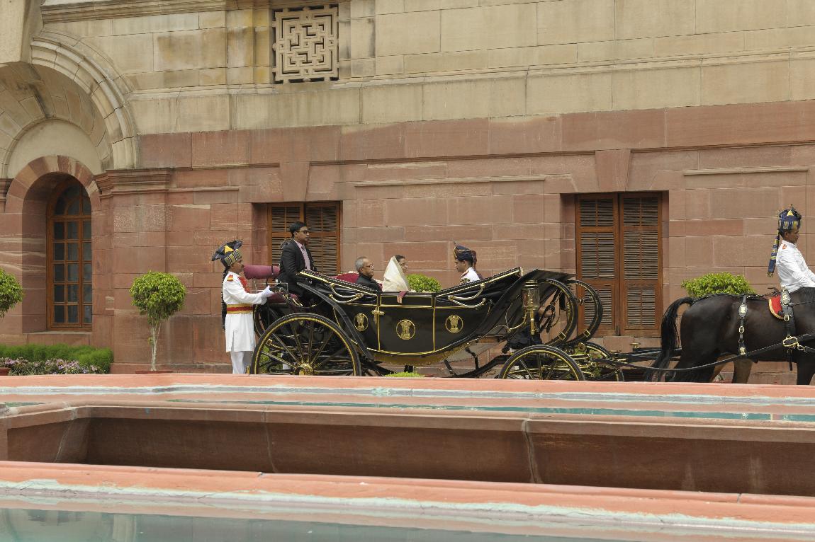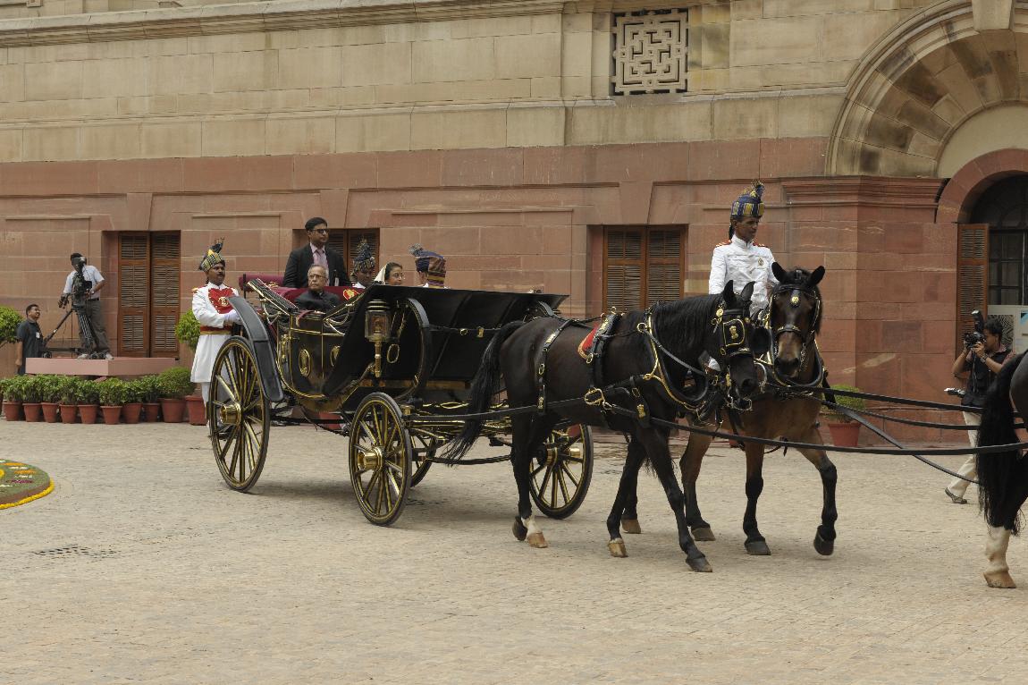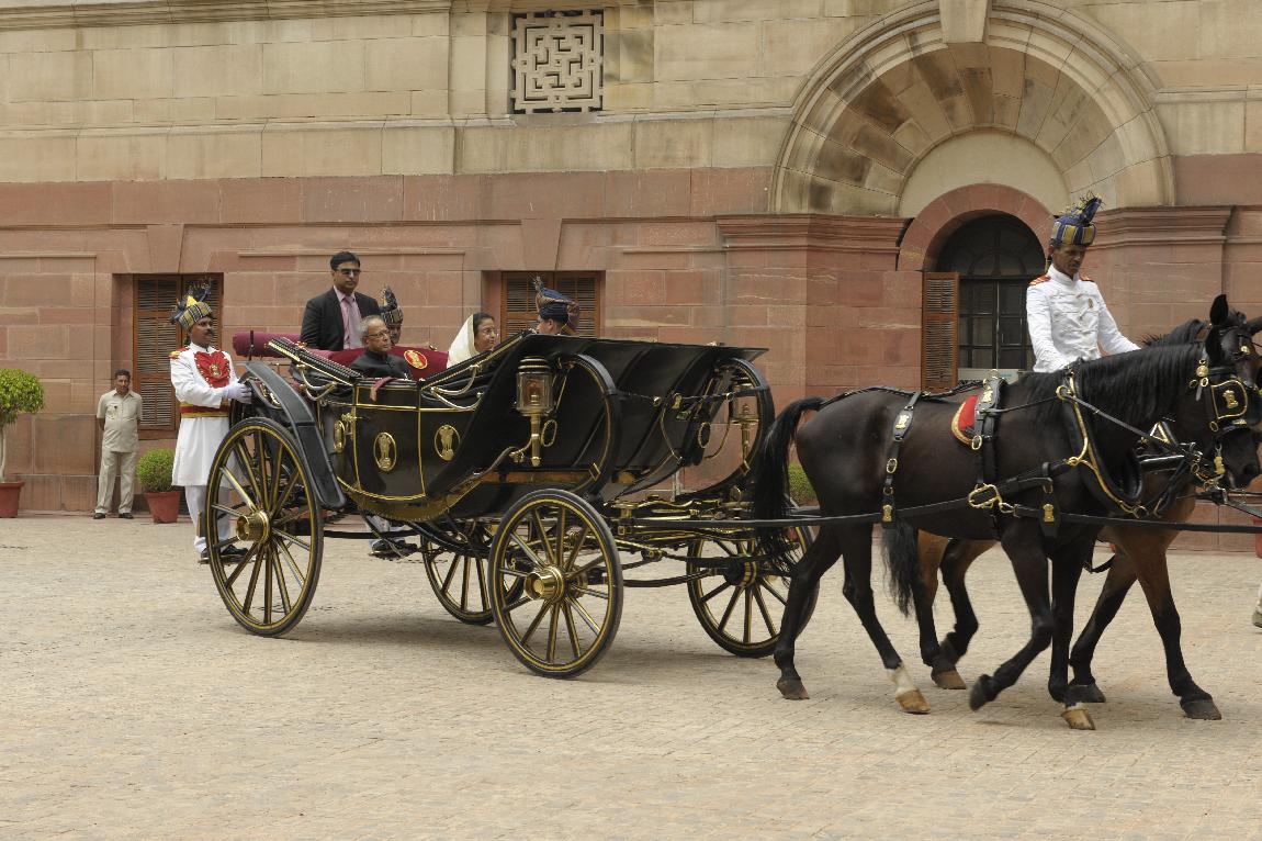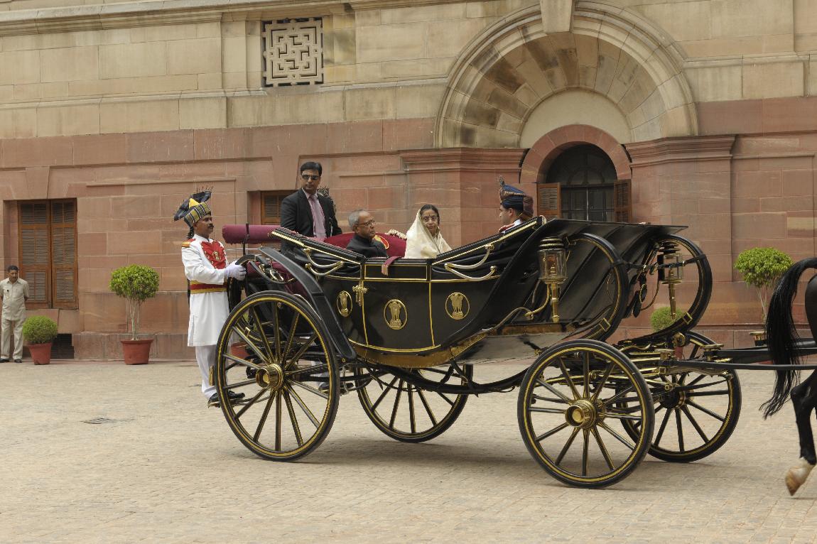 | Caption: | The President of India, Shri Pranab Mukherjee and The Ex-President Smt Pratibha Patil in State Coach on July 25, 2012 |