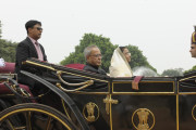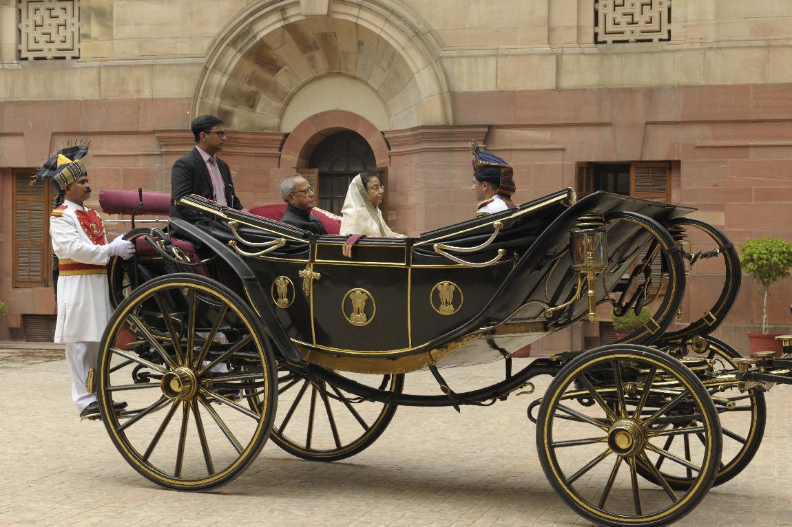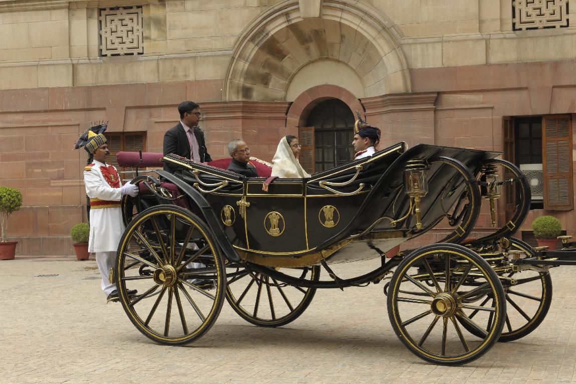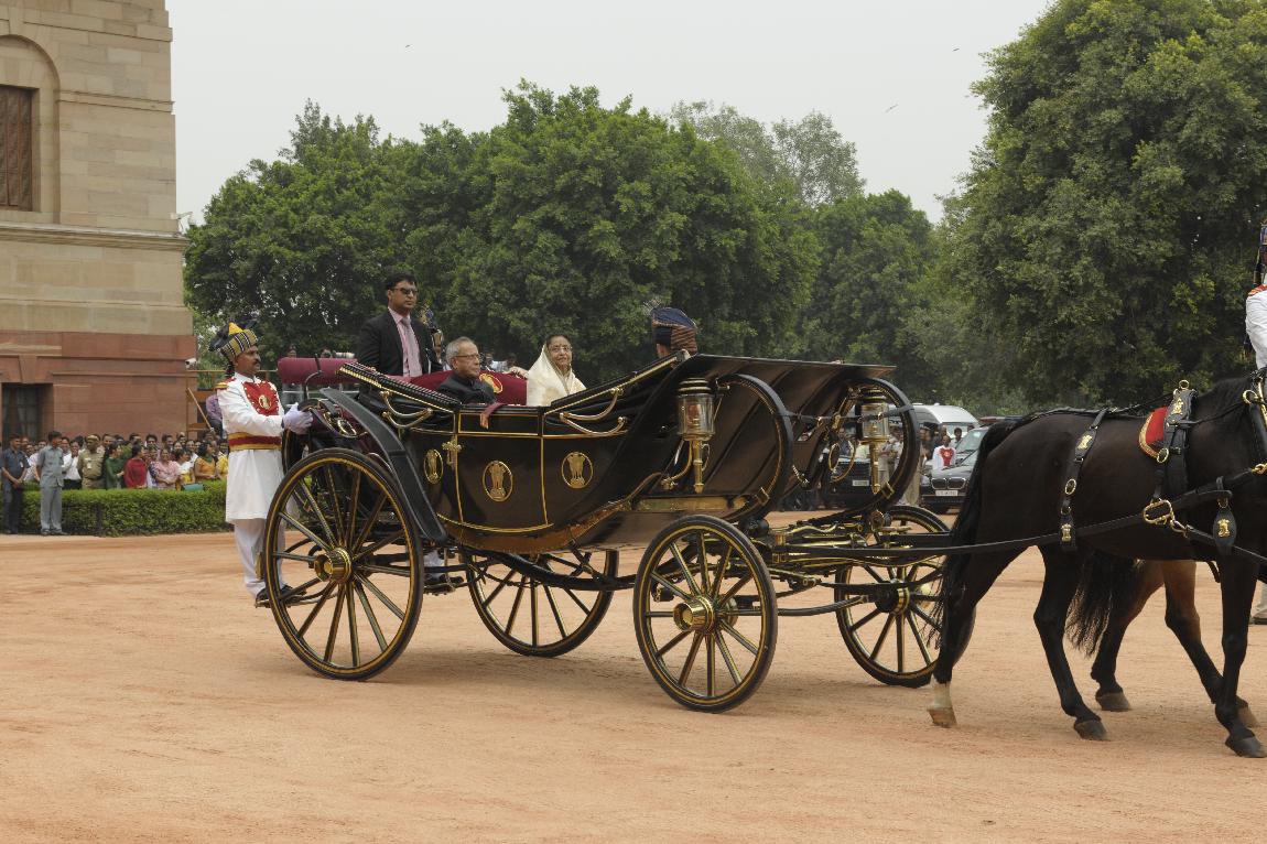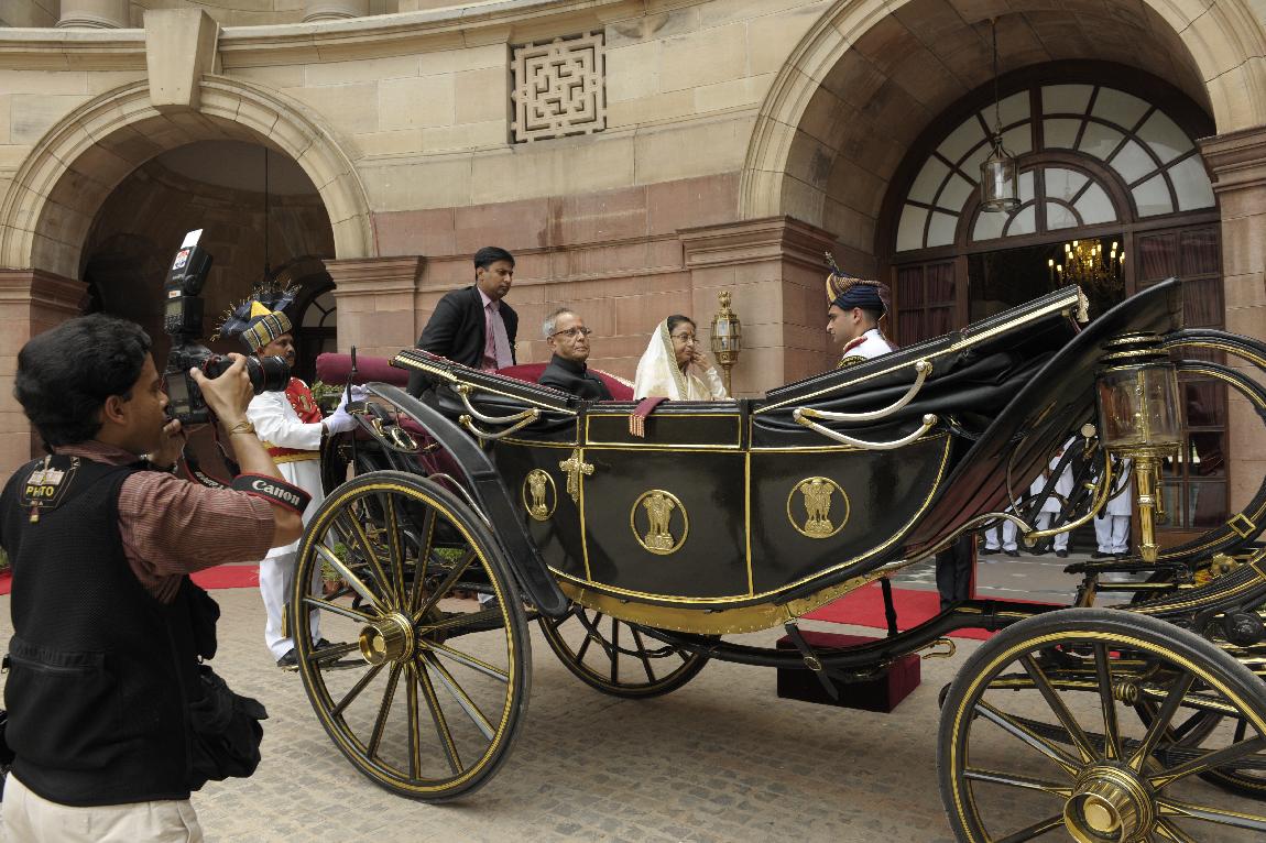 | Caption: | The President of India, Shri Pranab Mukherjee and The Ex-President Smt Pratibha Patil in State Coach on July 25, 2012 |
