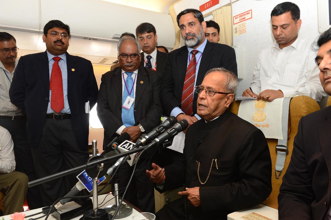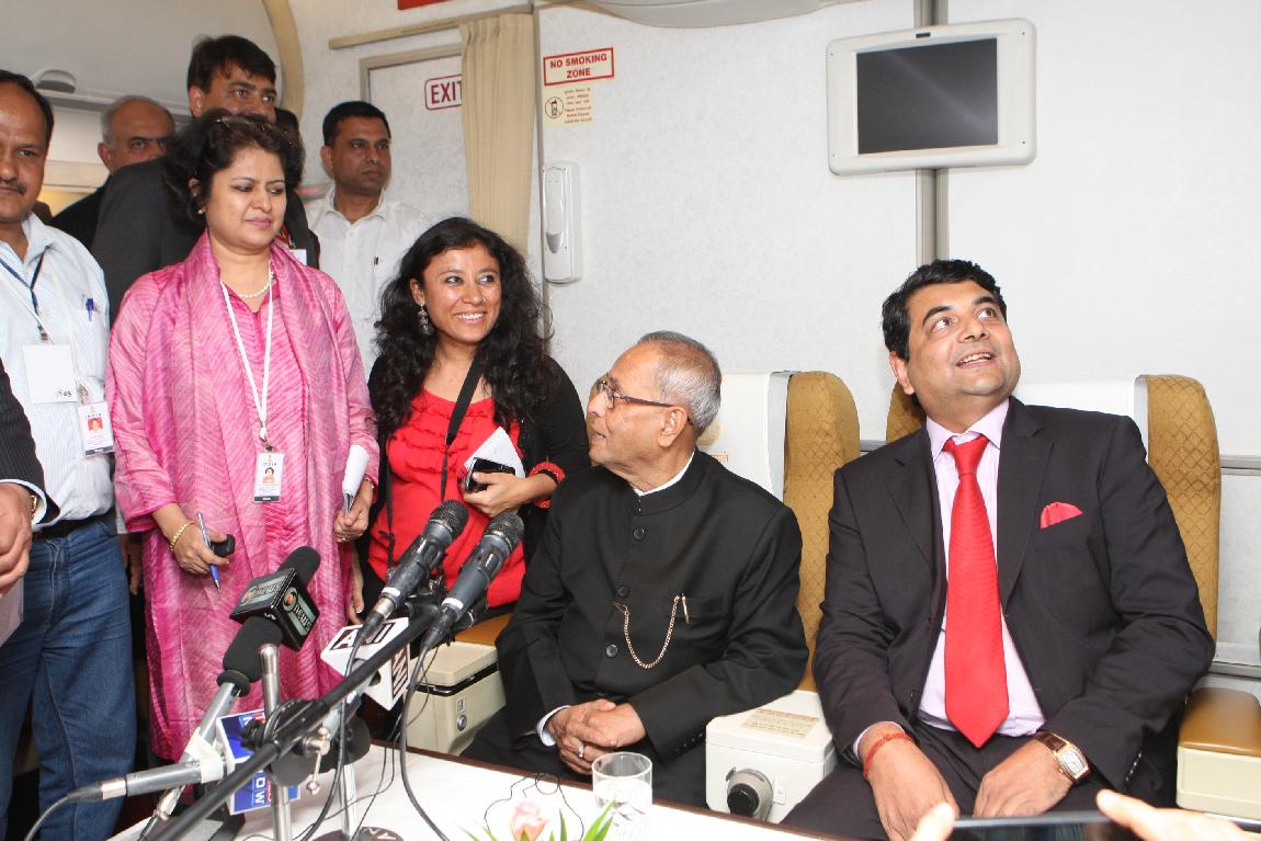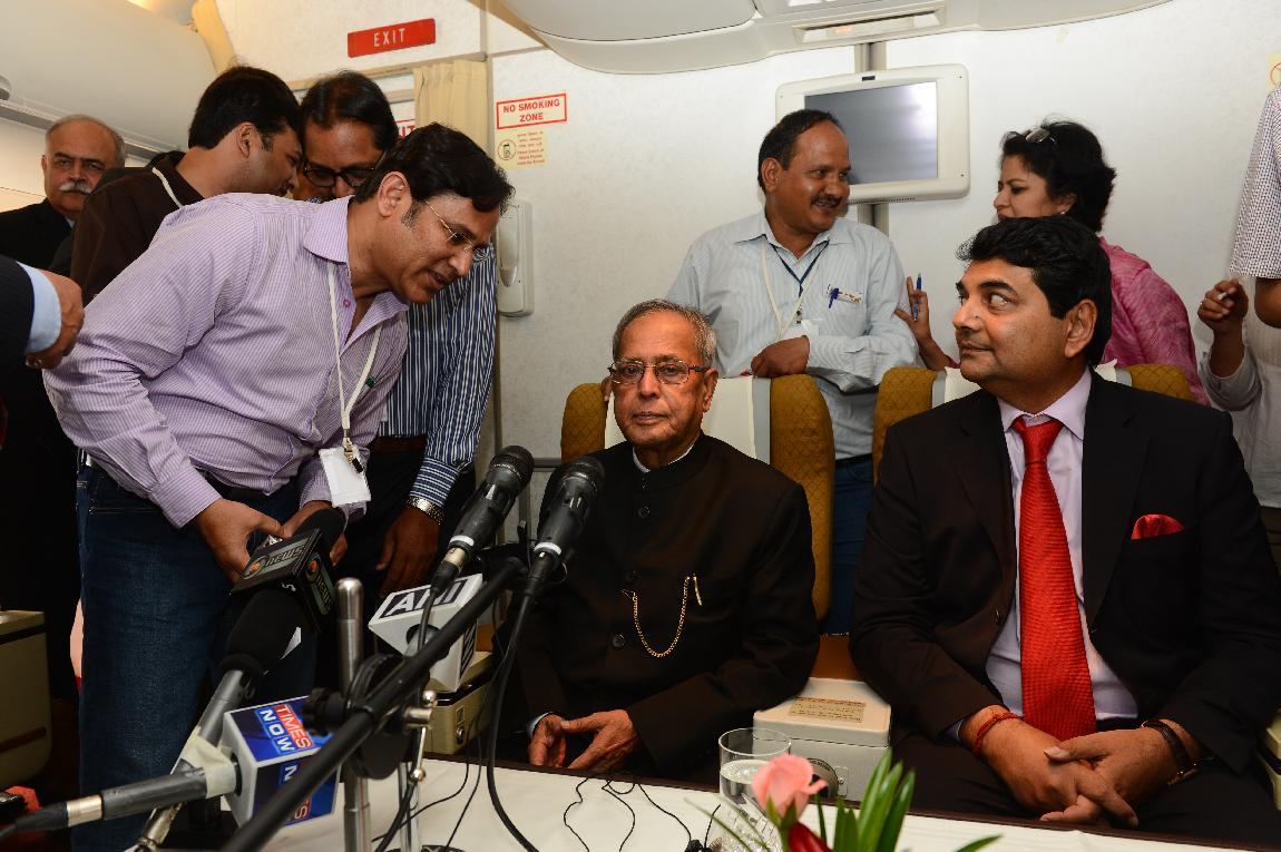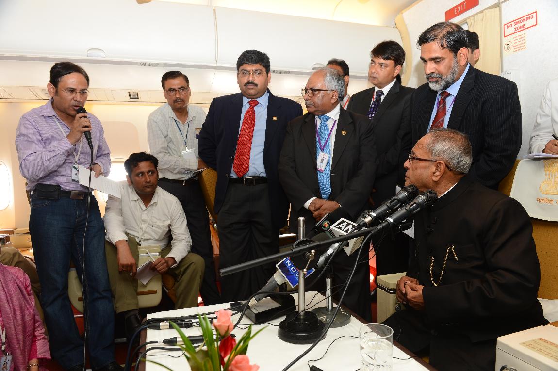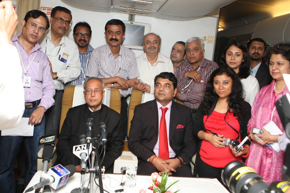 The President of India, Shri Pranab Mukherjee Meeting Media During Way to Delhi on 13 March 2013