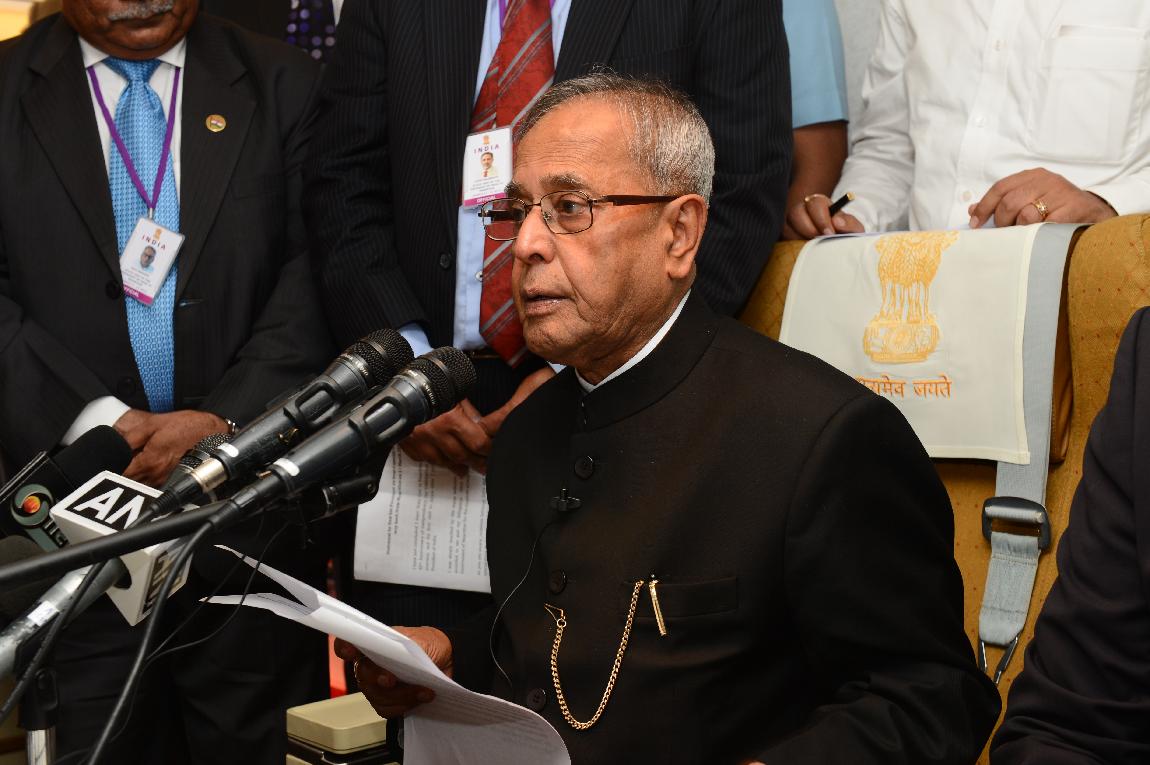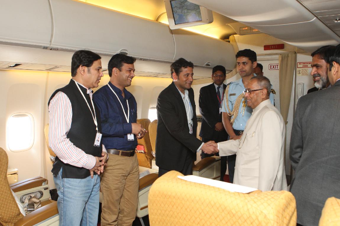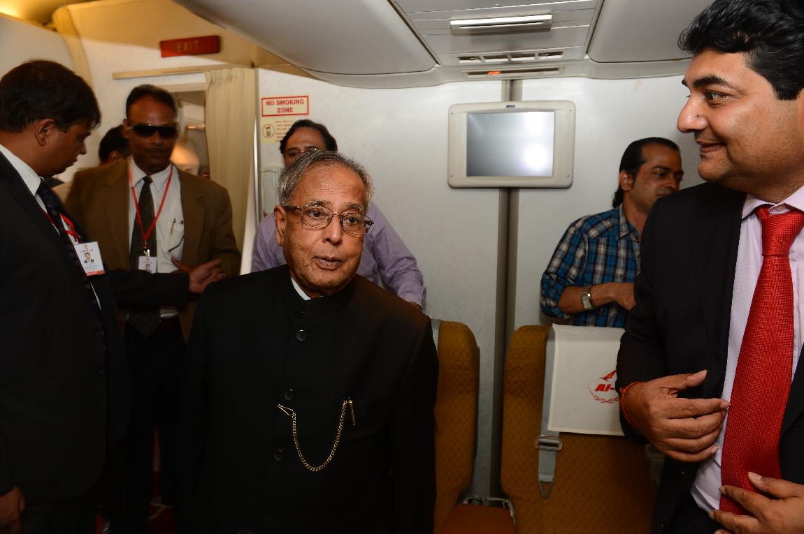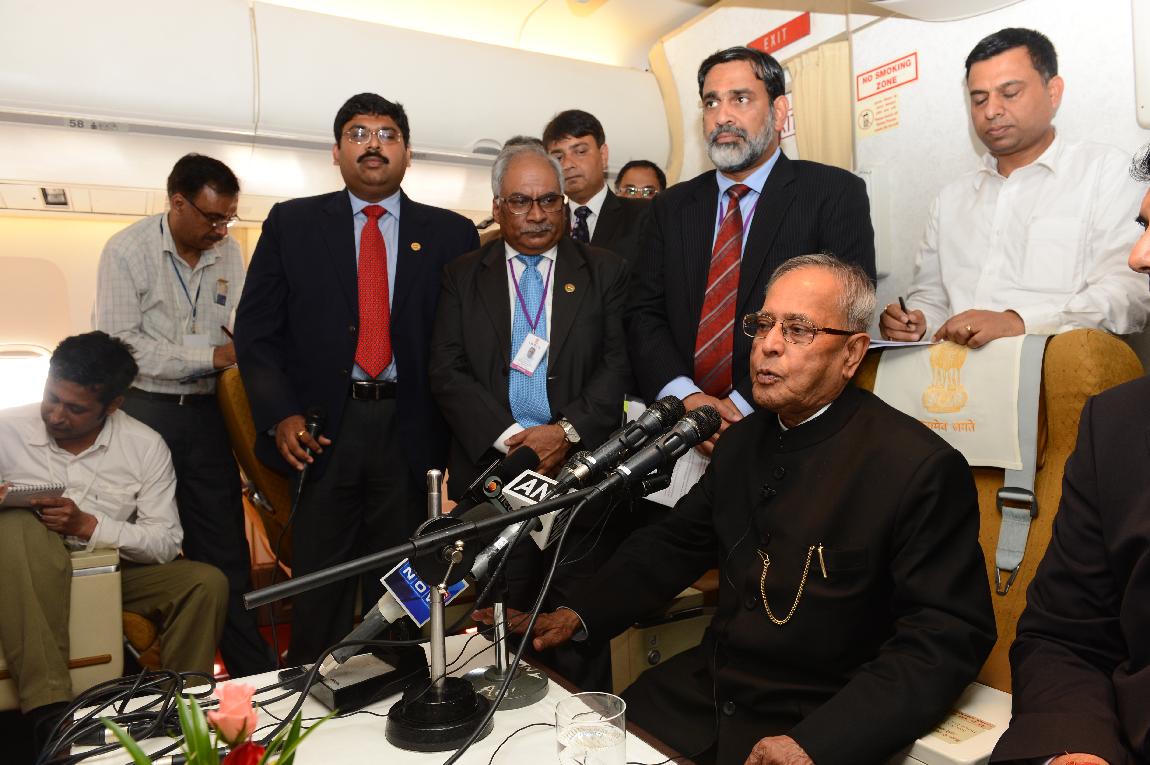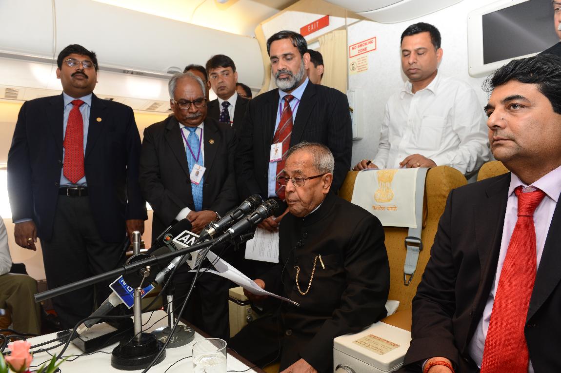 The President of India, Shri Pranab Mukherjee Meeting Media During Way to Delhi on 13 March 2013