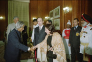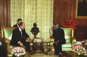 | Caption: | The President of the Republic of Armenia, His Excellency Mr Robert Kocharian and Mrs Bella Kocharian calling on the President of India, Dr A P J Abdul Kalam at the North Drawing Room of Rashtrapati Bhavan in New Delhi on Oct 31, 2003 |