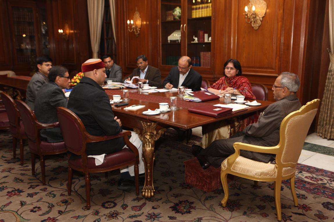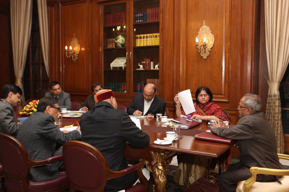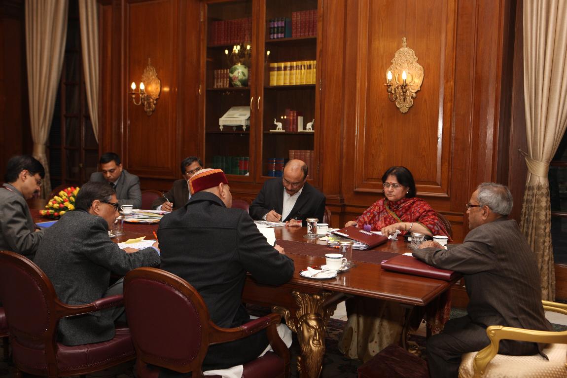 | Caption: | The President of India, Shri Pranab Mukherjee Meeting with Dr MM Pallam Raju with Others on 31 Jan 2013 |