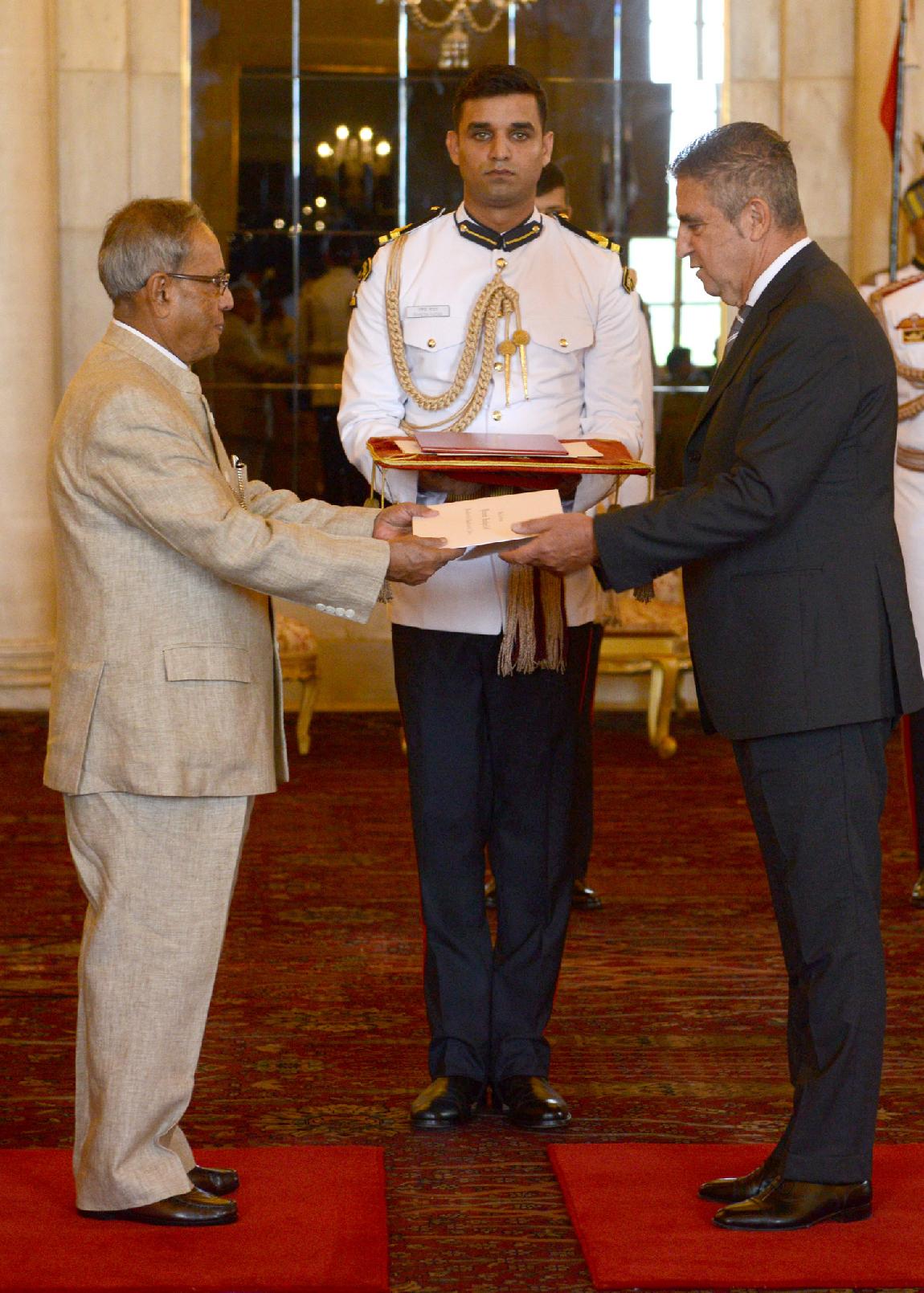| Caption: | HE Mr Francesco Polidori, Ambassador - Designate of the Republic of San Marino presenting his credentials to The President of India, Shri Pranab Mukherjee at Rashtrapati Bhavan in New Delhi on Sep 04, 2013 |