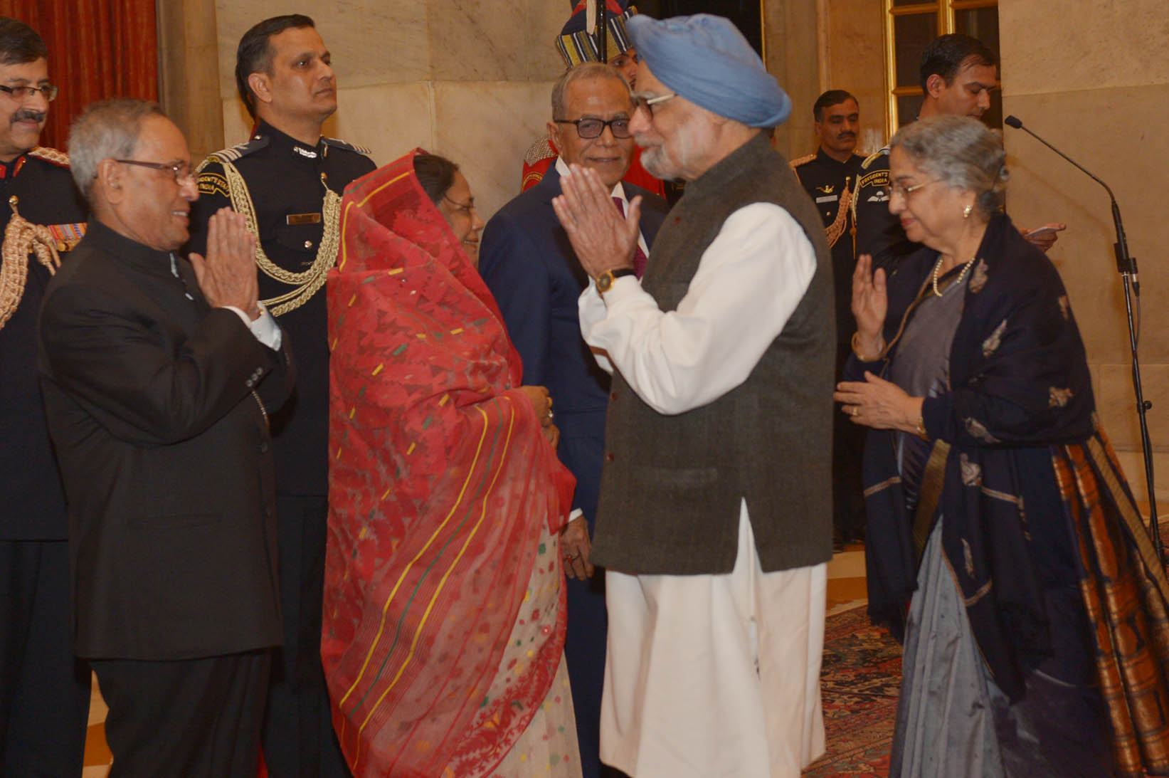| Caption: | The President of India, Shri Pranab Mukherjee at the Banquet Hosted in Honour of the President of the People's Republic of Bangladesh, HE Mr Abdul Hamid at the Banquet Hall of Rashtrapati Bhavan in New Delhi on Dec 19, 2014 |
