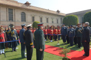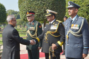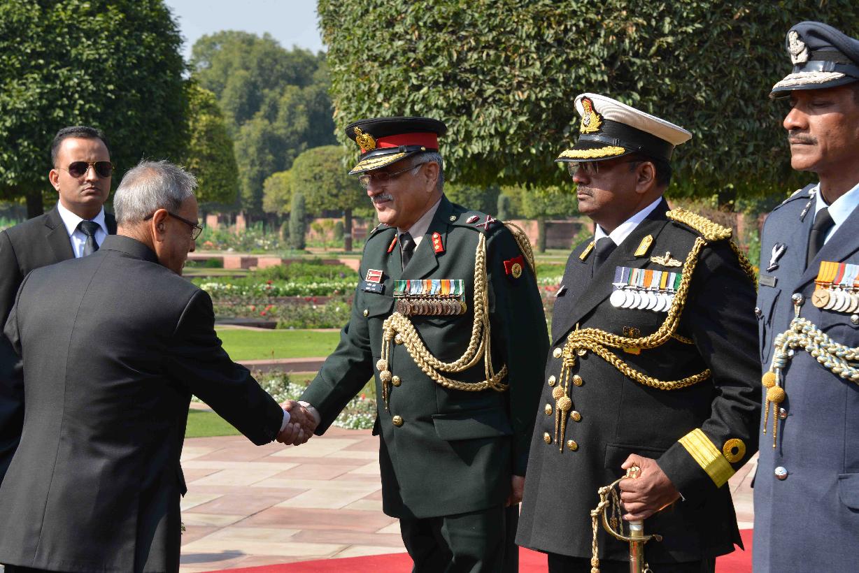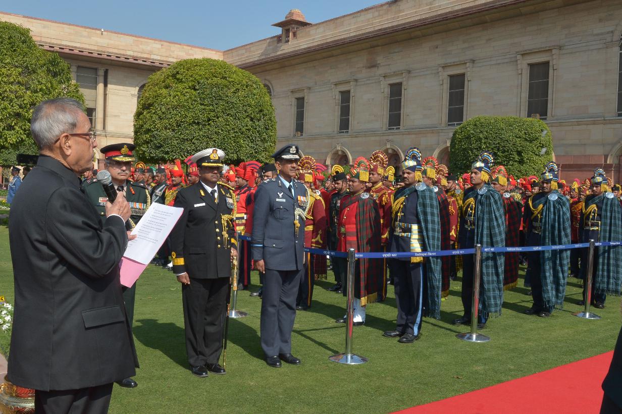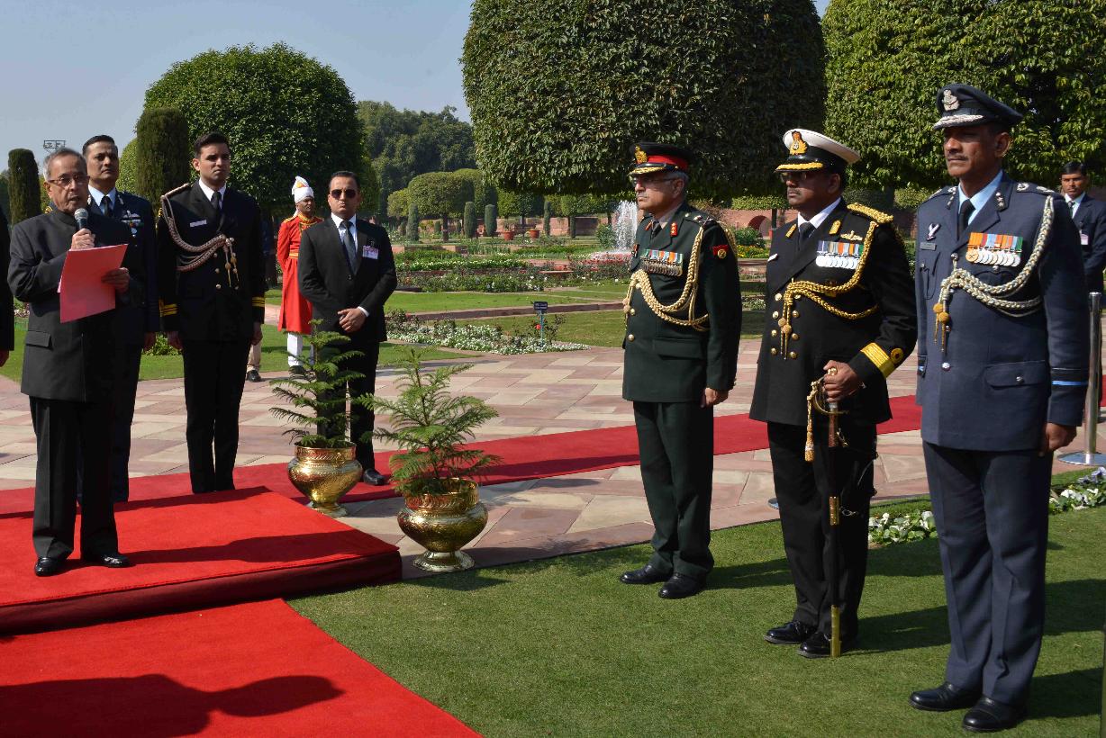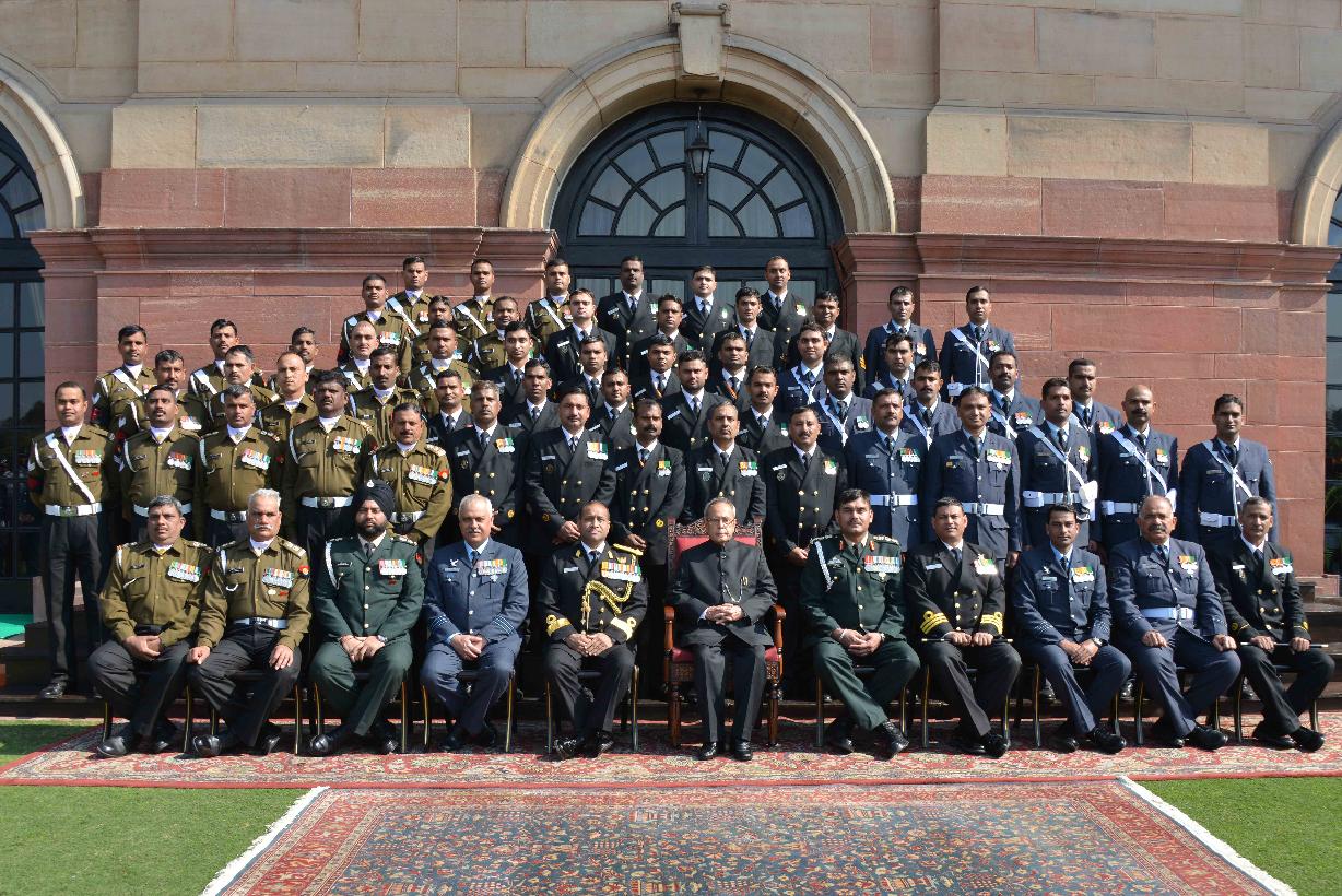 | Caption: | The President of India, Shri Pranab Mukherjee meeting with the personnel Tri Service Band Contingents (participants of the Beating Retreat Ceremony) and Provost Outriders of the Three Services, at Rashtrapati Bhavan, in New Delhi on January 30, 2015. |