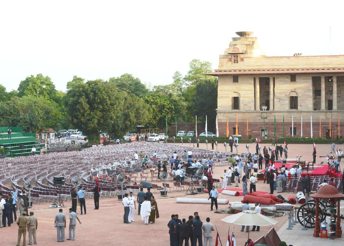 | Caption: | The Preparations are in Full Swing for the Swearing-in-Ceremony on Tomorrow 26-5-2014 at the Forecourt of Rashtrapati Bhavan in New Delhi on May 25, 2014 |