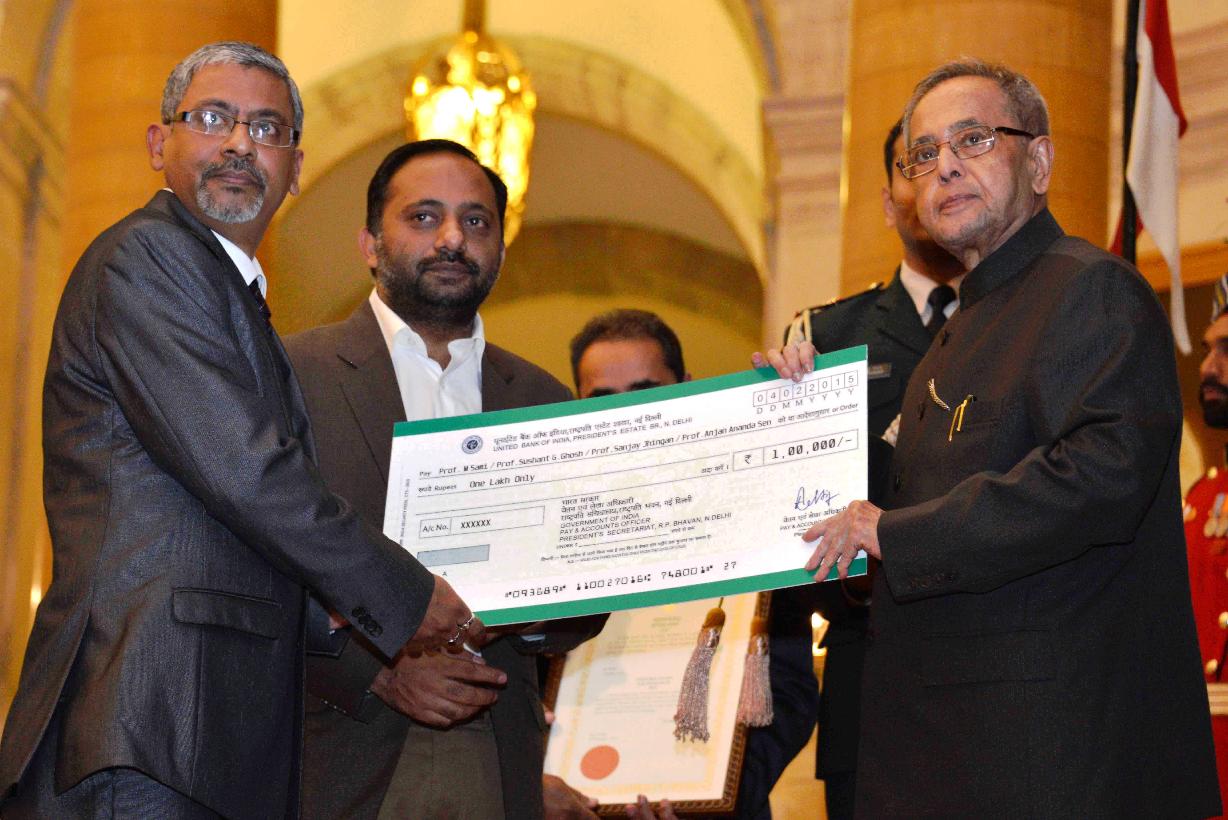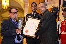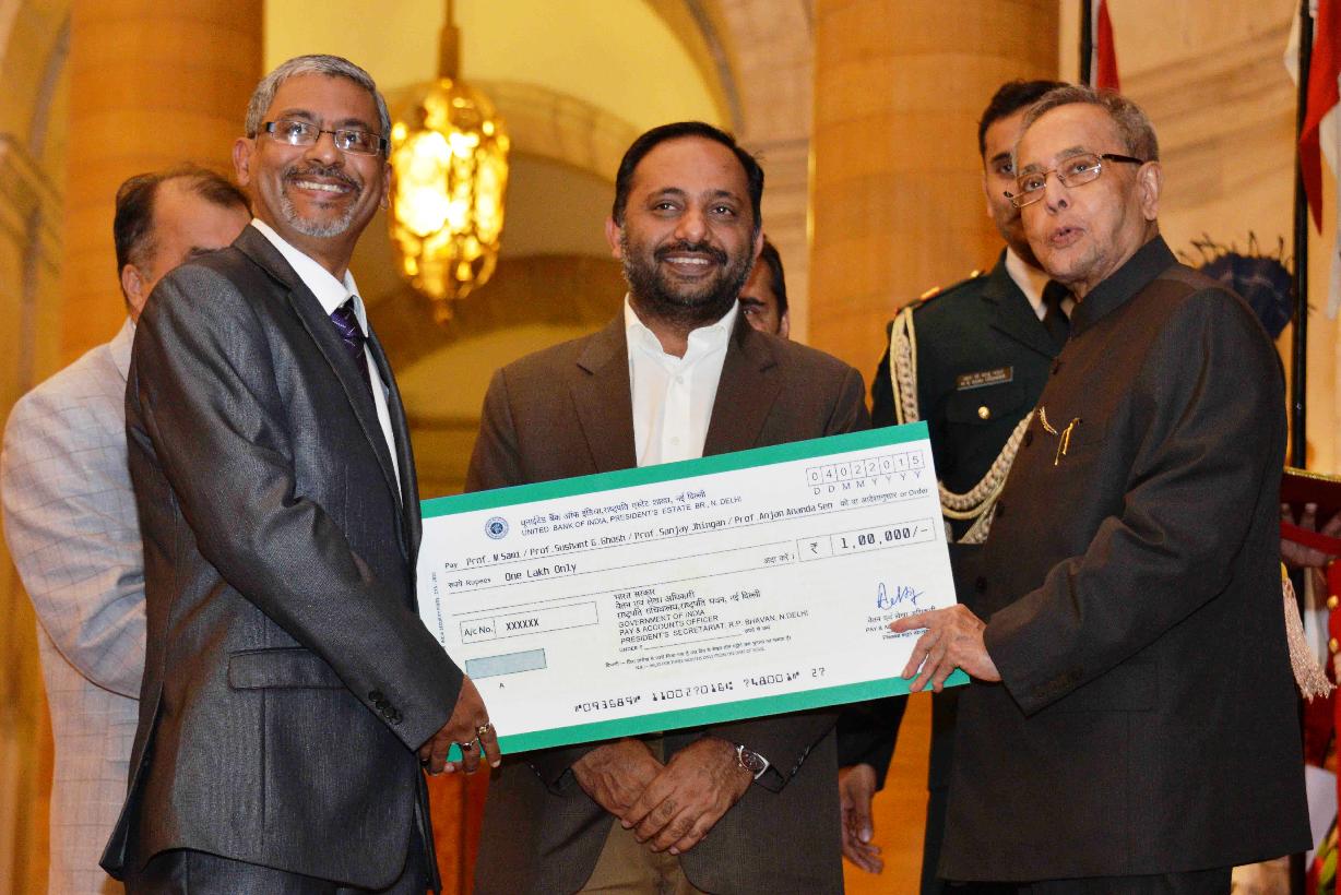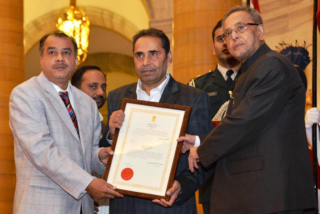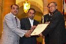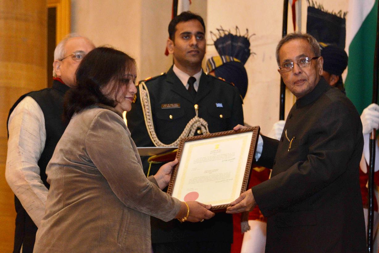 | Caption: | The President of India, Shri Pranab Mukherjee, presenting First Visitor s Award 2015, at Rashtrapati Bhavan, in New Delhi on February 04, 2015. |