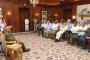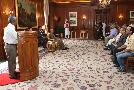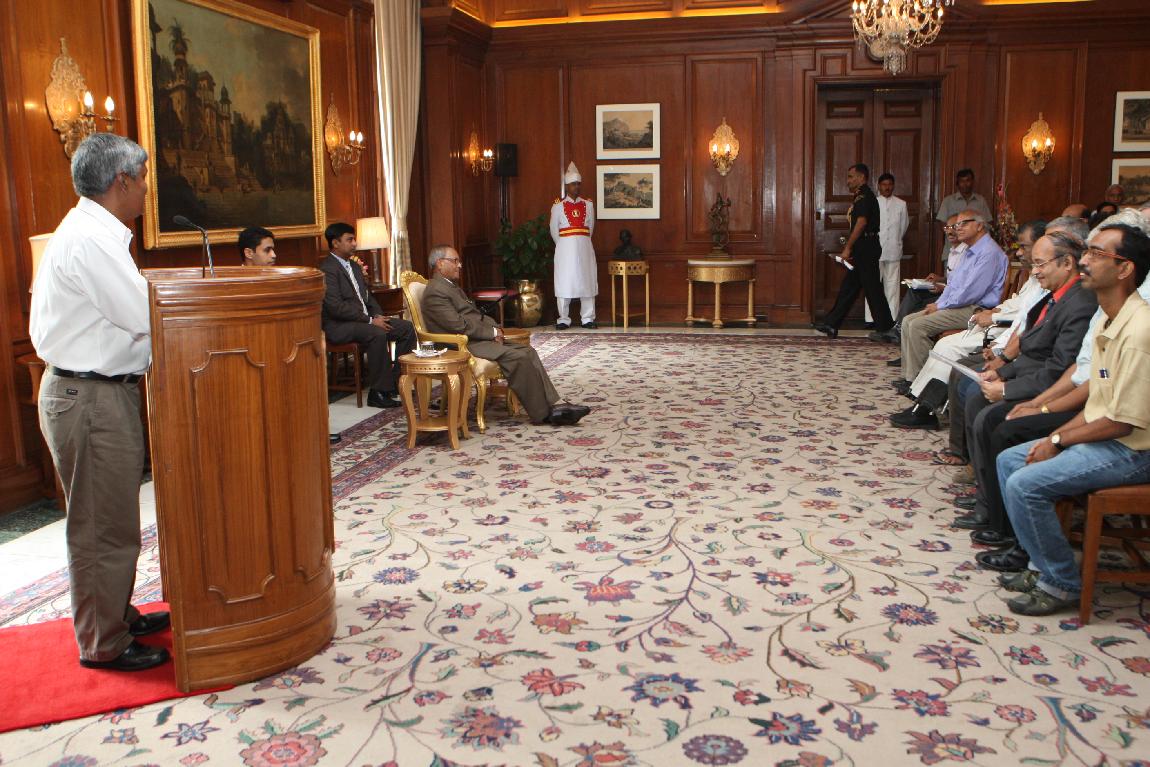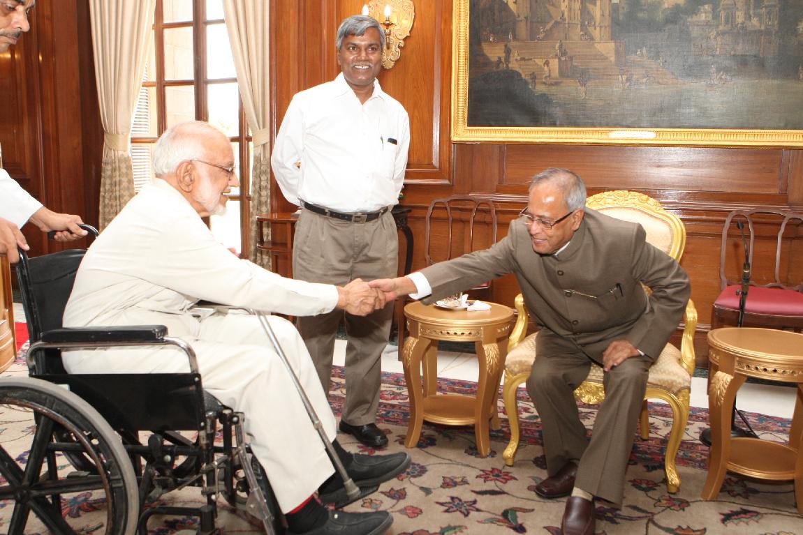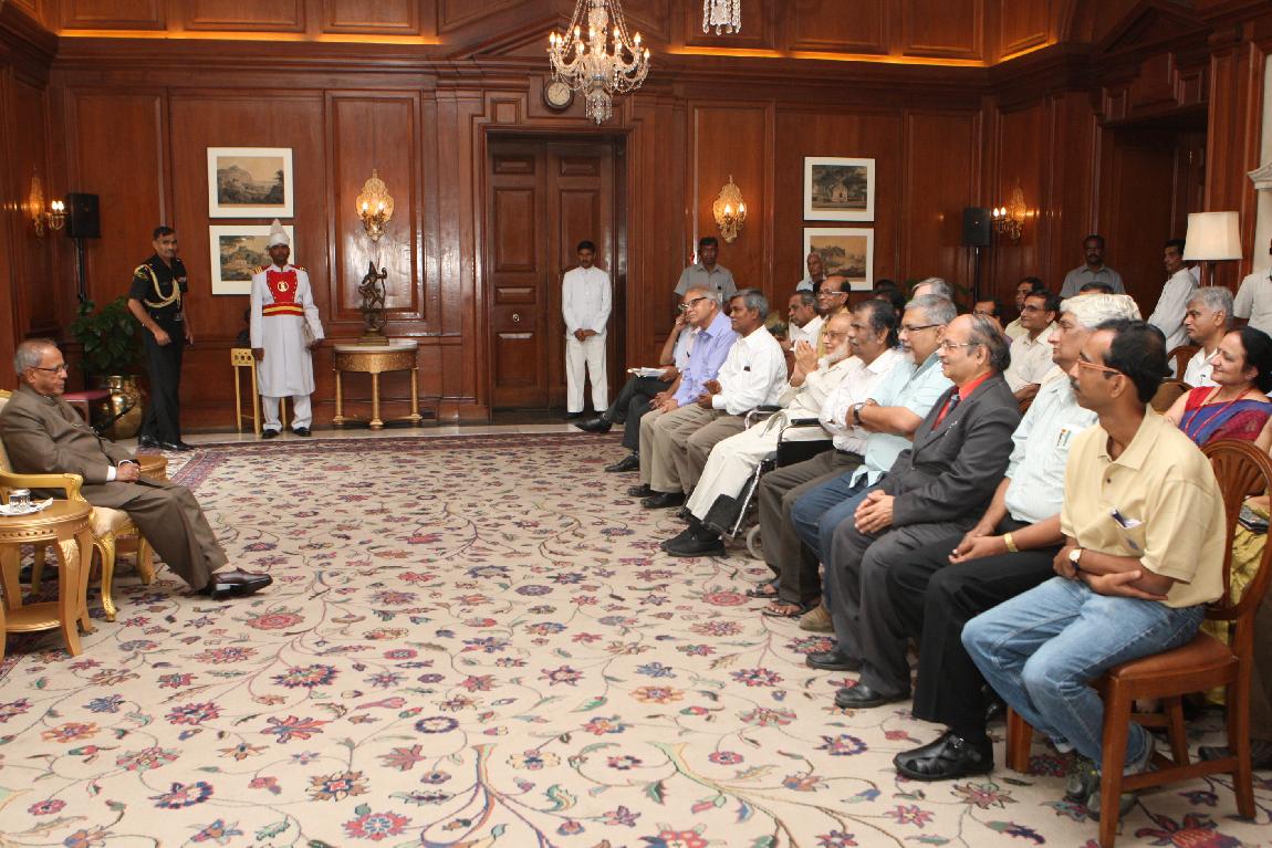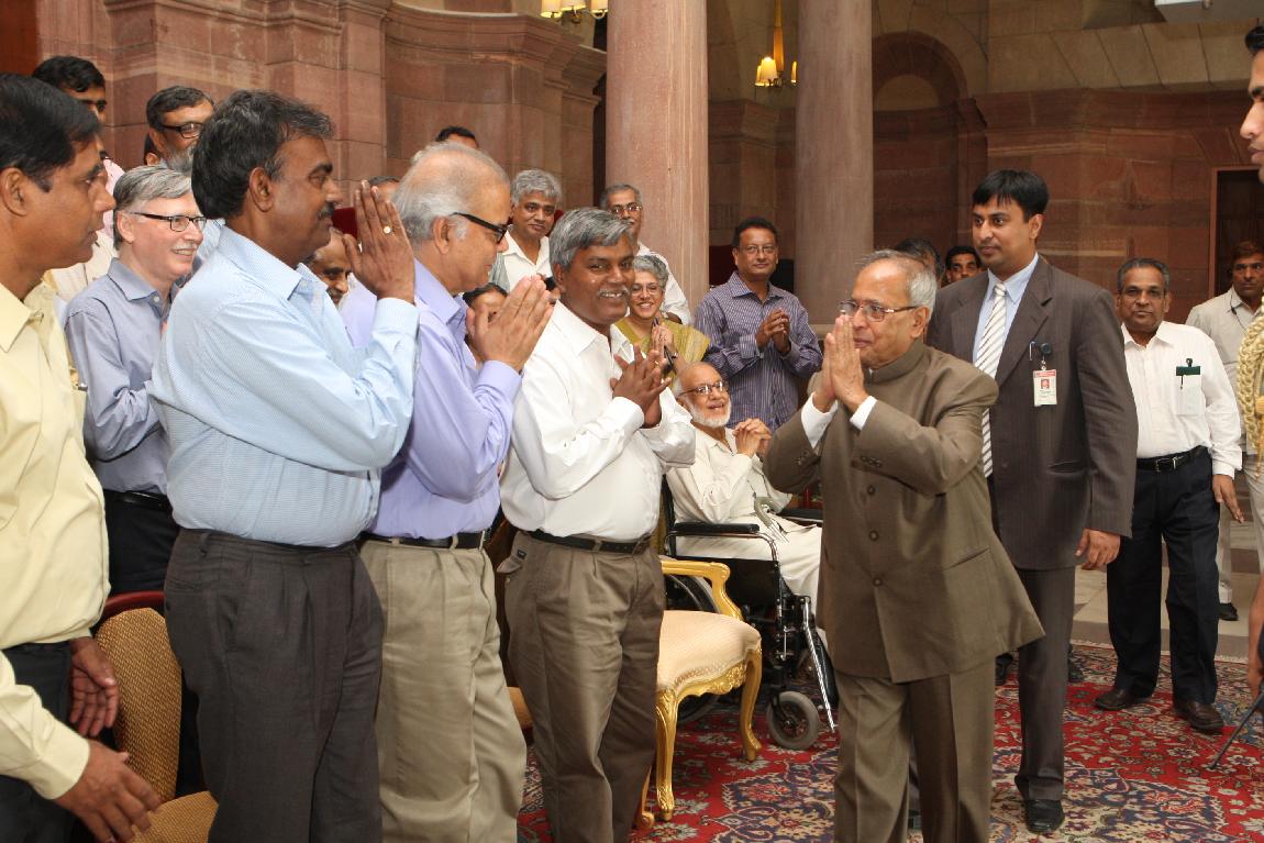| Caption: | The President of India, Shri Pranab Mukherjee meeting with Prof MGK Menon President & Prof Bimal K Roy Director Indian Statistical Institute Kolkata on July 28, 2012 |