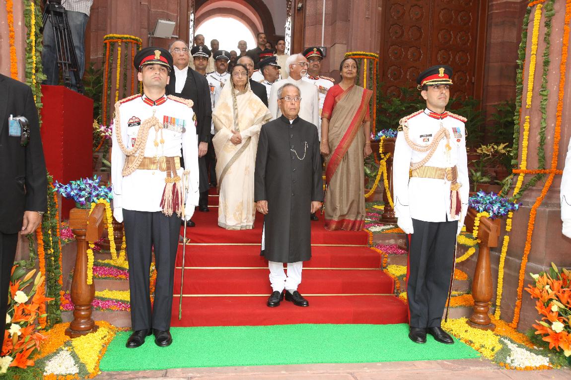 | Caption: | The President of India, Shri Pranab Mukherjee and The Ex-President Smt Pratibha Patil departure from Parliament on July 25, 2012 |