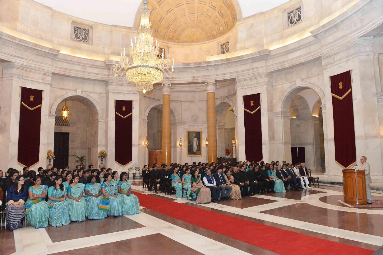 | Caption: | The President of India, Shri Pranab Mukherjee interacting with the Officer Trainees of 68th Batch of Indian Revenue Service from National Academy of Direct Taxes (NADT), Nagpur, at Rashtrapati Bhavan, in New Delhi on March 13, 2015. |