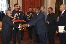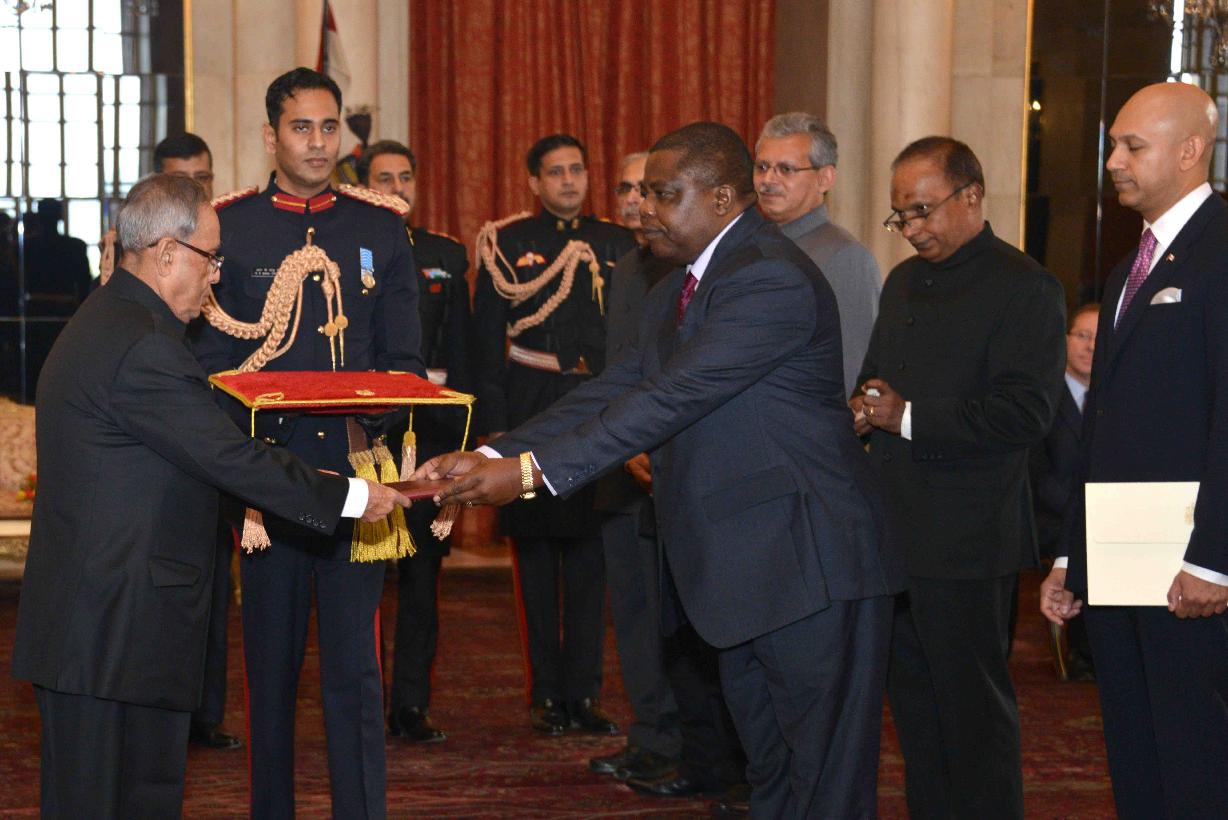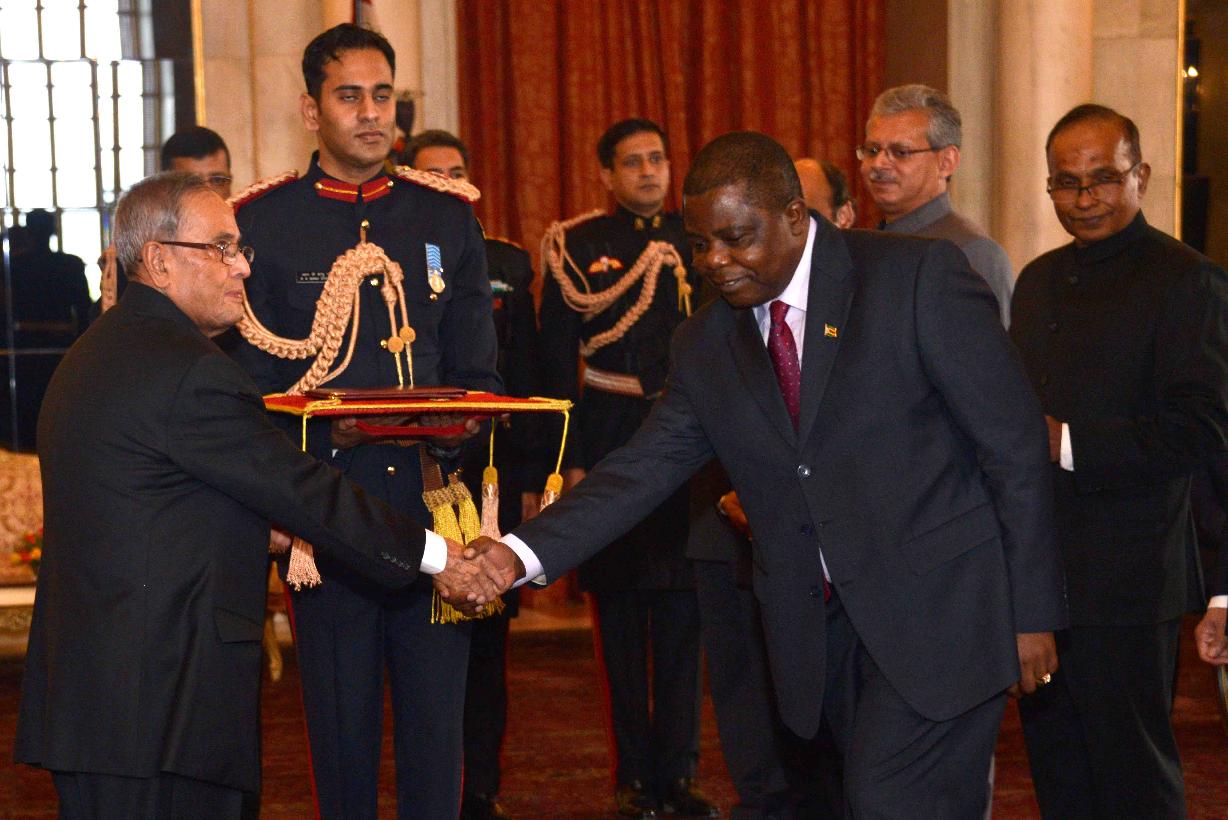 | Caption: | HE Mr Maxwell Ranga, Ambassador-designate of Zimbabwe presenting his Credential to the President of India, Shri Pranab Mukherjee at Rashtrapati Bhavan, in New Delhi on January 16, 2015 |