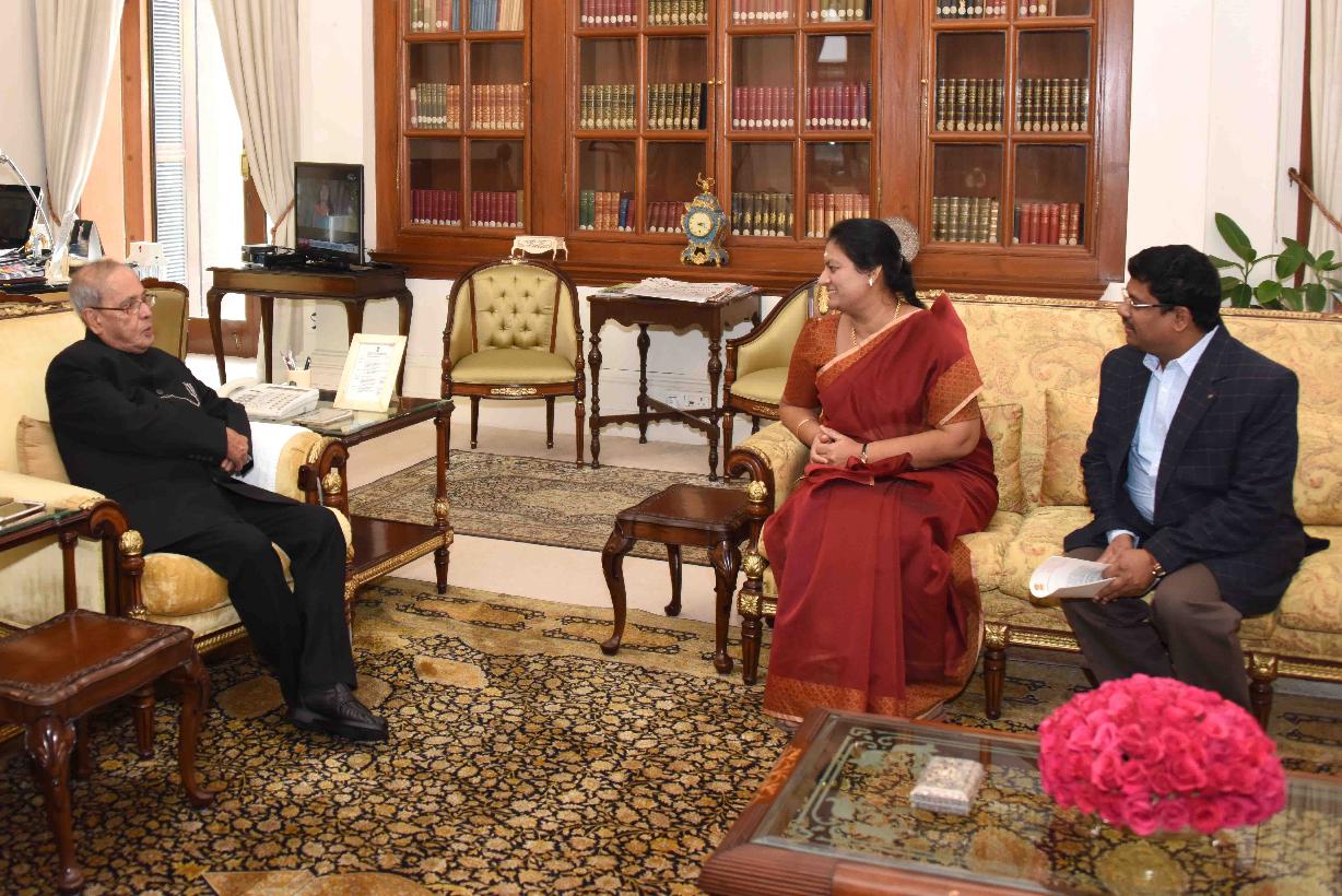 | Caption: | The President of India, Shri Pranab Mukherjee meeting with Smt. Sasikala Pushpa, MP (RS) alongwith her husband Shri Lingesvara Thilagan, at Rashtrapati Bhavan on December 20, 2016. |