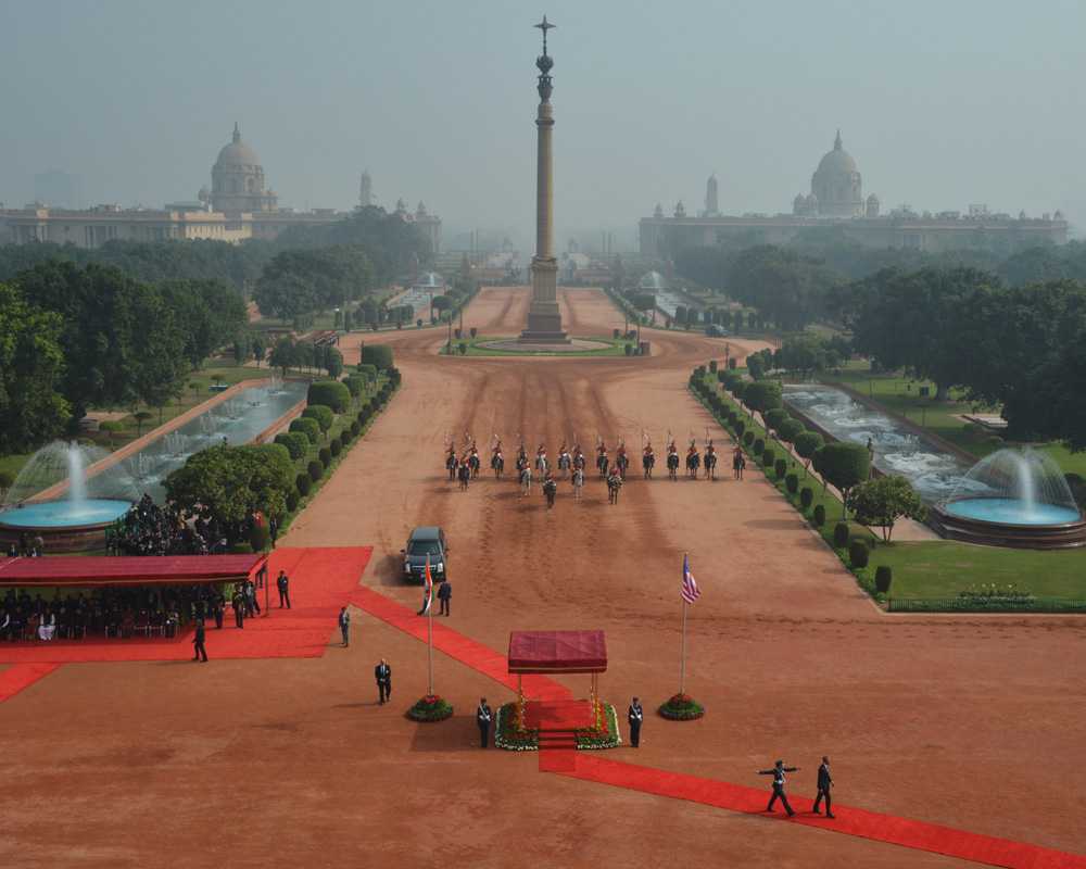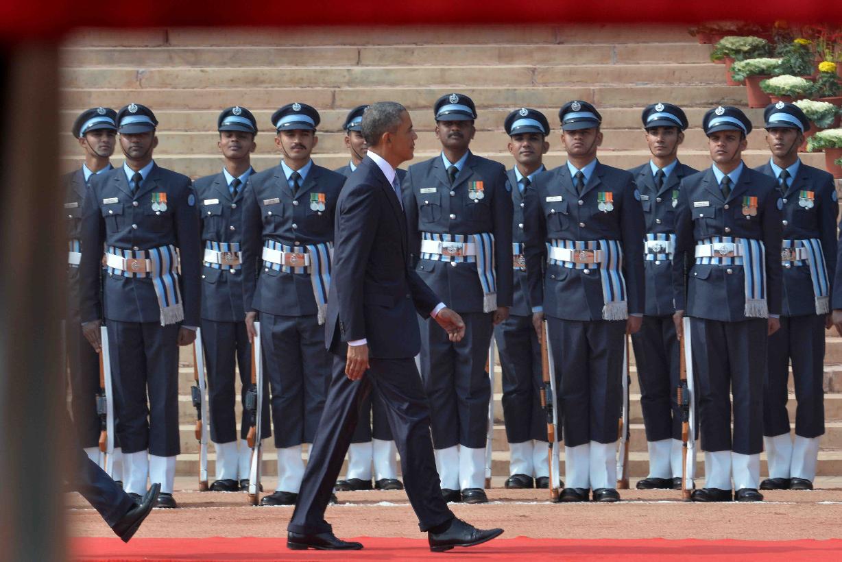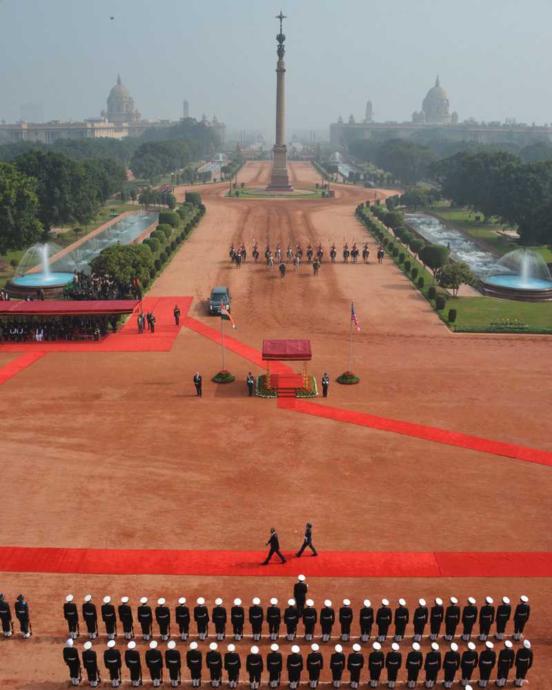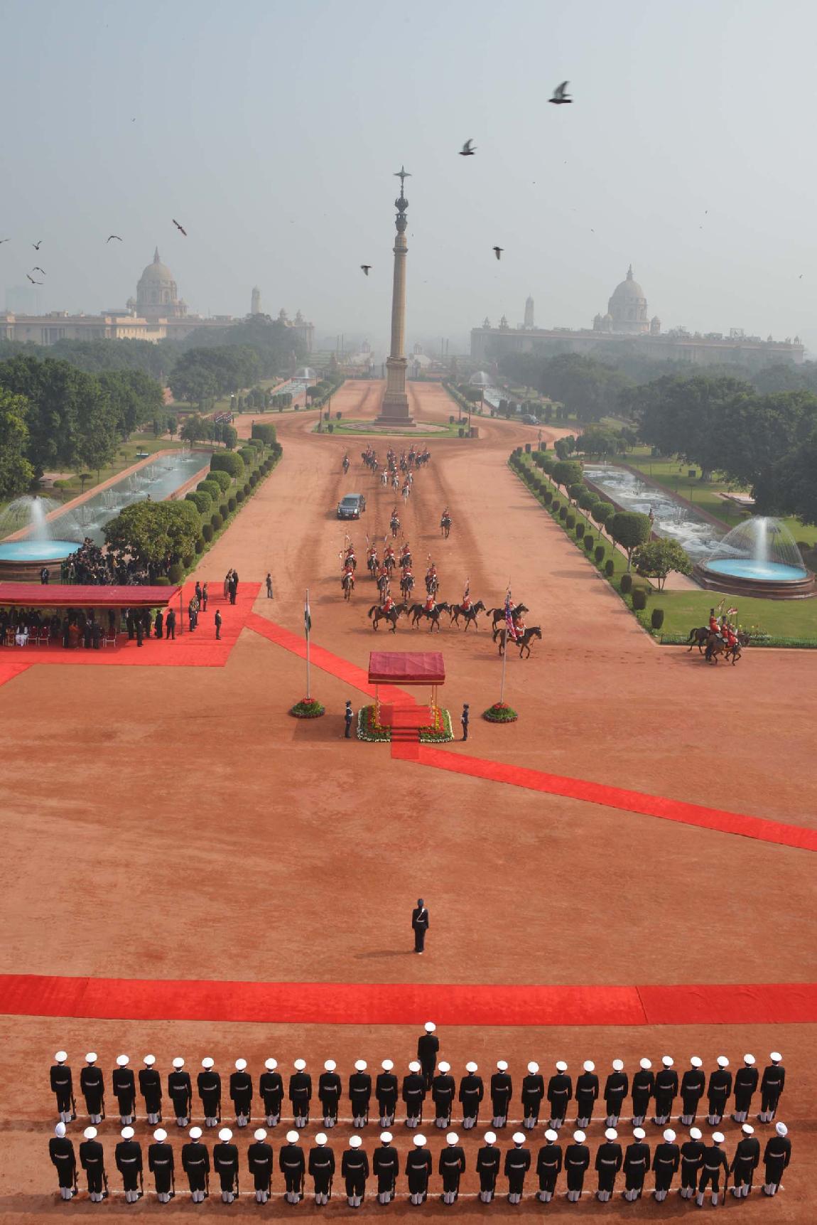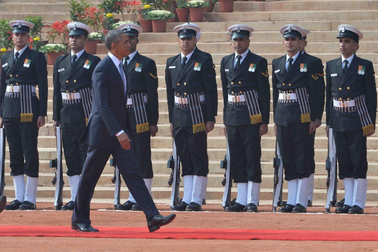 | Caption: | The President of India, Shri Pranab Mukherjee receiving the President of the United States of America, HE Mr Barack Obama during his Ceremonial Reception at the forecourt of Rashtrapati Bhavan, in New Delhi on January 25, 2015. |