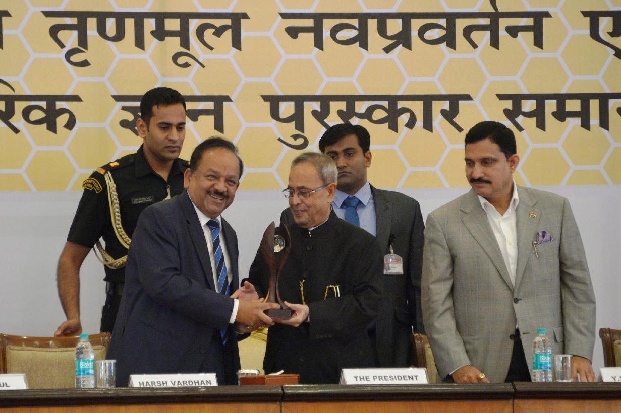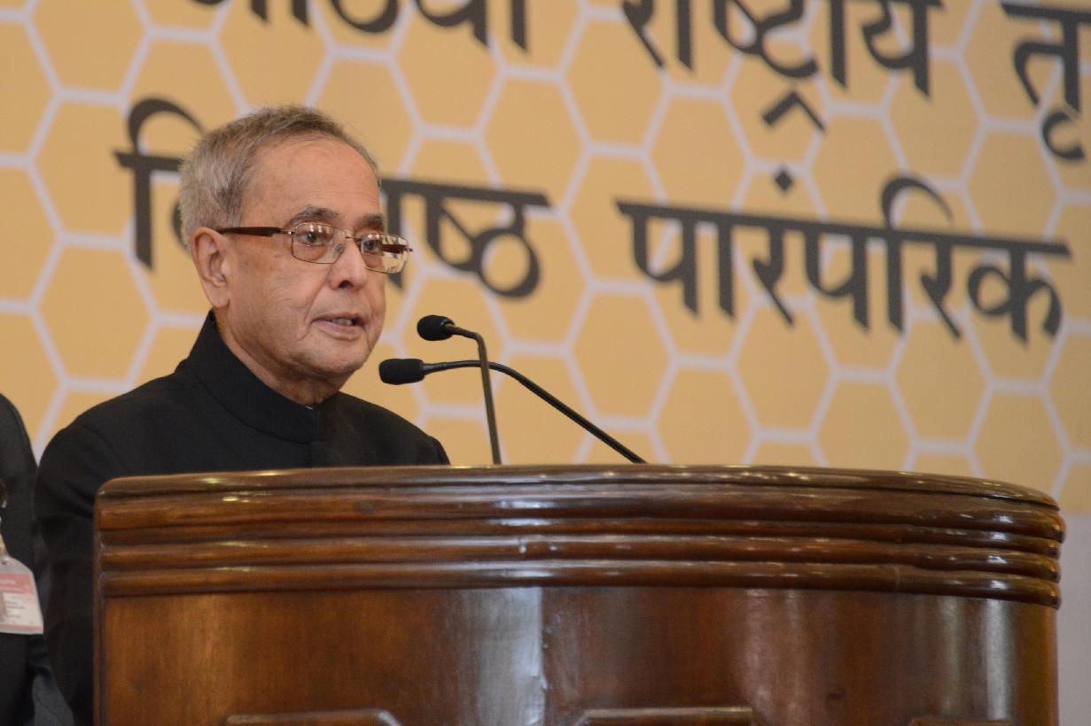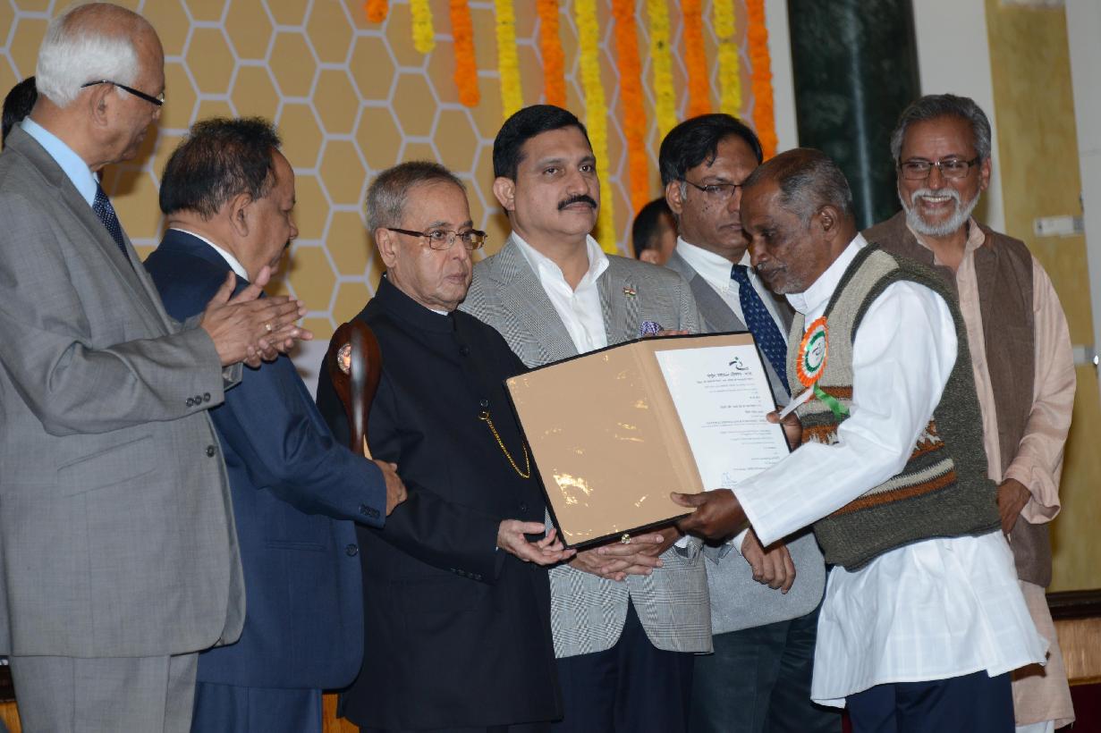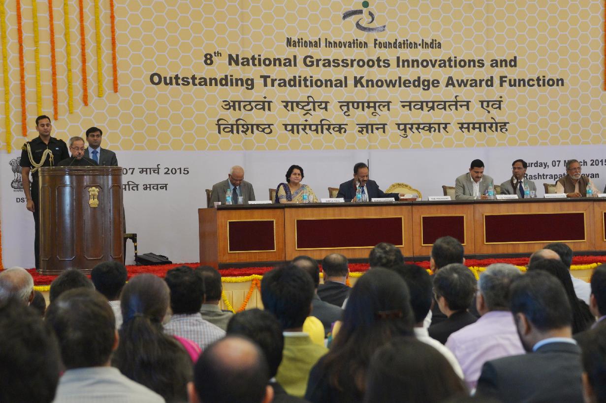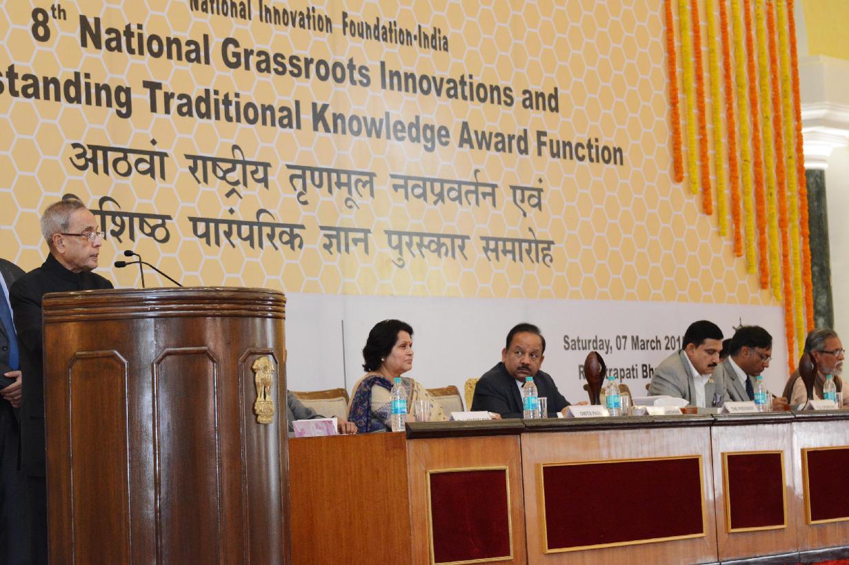 | Caption: | The President of India, Shri Pranab Mukherjee during the presentation of the 8th National Biennial Award for Grassroots Innovations and Outstanding Traditional Knowledge, at Ceremonial Hall, RB Cultural Centre, in New Delhi on March 07, 2015. |