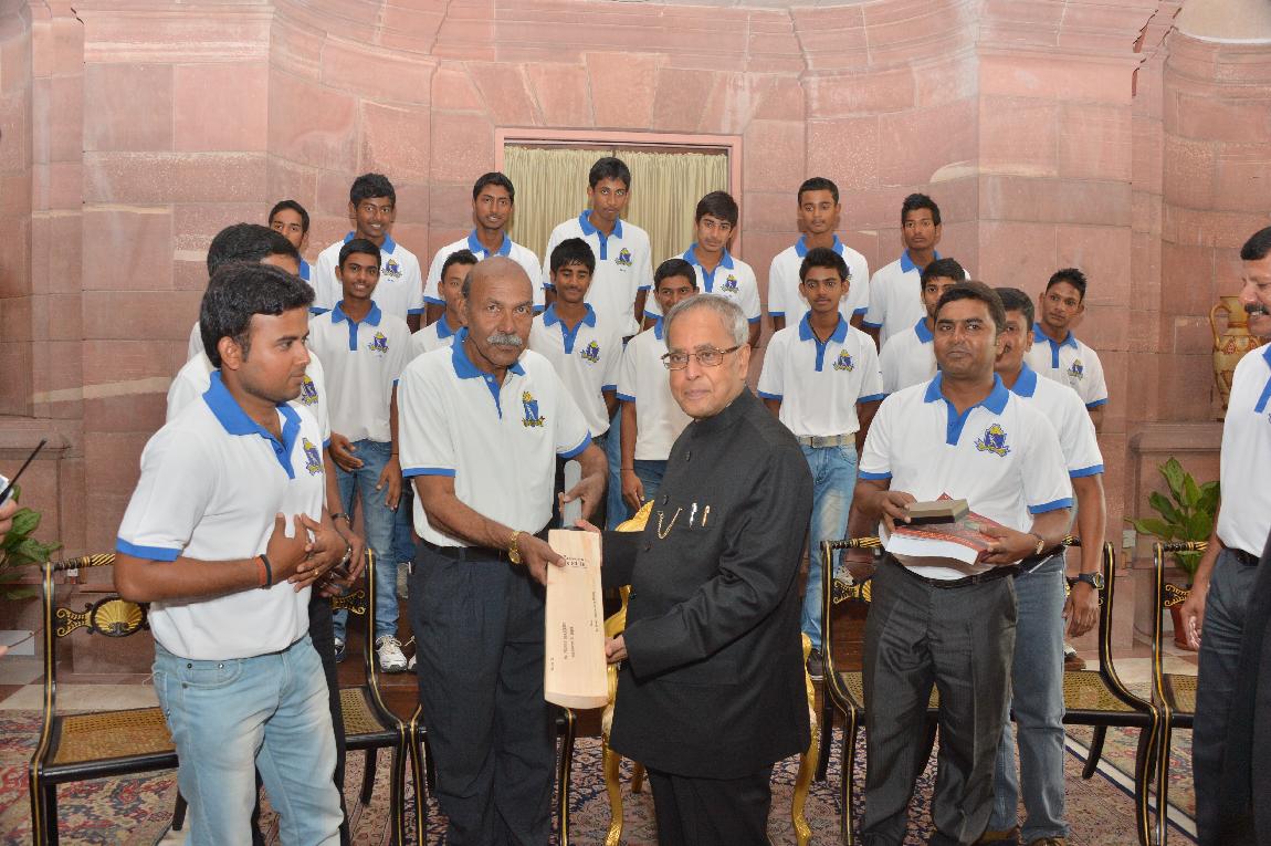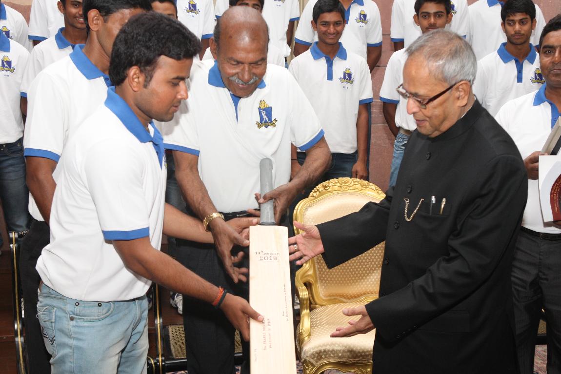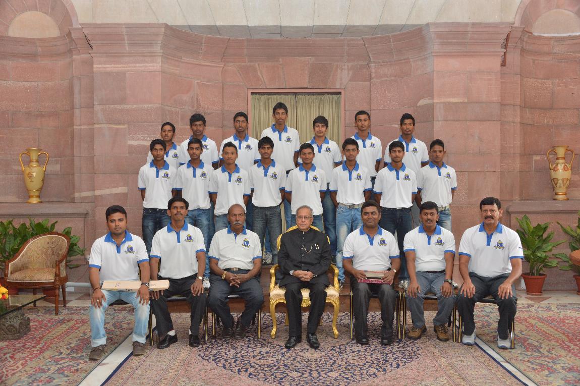 | Caption: | The President of India, Shri Pranab Mukherjee Meeting with Members of Under 16 Bengal Cricket Team on 17 Jan 2013 |