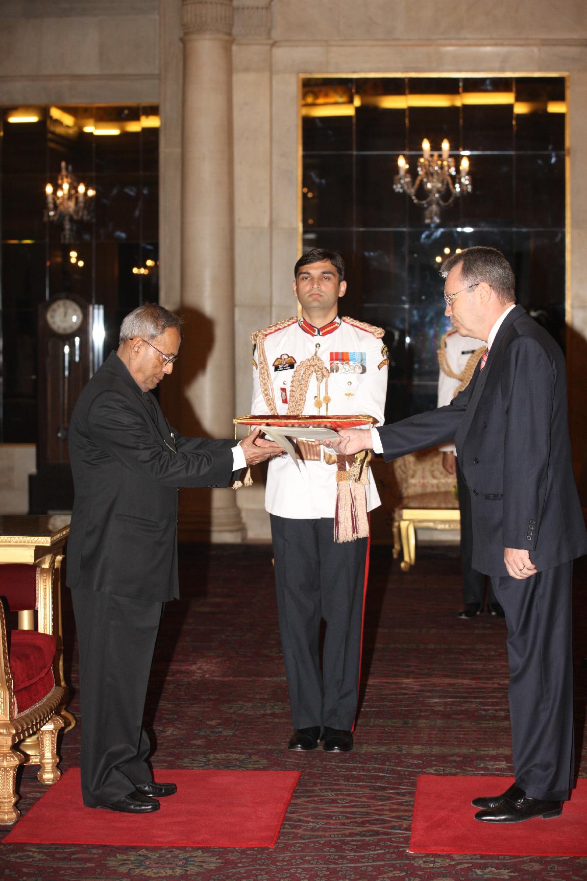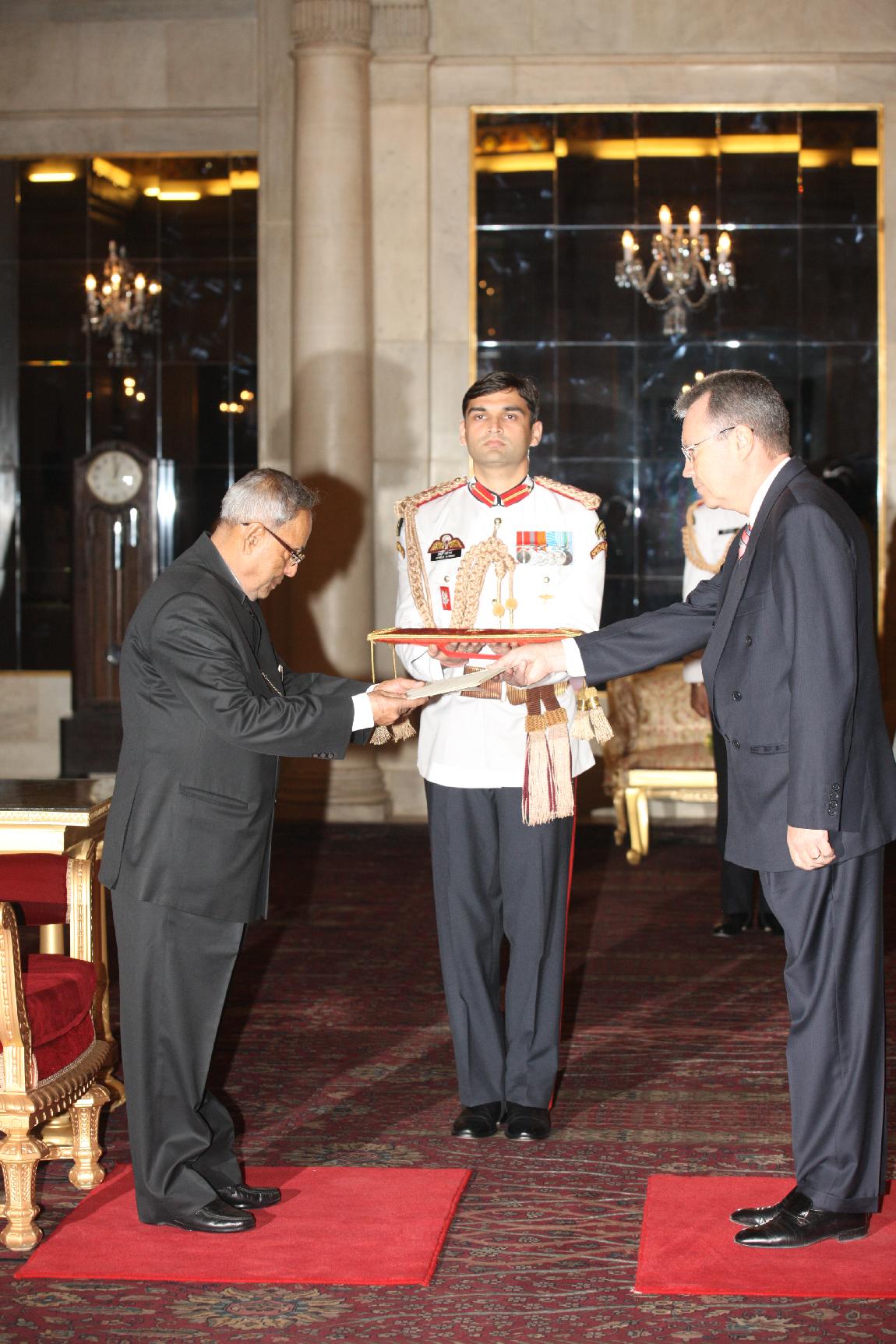 | Caption: | HE Mr Mentor Patricio Villagomez Merino, from Ambassador-designate of The Republic of Ecuador presenting his credentials to The President of India, Shri Pranab Mukherjee at Rashtrapati Bhavan on May 09,2013 |