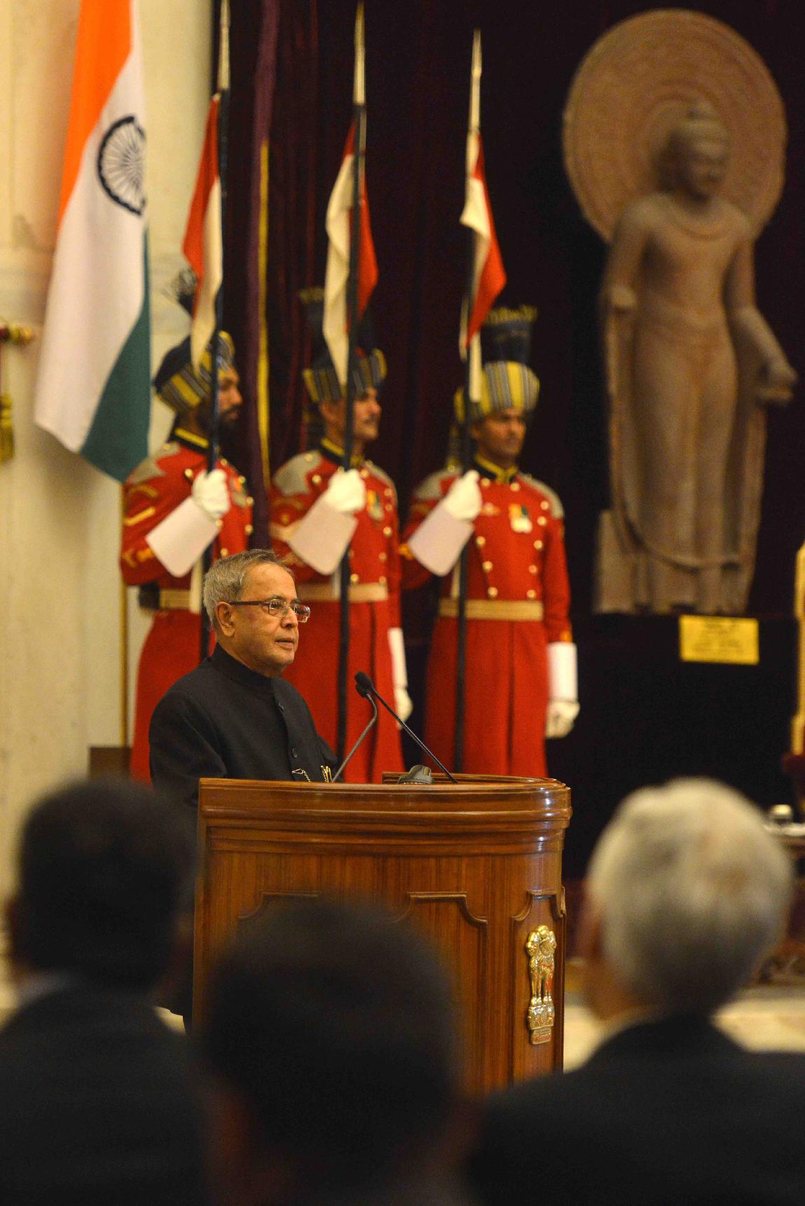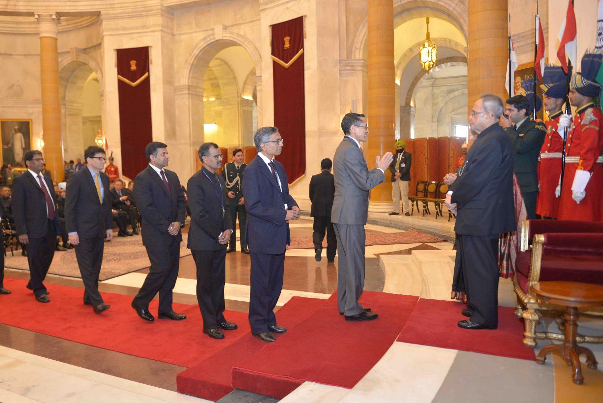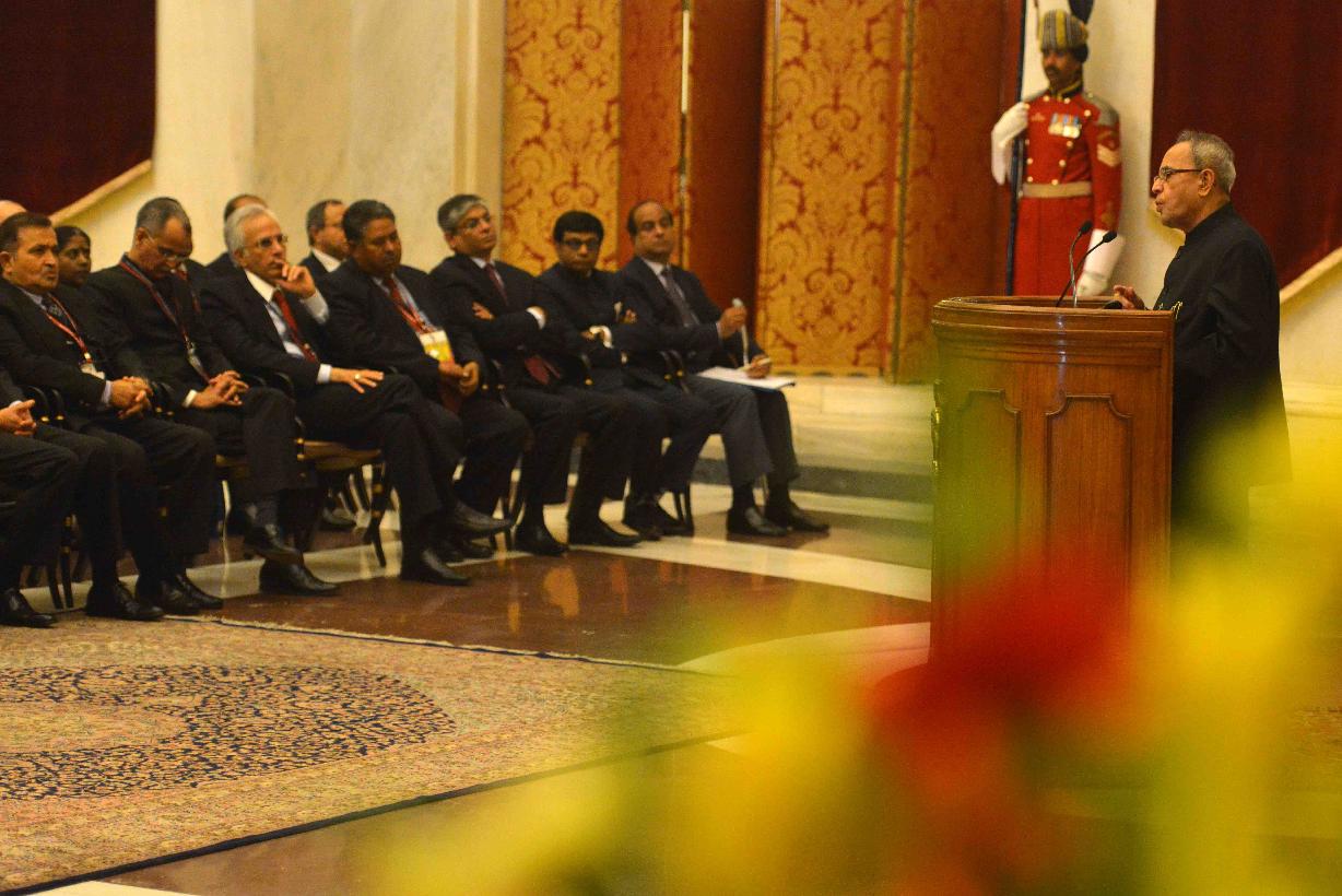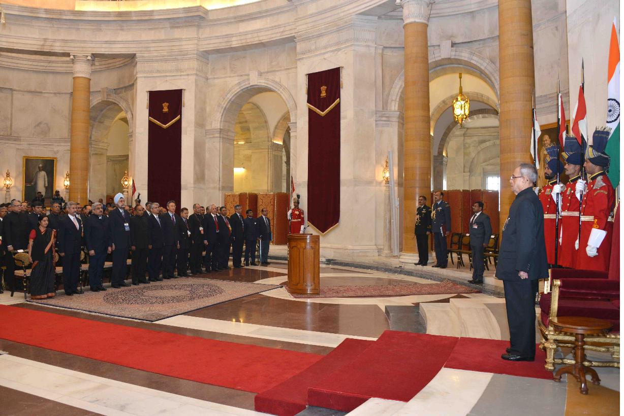 | Caption: | The President of India, Shri Pranab Mukherjee, meeting the delegates of Sixth Annual Heads of Mission Conference, at Rashtrapati Bhavan, in New Delhi on February 08, 2015. |