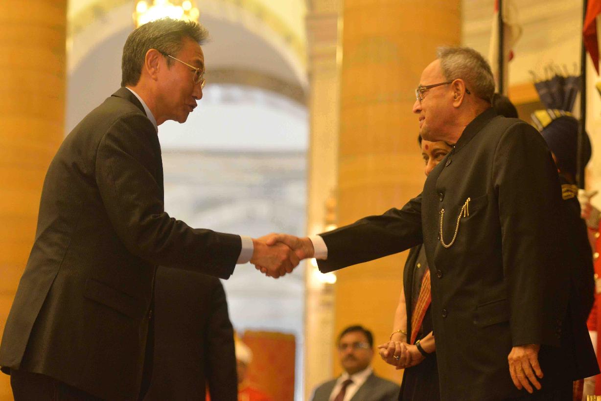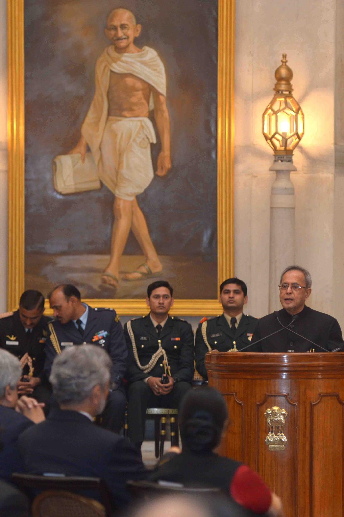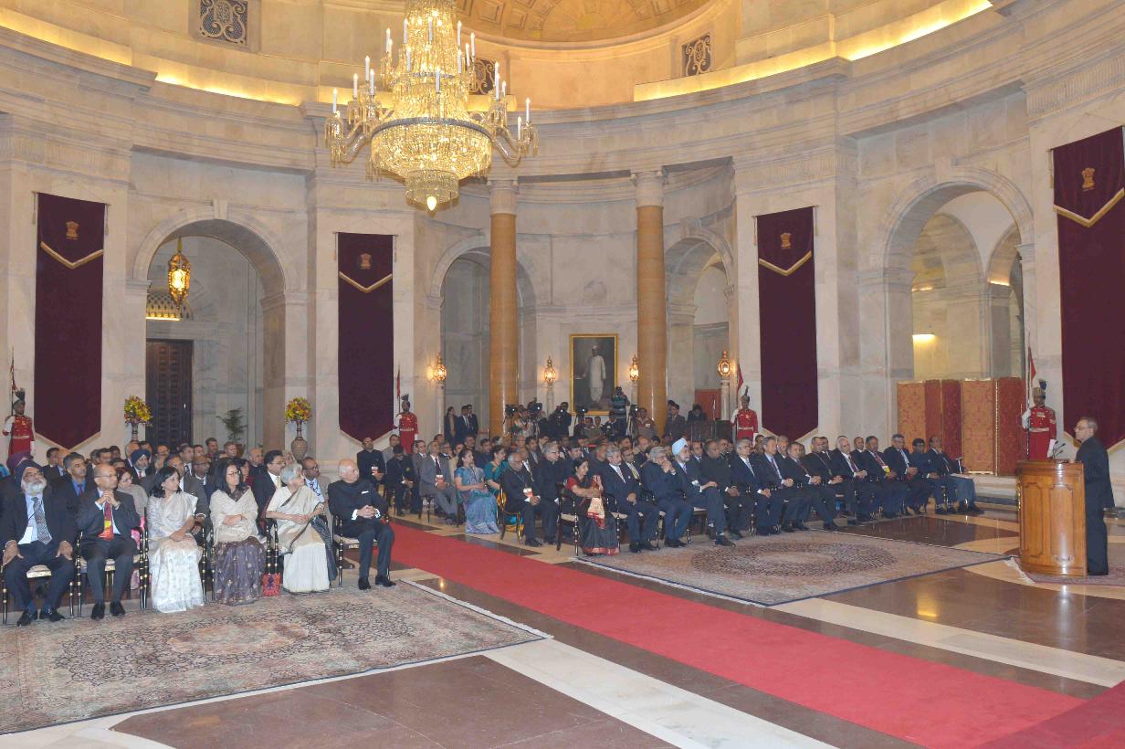 | Caption: | The President of India, Shri Pranab Mukherjee, meeting the delegates of Sixth Annual Heads of Mission Conference, at Rashtrapati Bhavan, in New Delhi on February 08, 2015. |
