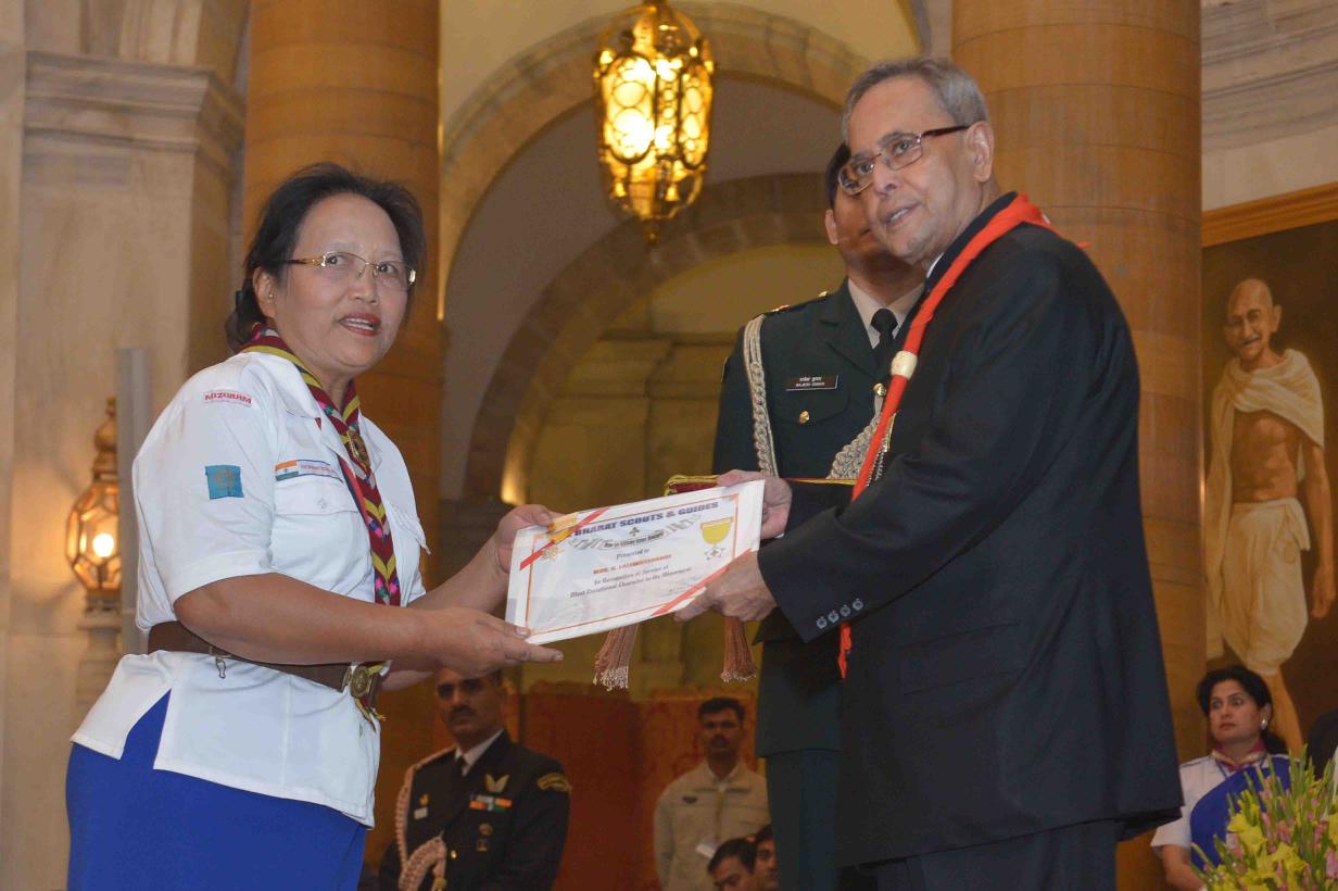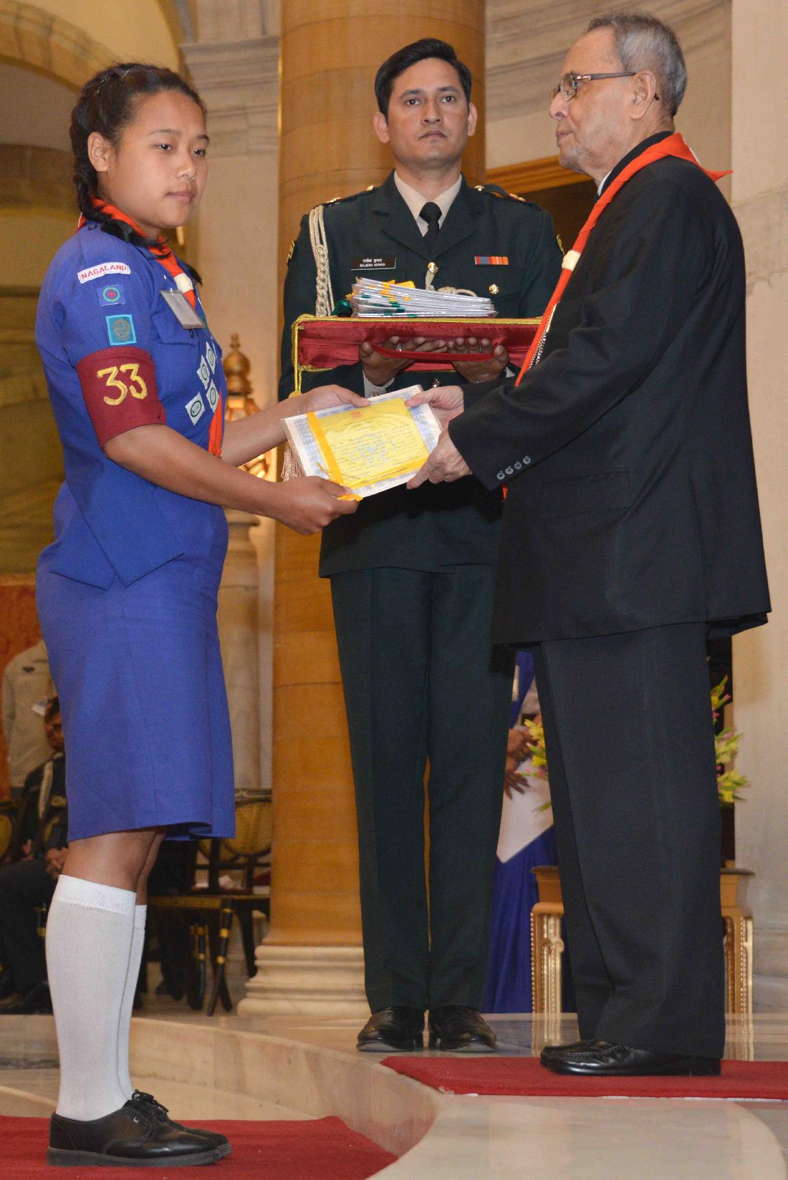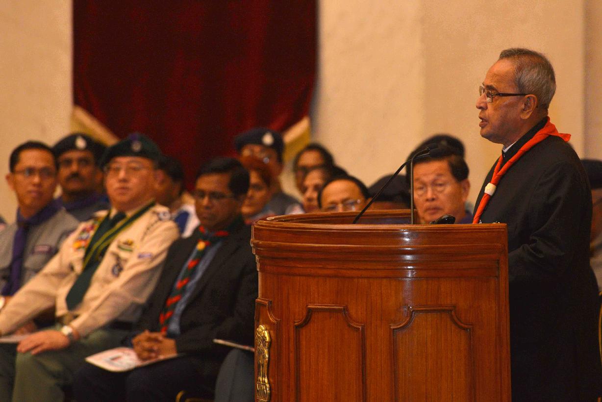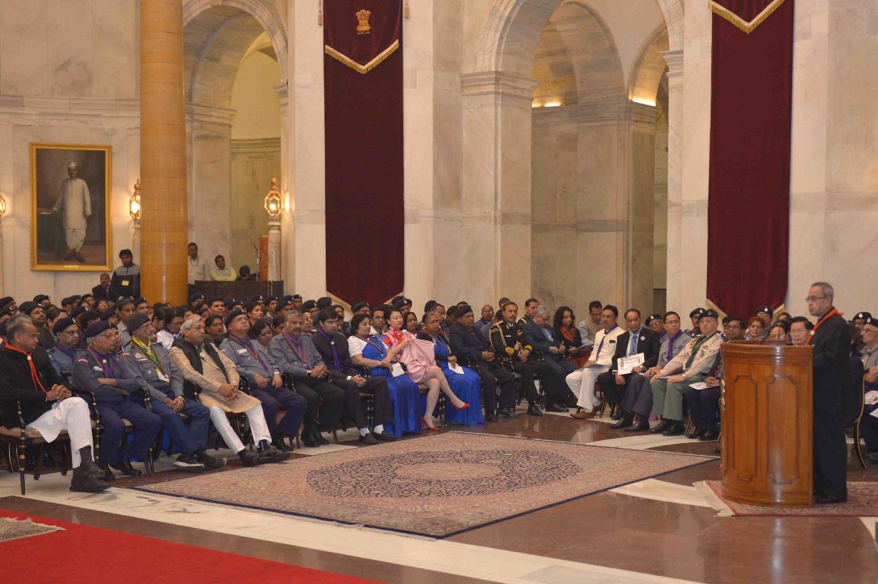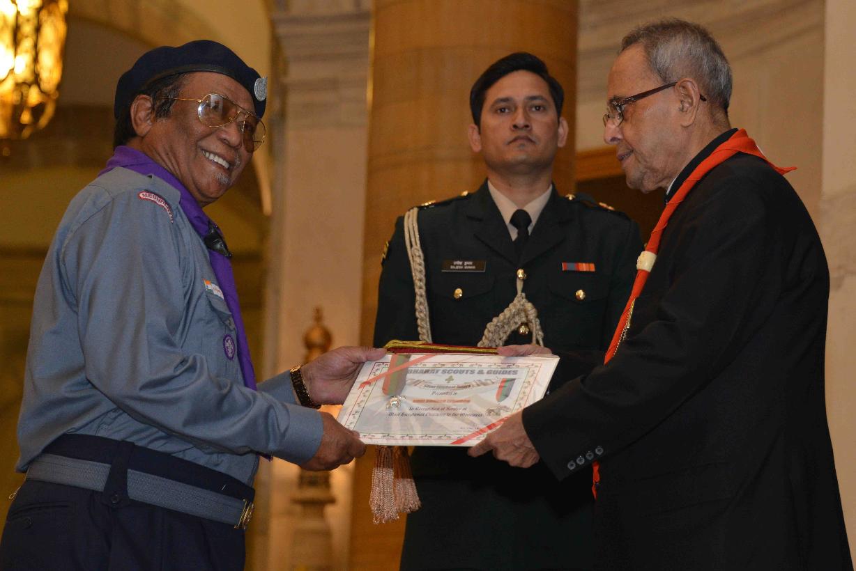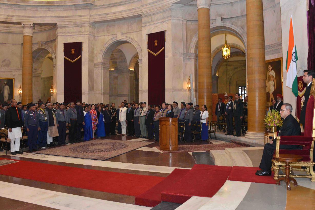 | Caption: | The President of India, Shri Pranab Mukherjee, presenting the Rashtrapati Scouts and Guides Awards Certificates for the year 2013, at Rashtrapati Bhavan, in New Delhi on Feb 16, 2015. |