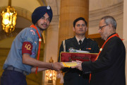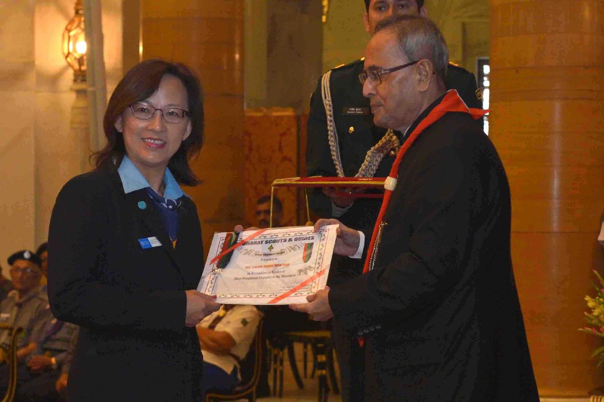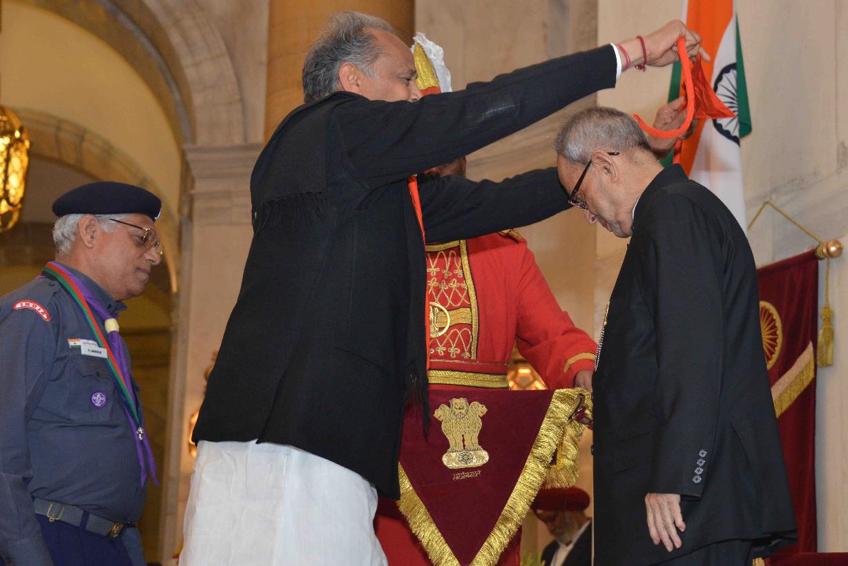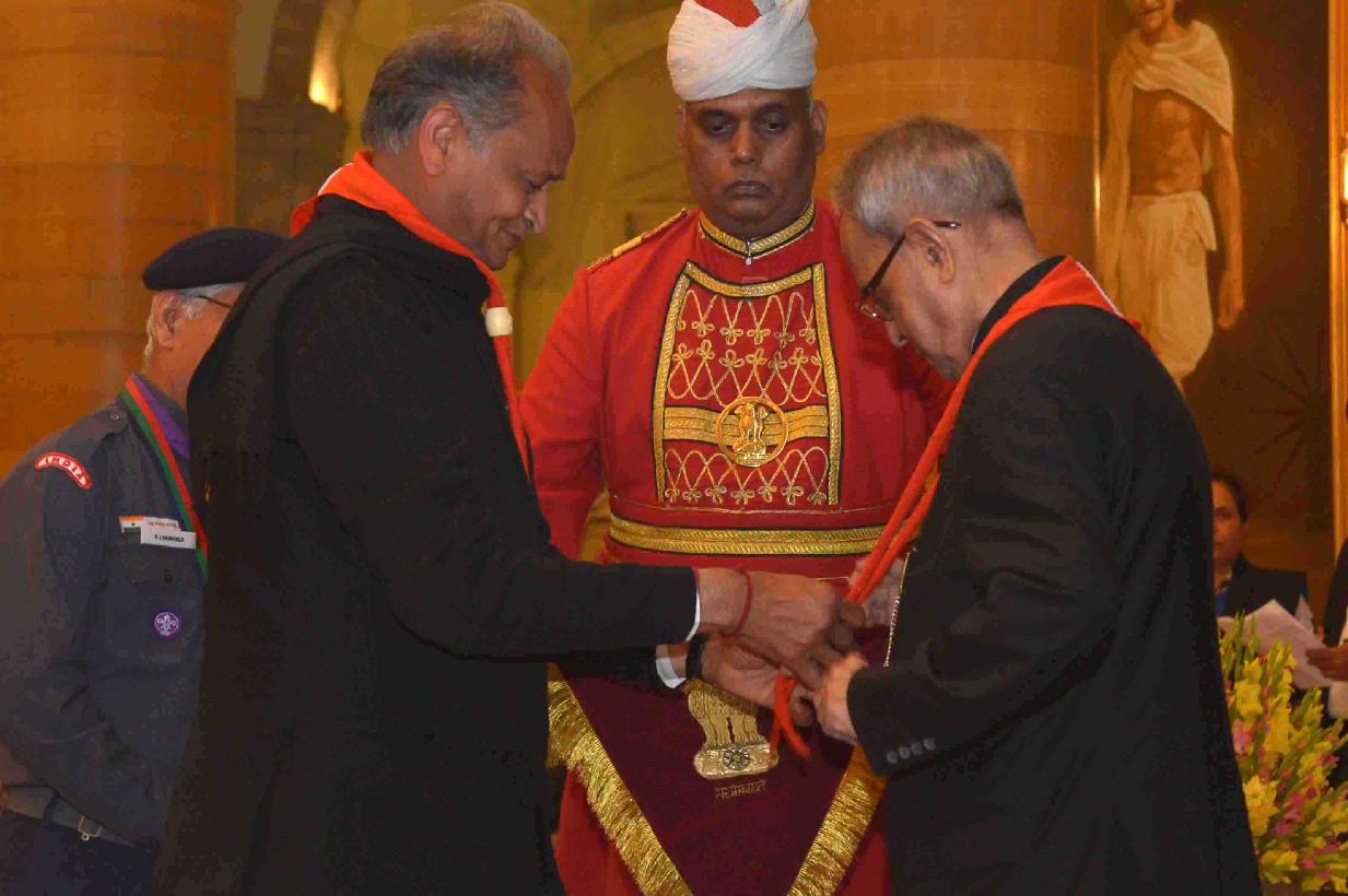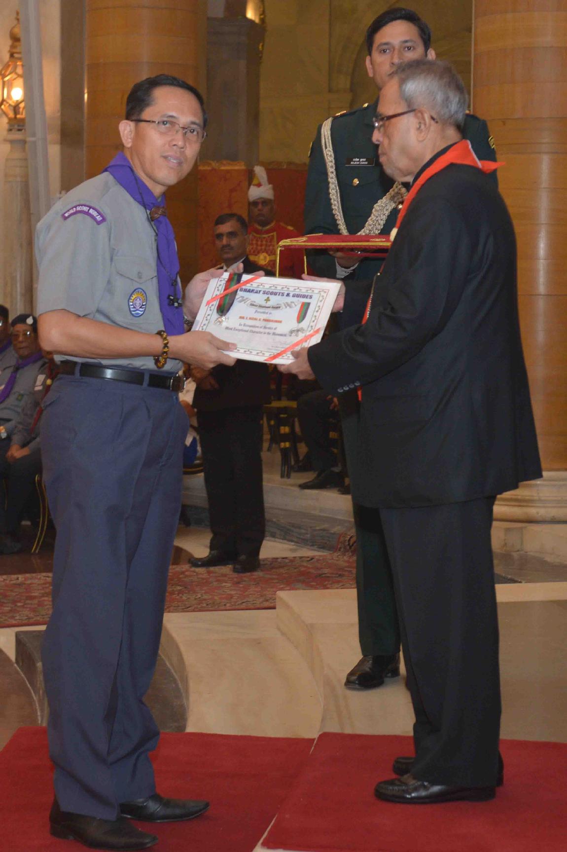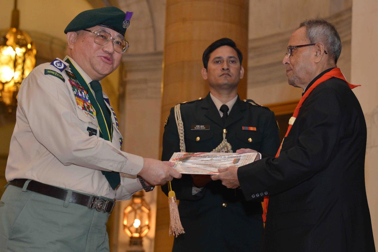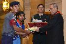 | Caption: | The President of India, Shri Pranab Mukherjee, presenting the Rashtrapati Scouts and Guides Awards Certificates for the year 2013, at Rashtrapati Bhavan, in New Delhi on Feb 16, 2015. |