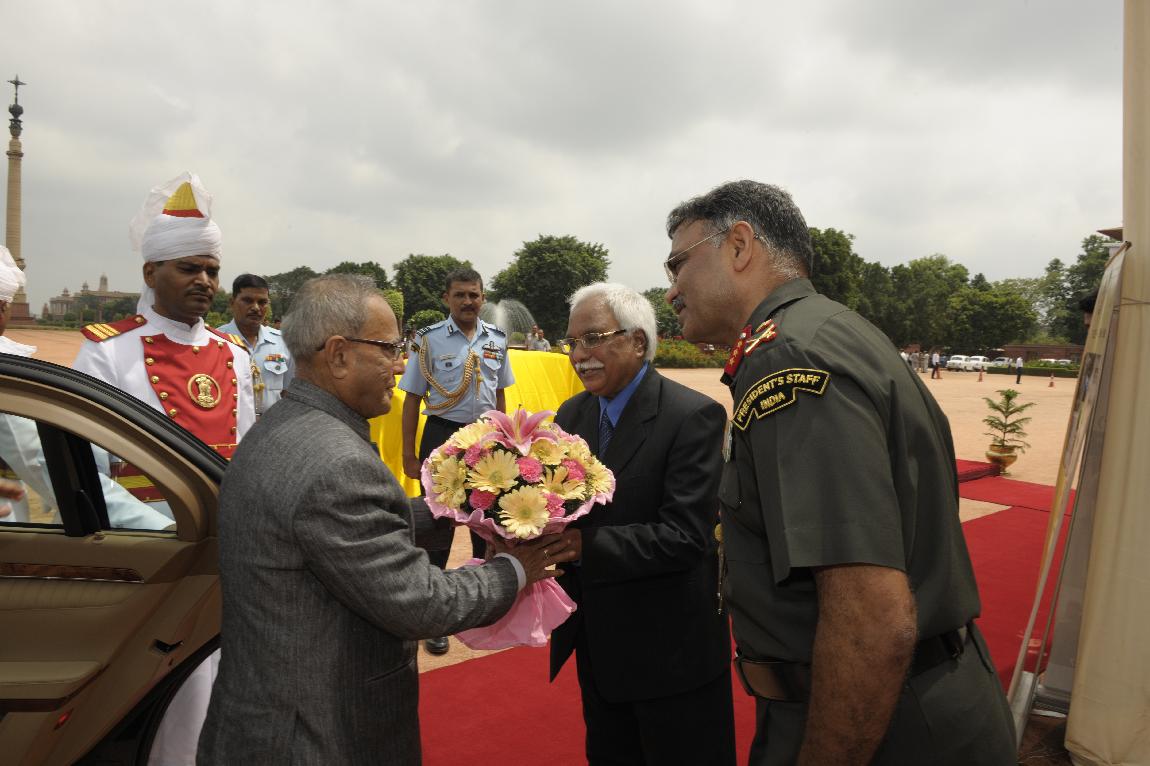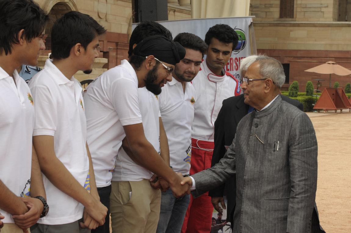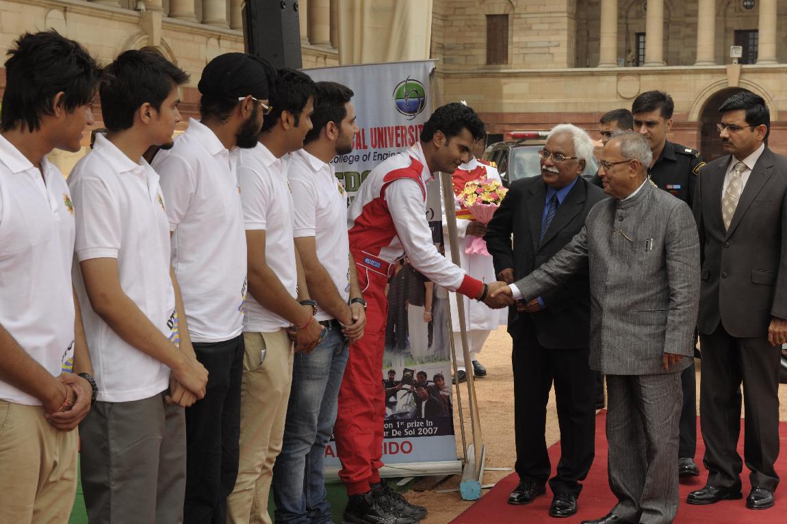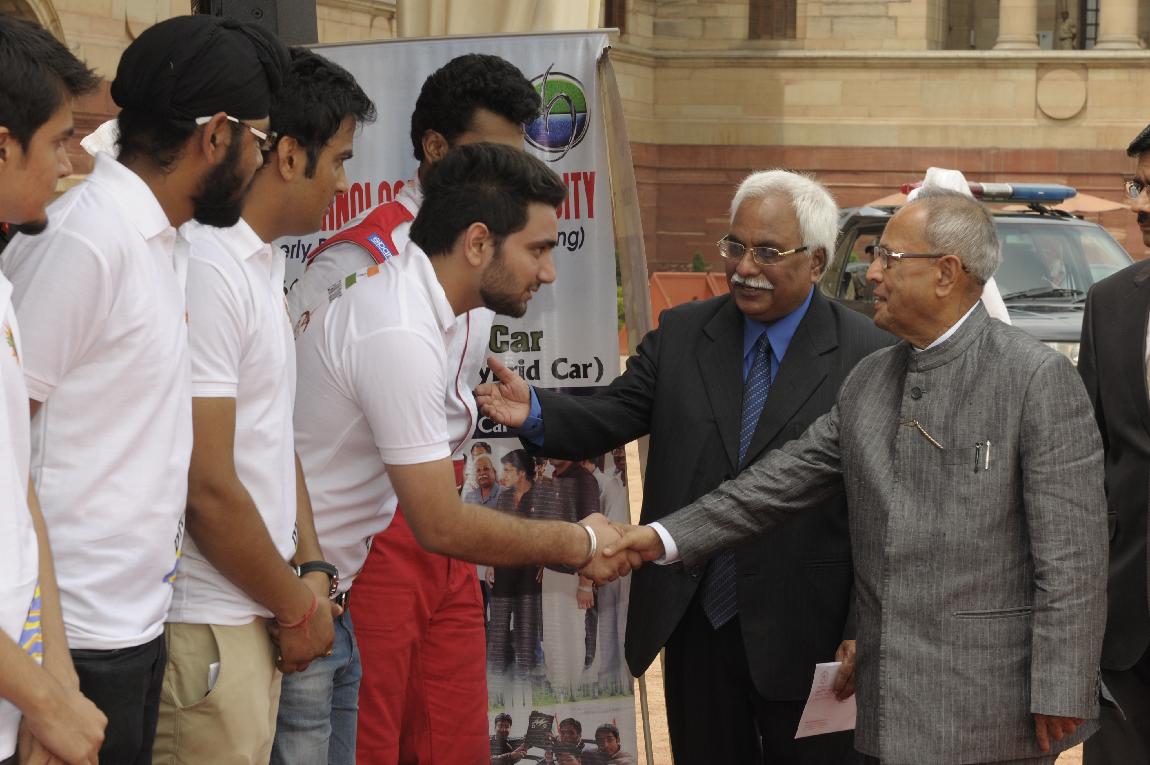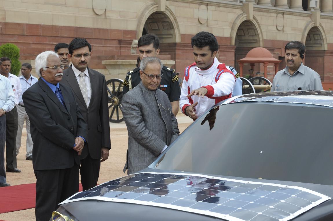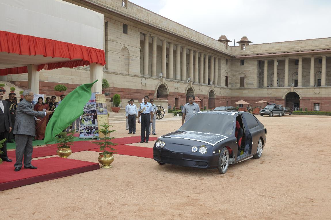 | Caption: | The President of India, Shri Pranab Mukherjee Flagging off the Delhi Technological University Solar Passenger on Sep 4, 2012 |