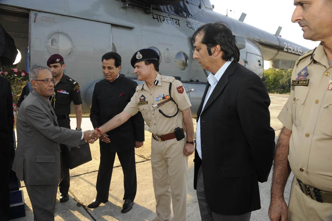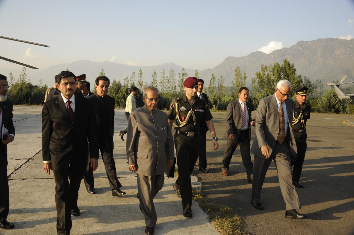 | Caption: | The President of India, Shri Pranab Mukherjee Arriving at Nehru Helipad and Visit at Jammu & Kashmir (Srinagar) on Sep 26, 2012 |